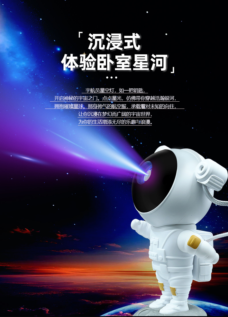 Astronauta transfronterizo luz de proyección de cielo estrellado luz de proyección de astronauta nebulosa gypsophila multifunción atmósfera LED luz nocturna