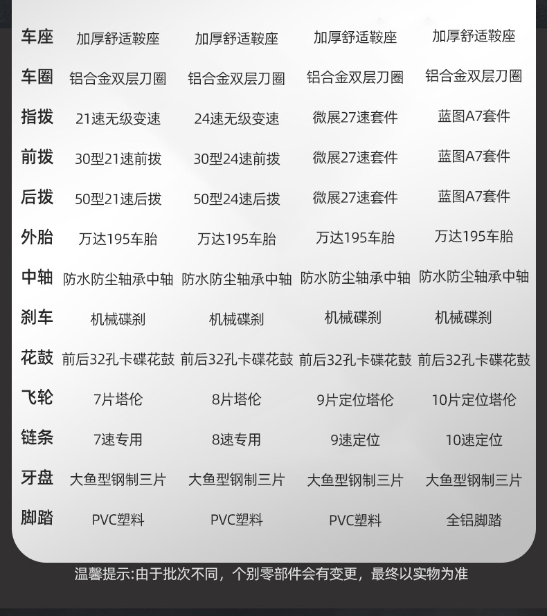 | Colores | Rueda de rayas de color permanente-negro-rosa,Rueda de radios color permanente-negro-rojo,Rueda de rayas de color permanente-negro-azul,Rueda de rayas de color permanente gris plateado,Rueda de rayas de color permanente-gris-verde,Rueda de cuchillo de color permanente-negro rosa-3,Rueda de cuchillo de color permanente-negro-rojo-3,Rueda de cuchillo de color permanente-negro azul-3,Rueda de cuchillo de color permanente-gris plateado-3,Rueda de cuchillo de color permanente-gris verde-3,Rueda de cuchillo de color permanente-rosa negro-10,Rueda de cuchillo de color permanente-negro-rojo-10,Rueda de cuchillo de color permanente-negro azul-10,Rueda de cuchillo de color permanente-gris plateado-10,Rueda de cuchillo de color permanente-gris verde-10,Actualice la aleación de aluminio y el freno de aceite, comuníquese con el servicio al cliente |
