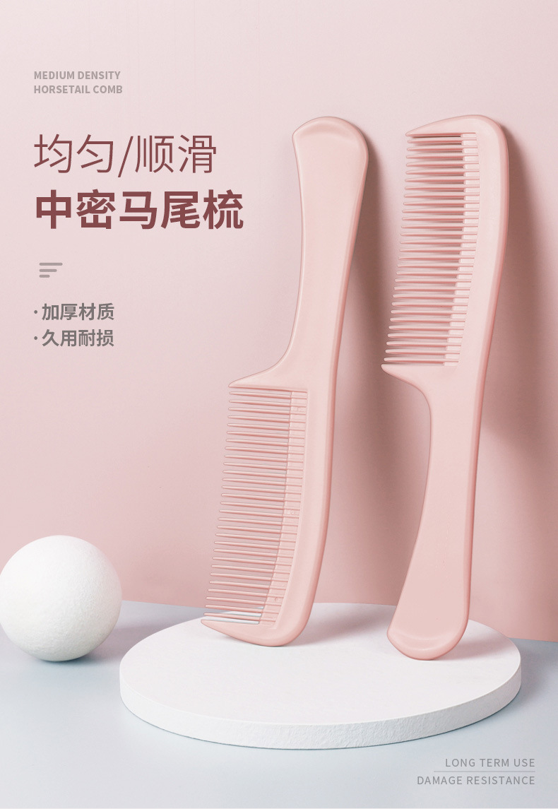 Macaron peine recto rosa grueso para mujer, peine plano con cola de caballo, peine de dientes densos para el hogar, peine de plástico al por mayor