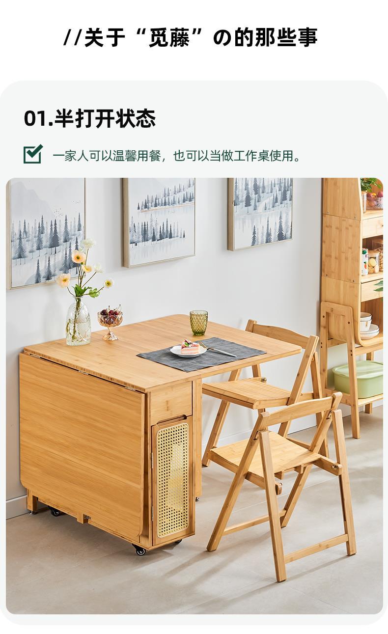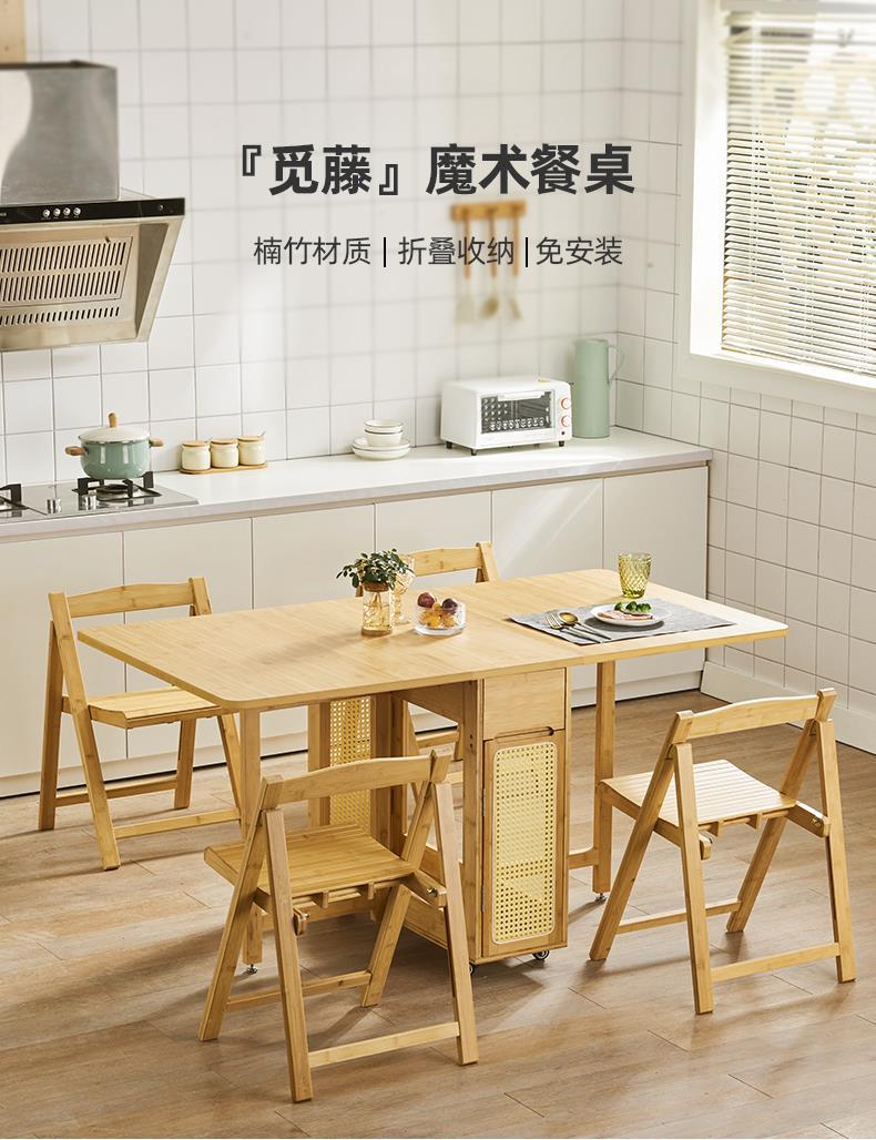 Mesa de comedor plegable de madera maciza hogar pequeño apartamento ratán cuadrado mesa de comedor retráctil japonés moderno simple combinación de mesa y silla