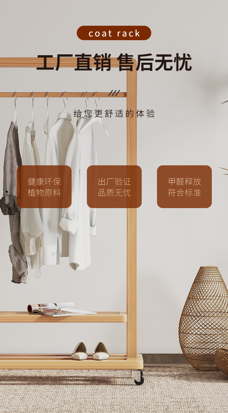 Perchas de piso a techo Dormitorio Perchas de piso Sala de estar para el hogar Muebles de madera maciza Net Net Bed B & B Perchero de hotel