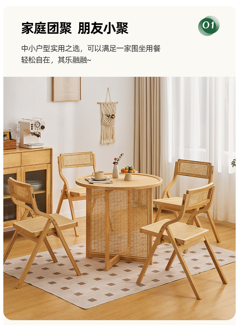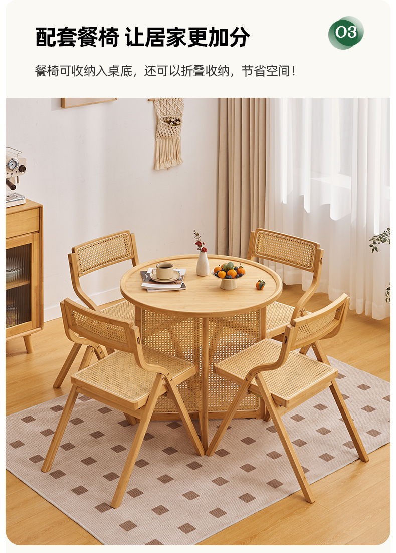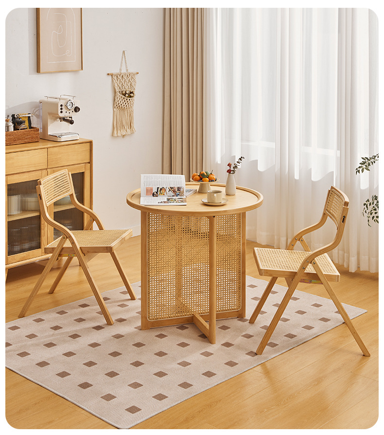 Combinación de mesa y silla de comedor de ratán japonés, mesa redonda de apartamento pequeño, balcón para el hogar, mesa de té de la casa de familia del sudeste asiático, estilo de troncos