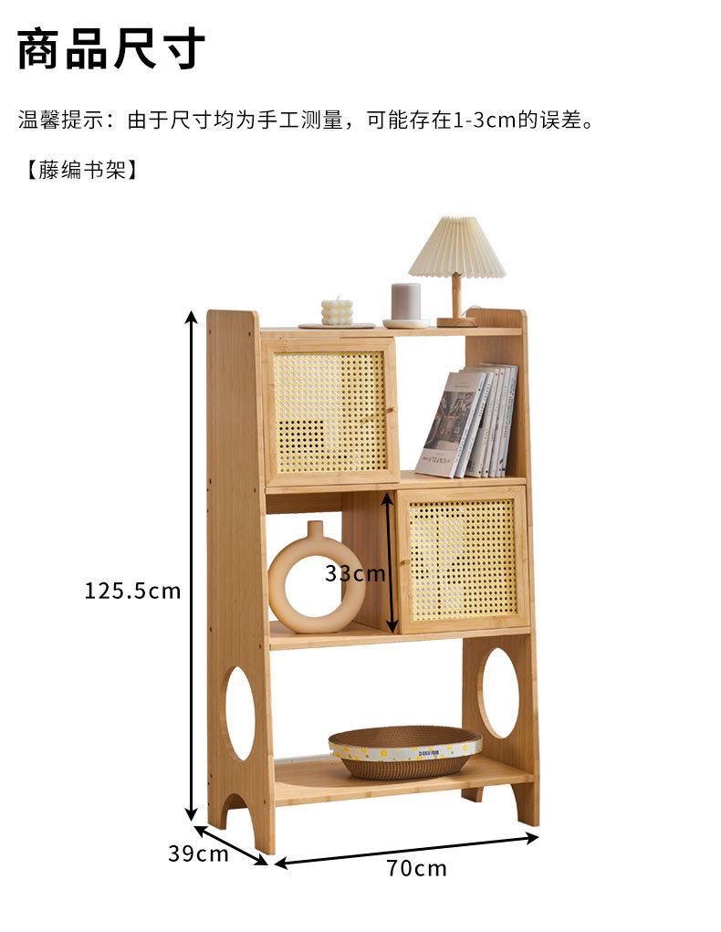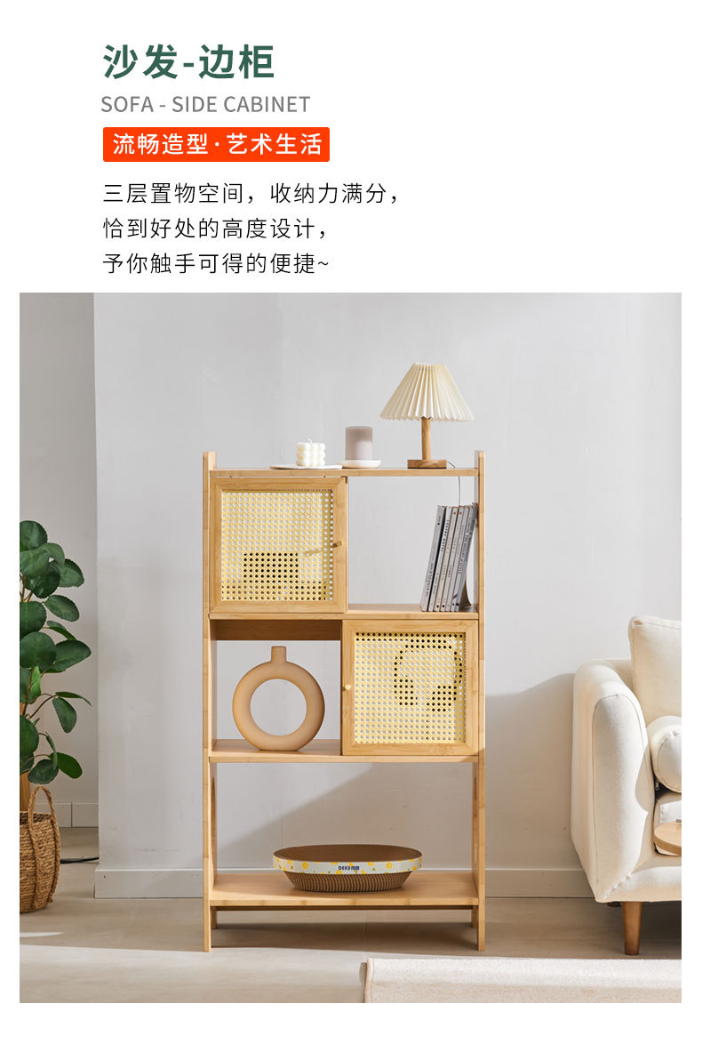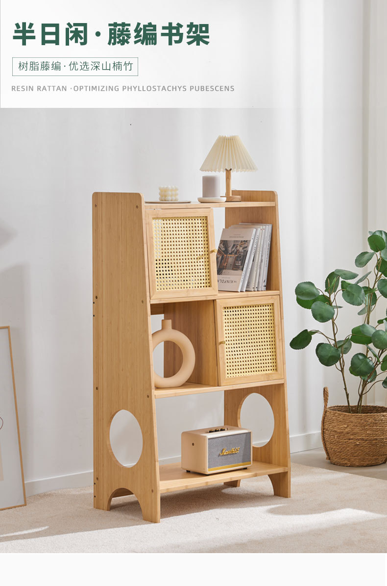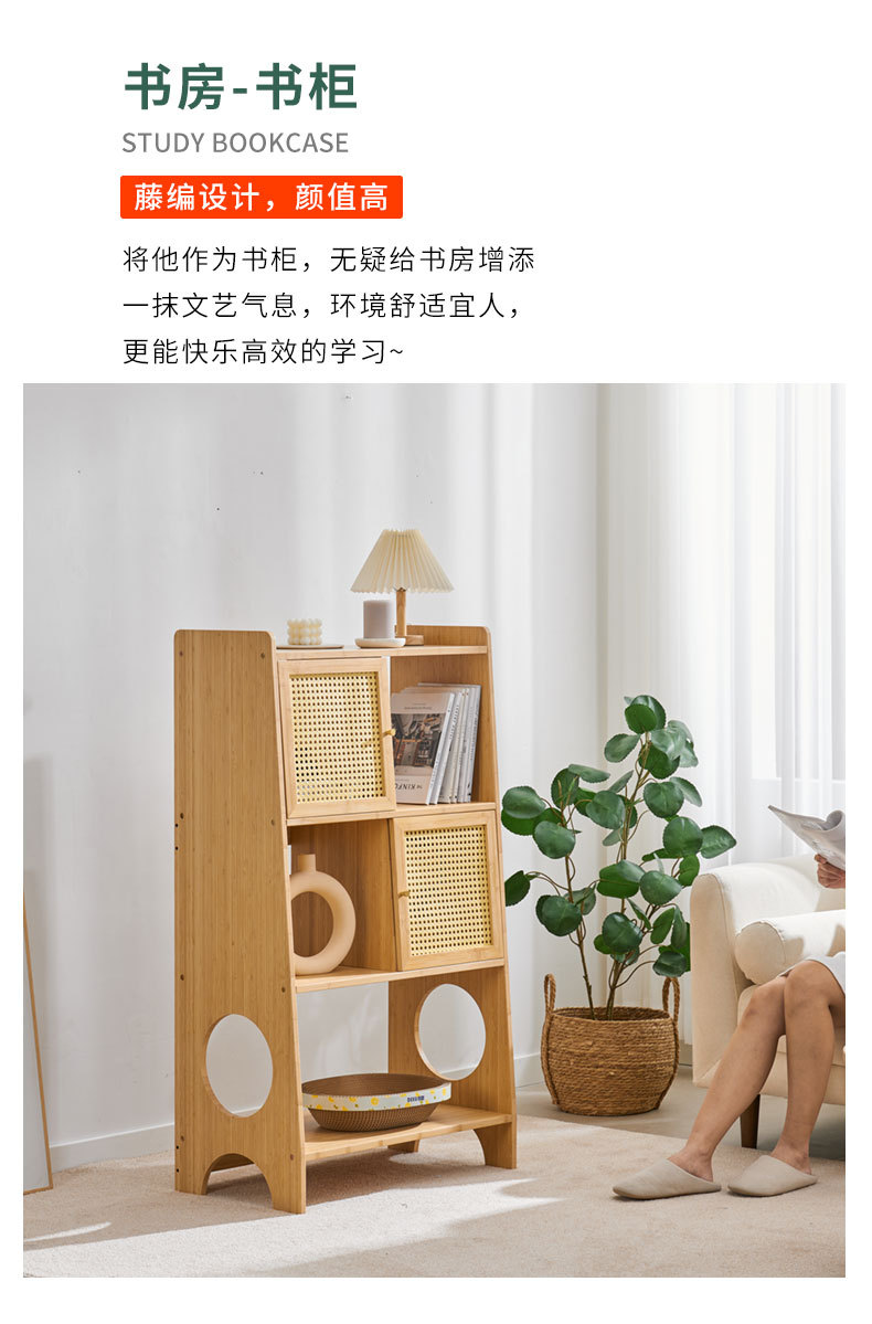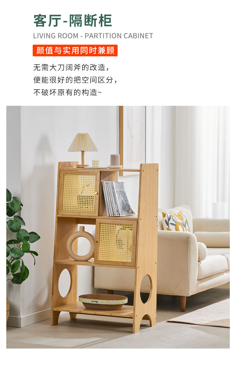 Estantería de ratán de estilo japonés estantería de piso con puerta gabinete de almacenamiento de sala de estar creativa Gabinete de exhibición de múltiples capas