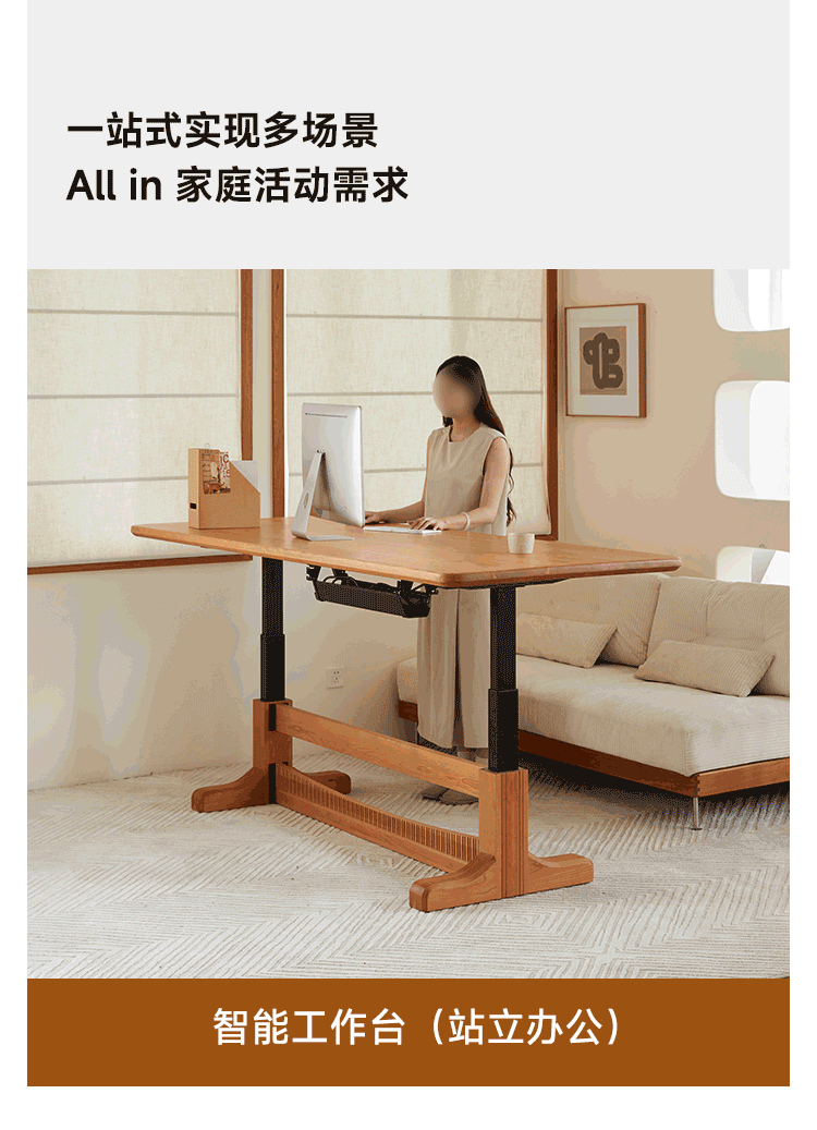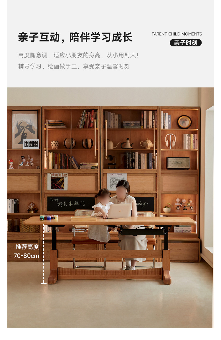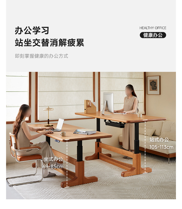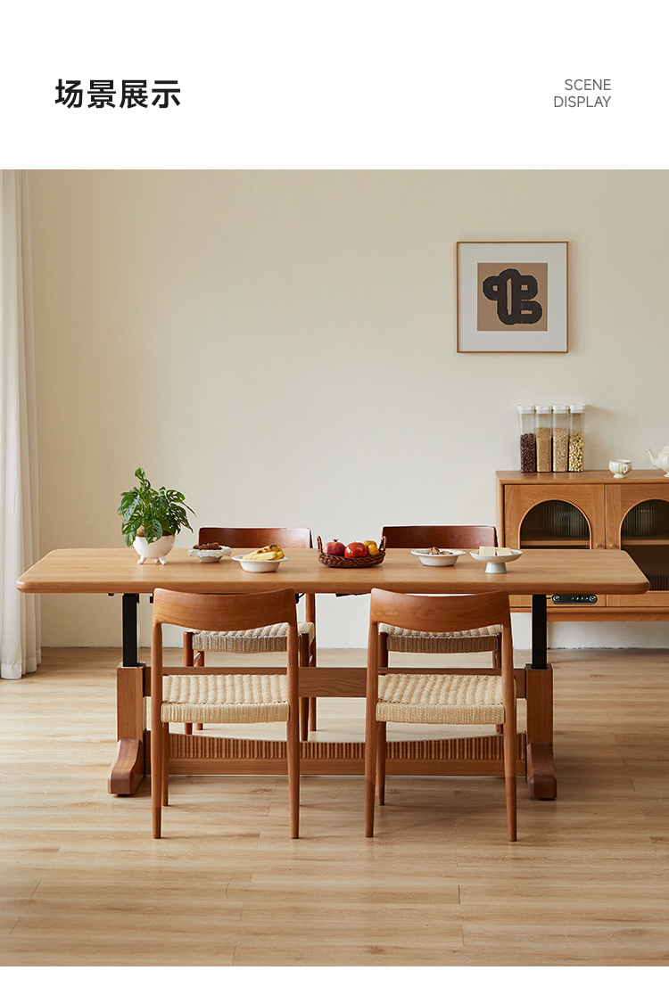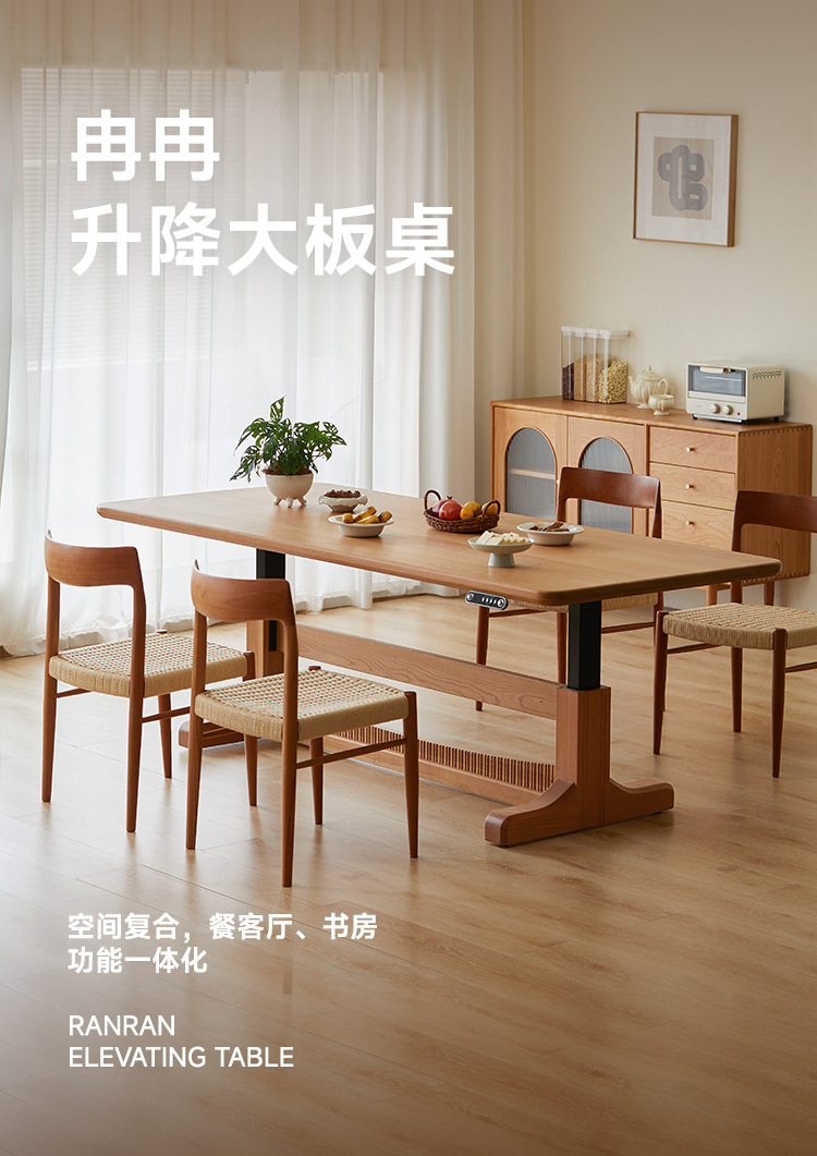 Mesa elevadora eléctrica, mesa de comedor de tablero grande, color de madera de cerezo, fuera de la sala de estar, escritorio largo, banco de trabajo de madera maciza, oficina doble