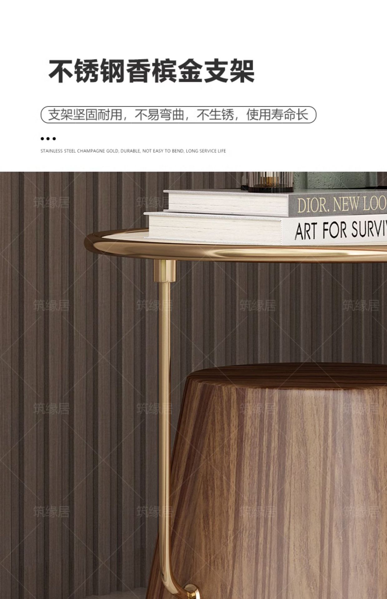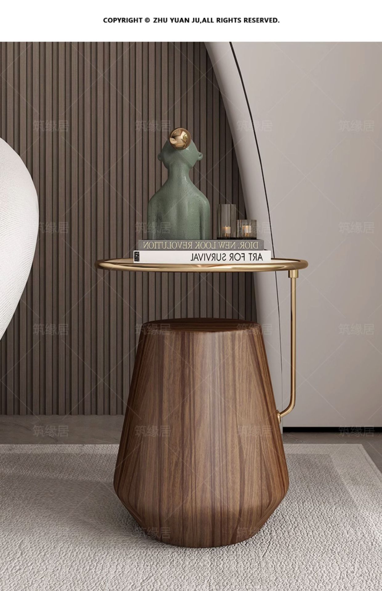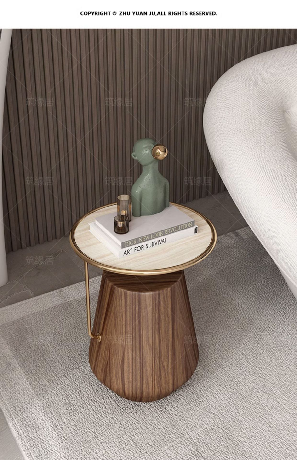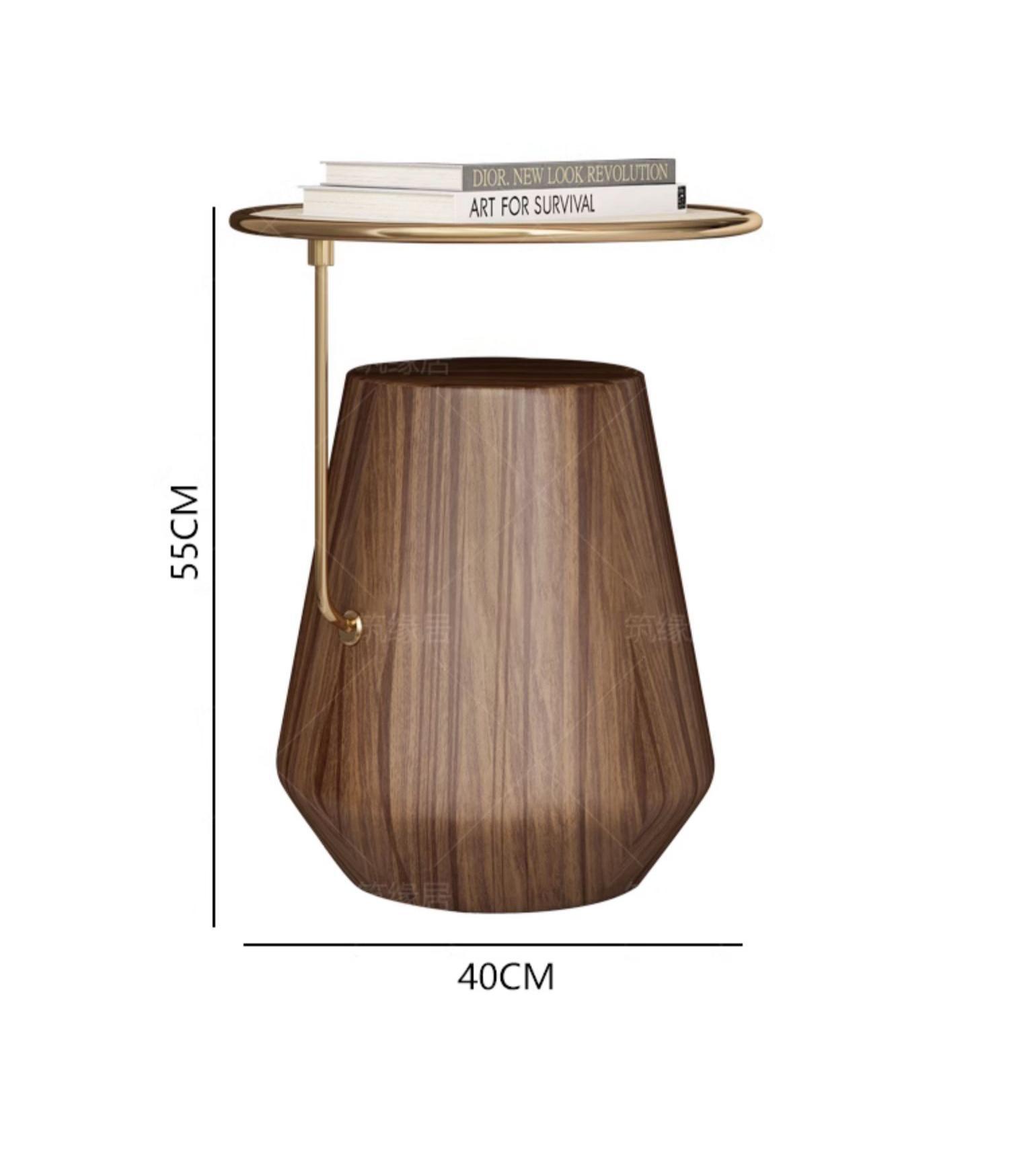 Mesa lateral de losa de roca de lujo ligero, sofá de sala de estar, esquina móvil redonda minimalista, diseño de cabecera, mesa de centro pequeña de nogal