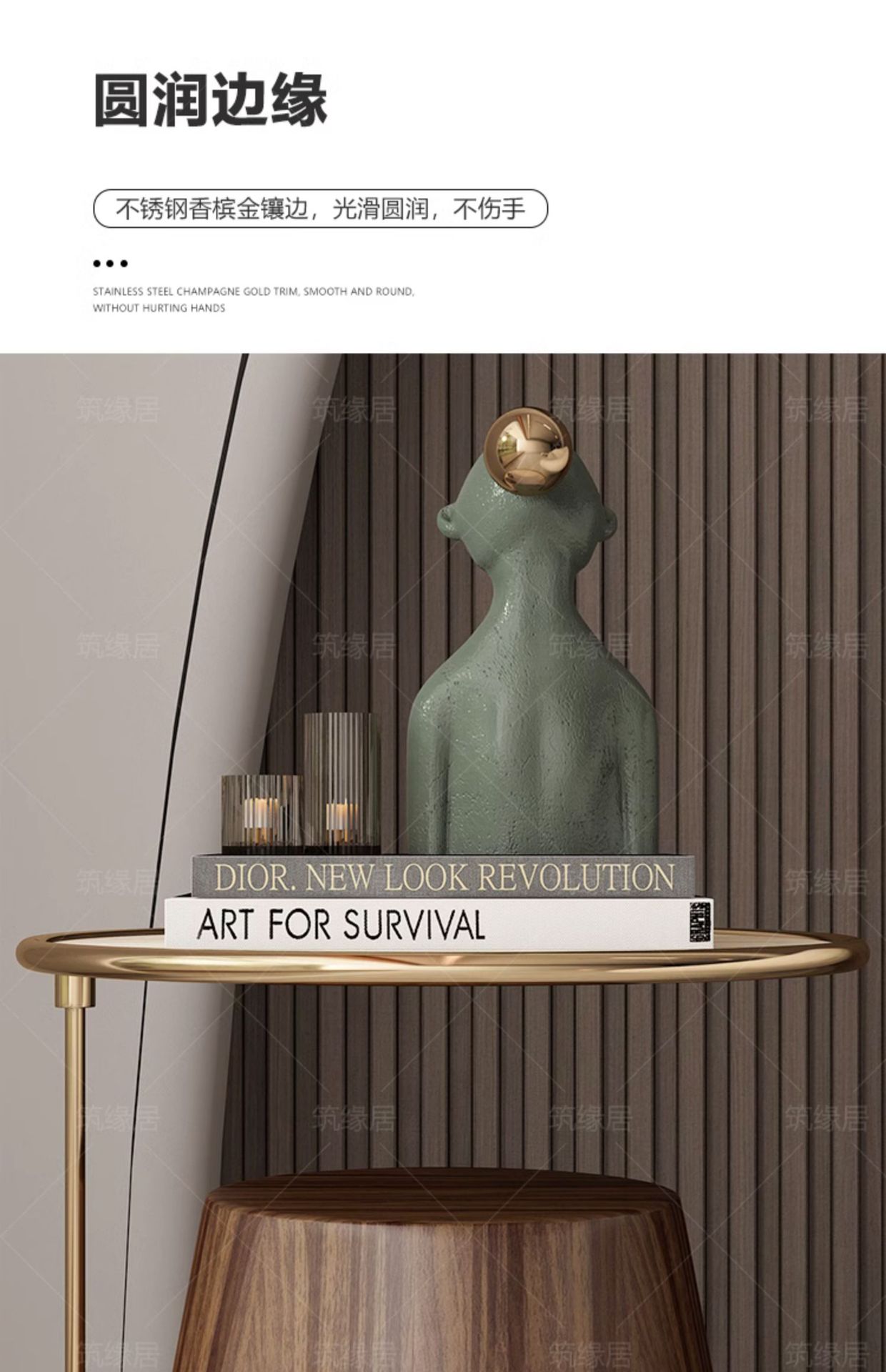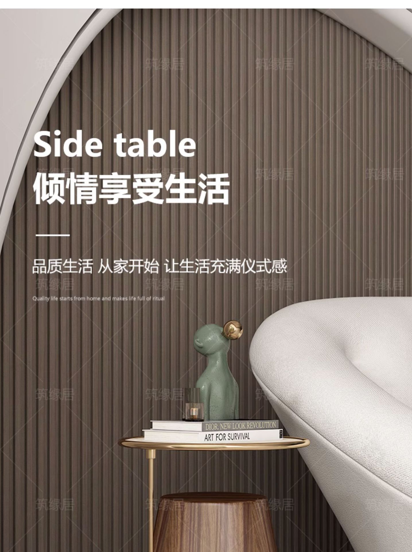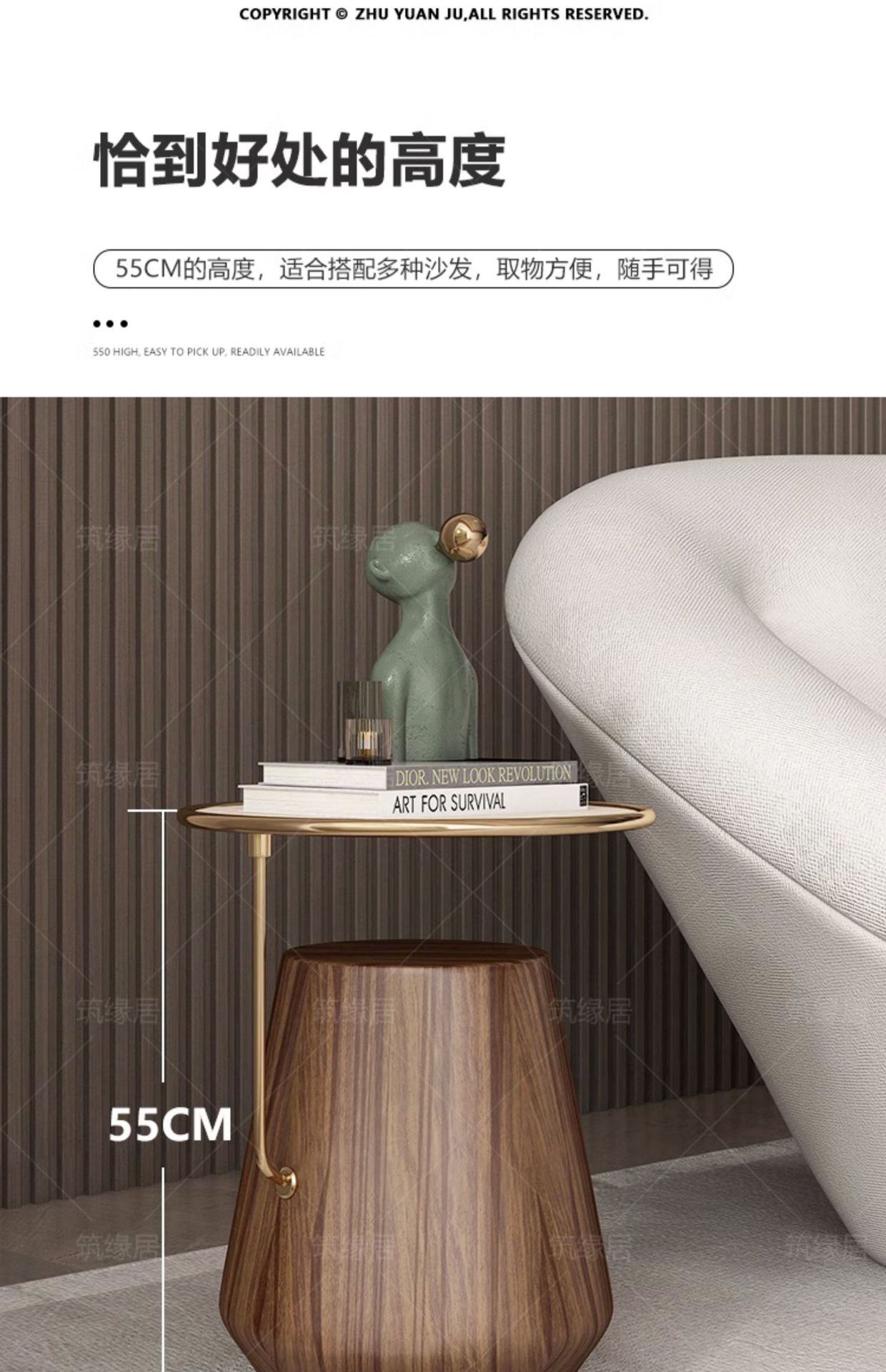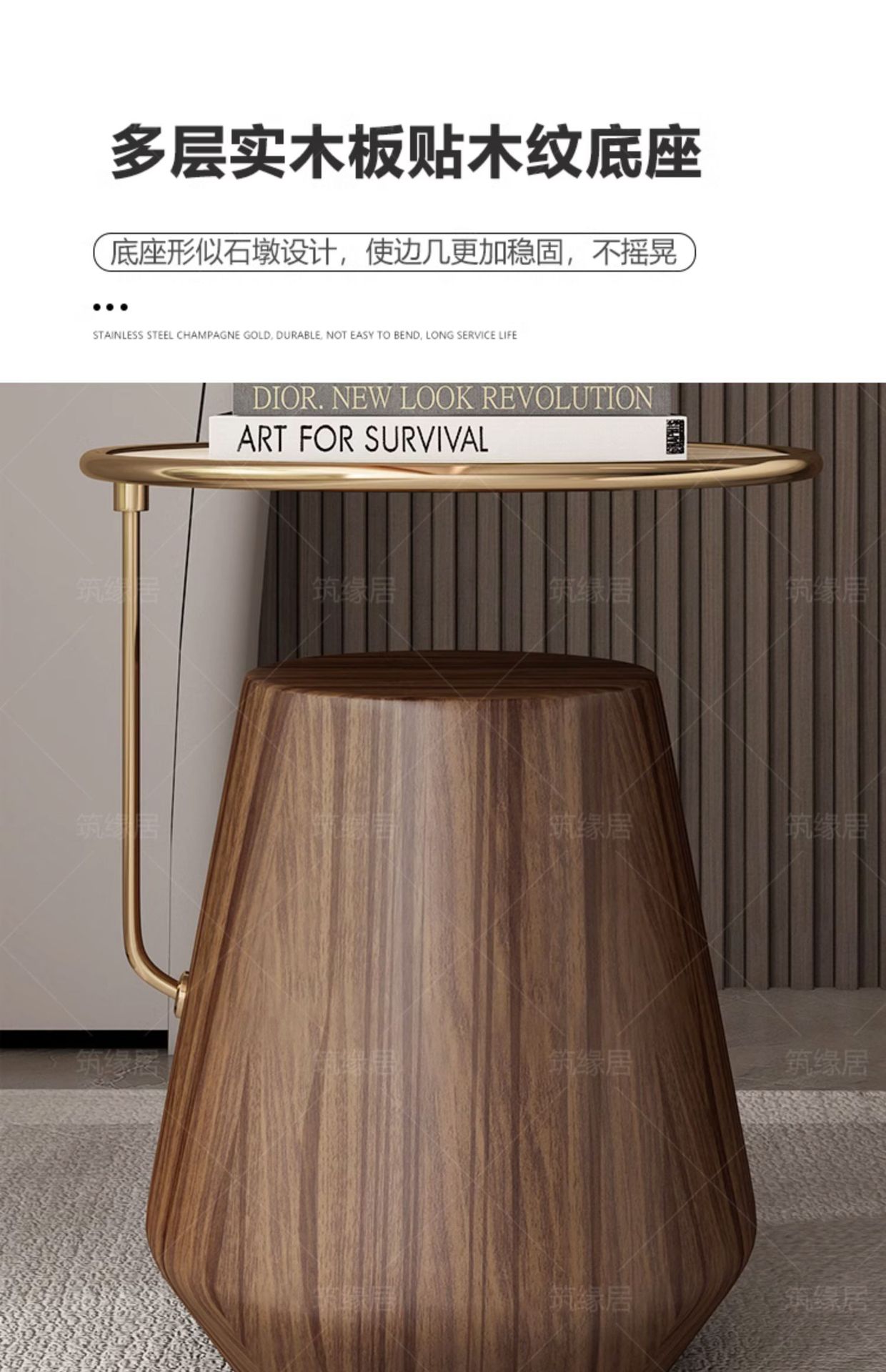 Mesa lateral de losa de roca de lujo ligero, sofá de sala de estar, esquina móvil redonda minimalista, diseño de cabecera, mesa de centro pequeña de nogal