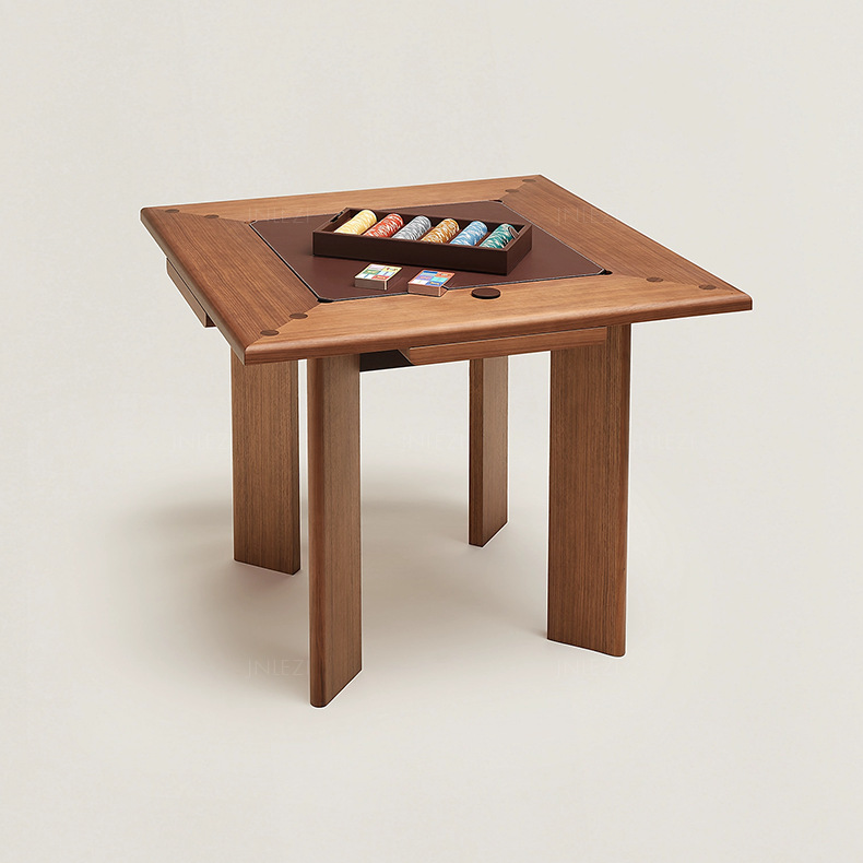 Mesa de ajedrez y cartas de madera maciza de nogal italiano, mesa de huevo de póquer informal para el hogar, mesa de cuero de silla de montar, mesa cuadrada, Amazon