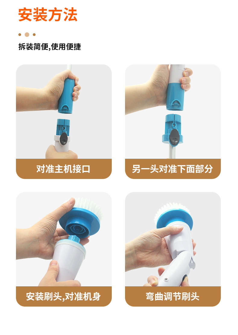 Nuevo cepillo de limpieza eléctrico transfronterizo cocina baño multifunción limpiador inalámbrico de mano mango largo cepillo de carga