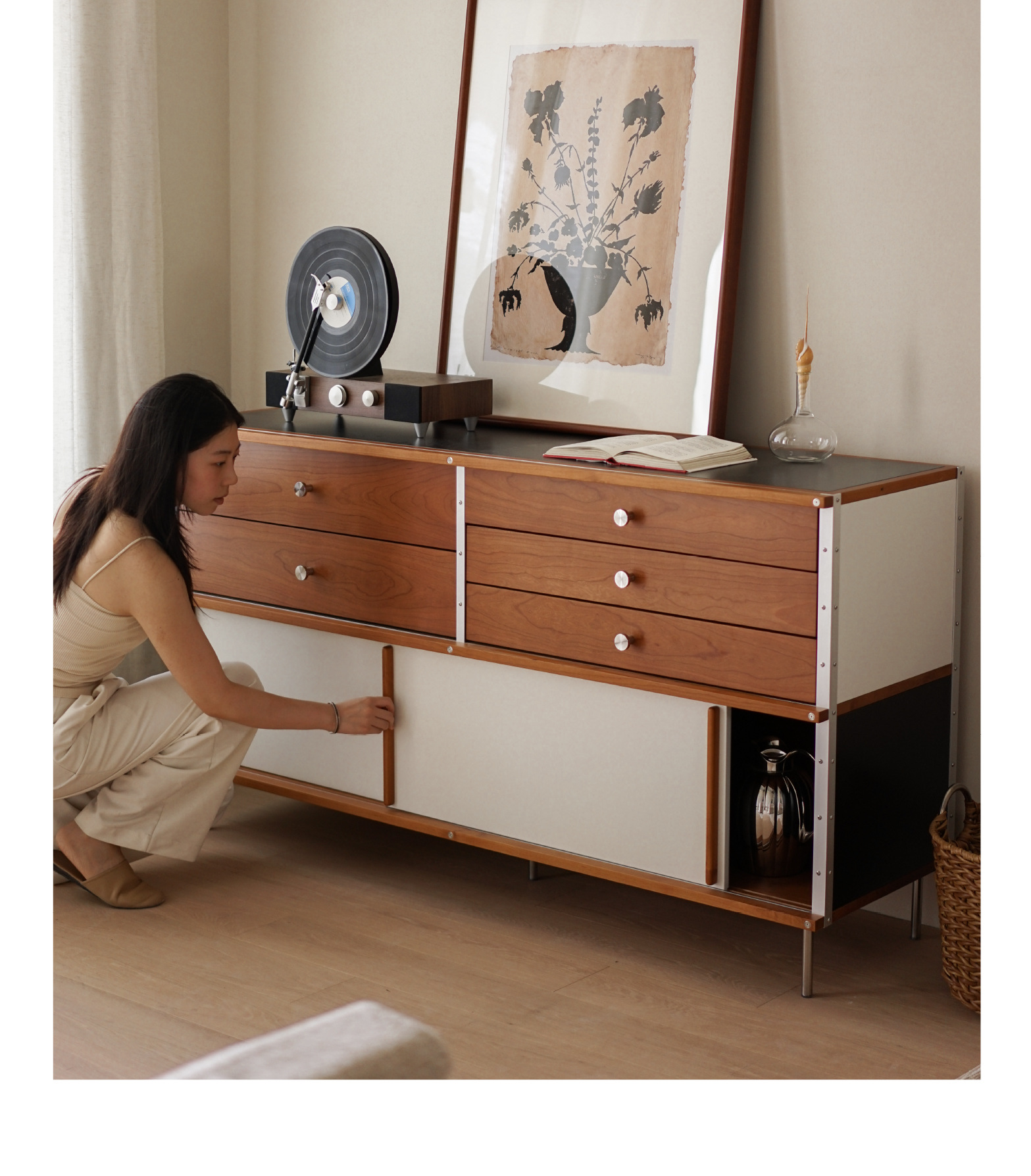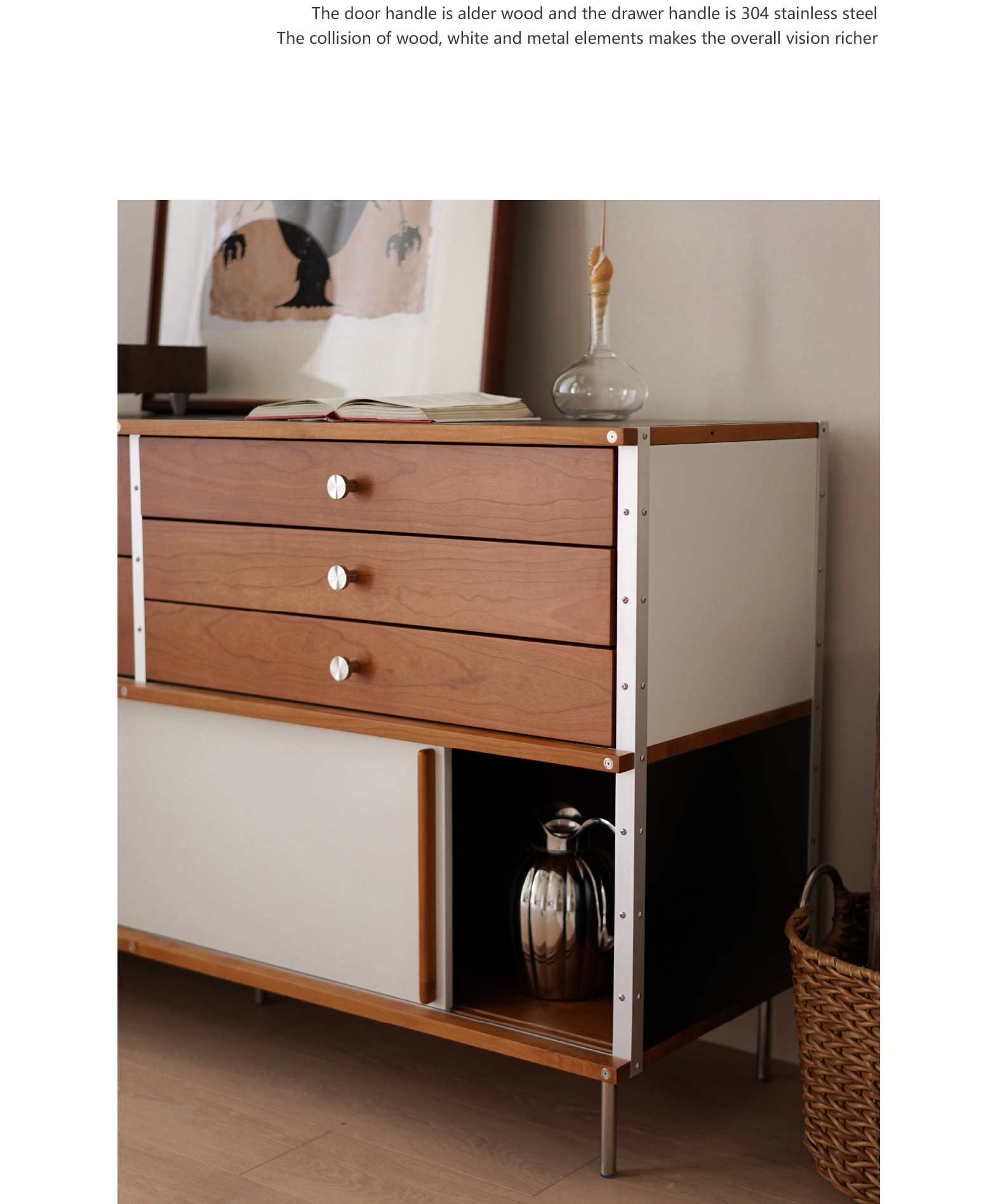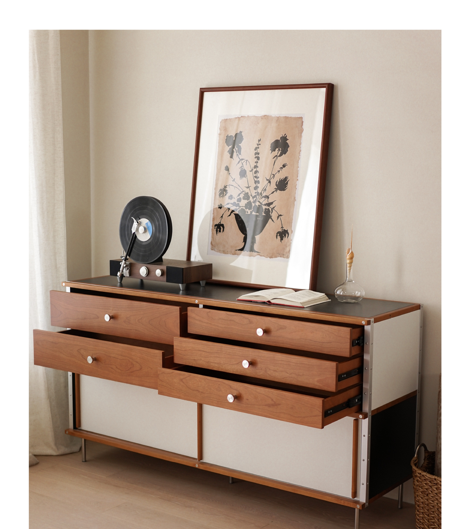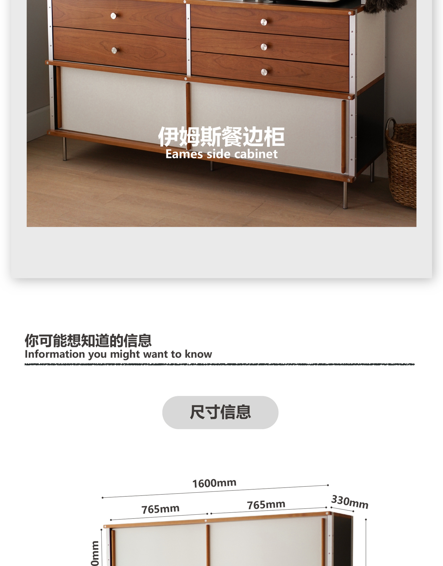 El aparador Eames está contra la pared, una cocina, una cómoda de madera maciza, almacenamiento, almacenamiento, armario de cola de cama 2024 nuevo estilo retro