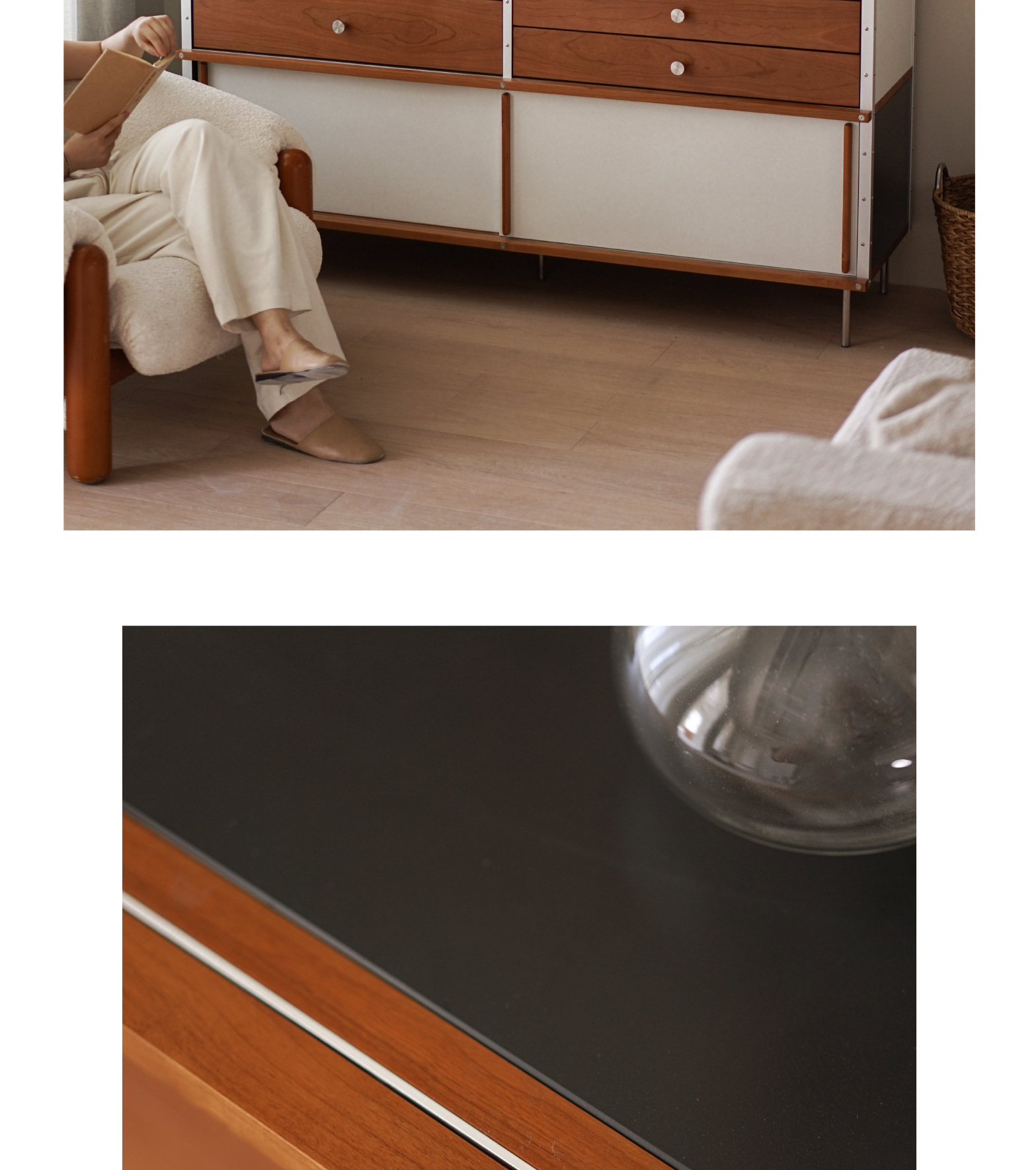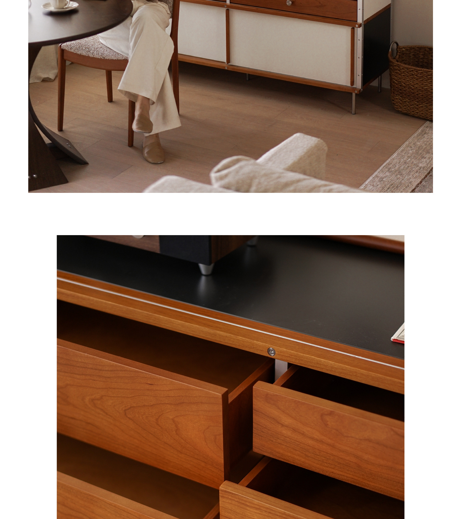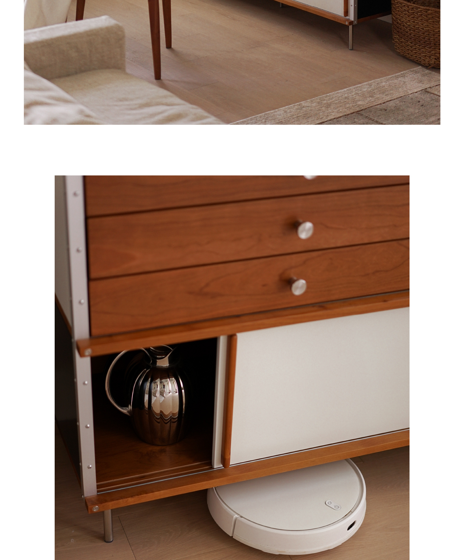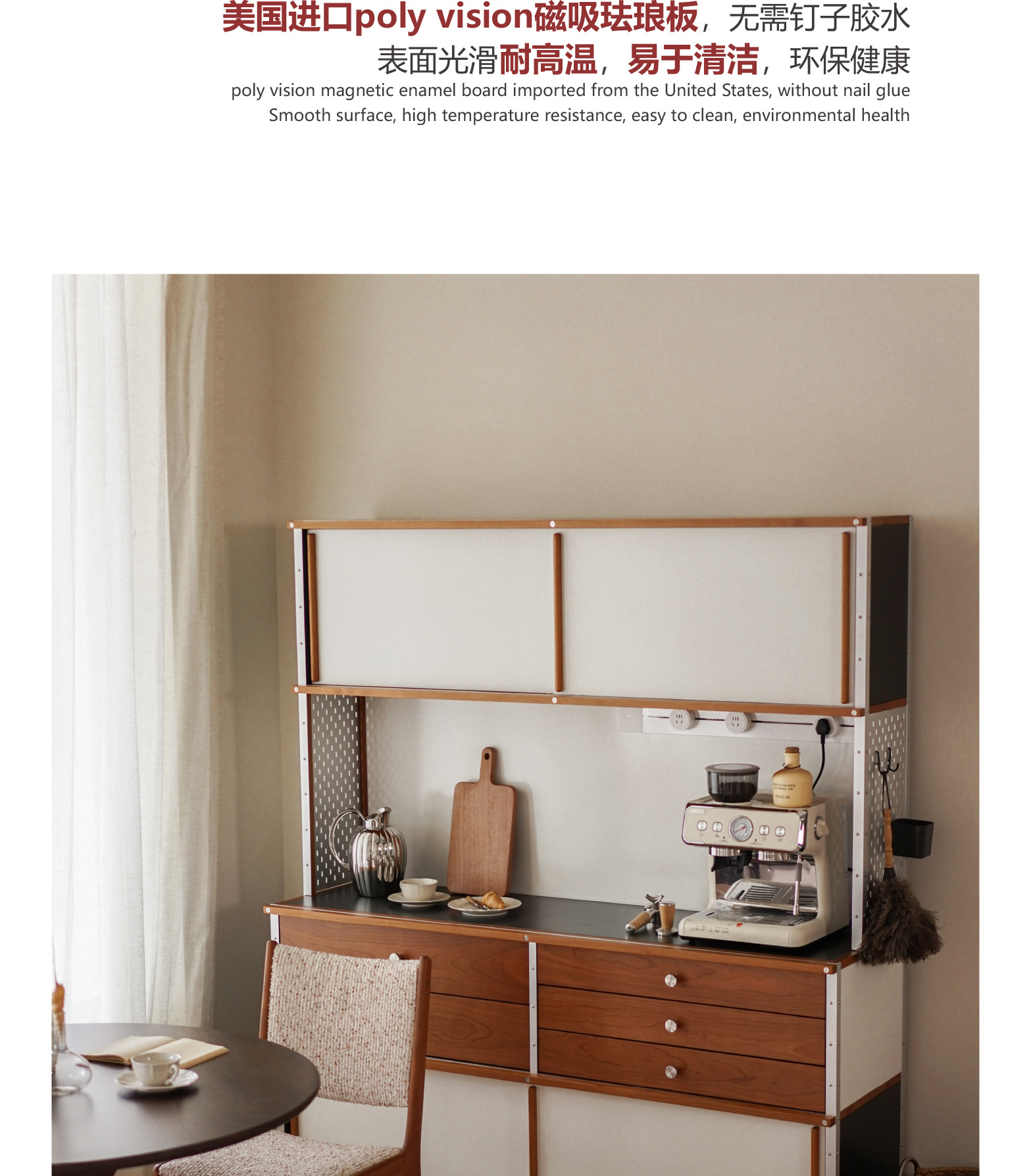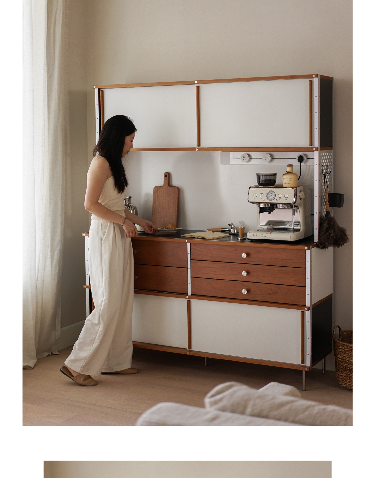 El aparador Eames está contra la pared, una cocina, una cómoda de madera maciza, almacenamiento, almacenamiento, armario de cola de cama 2024 nuevo estilo retro