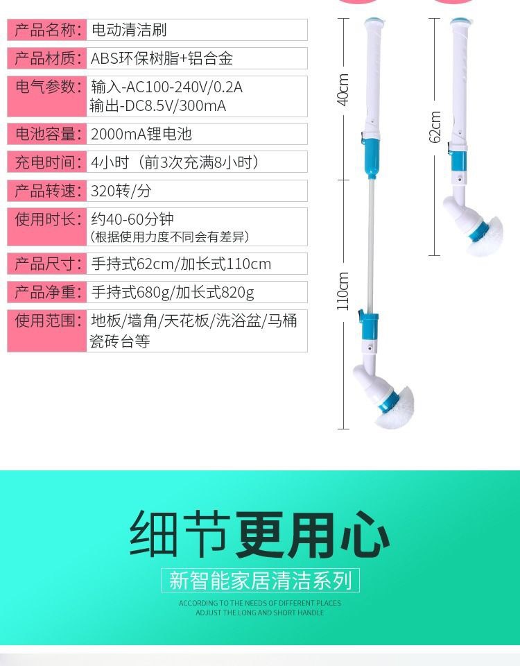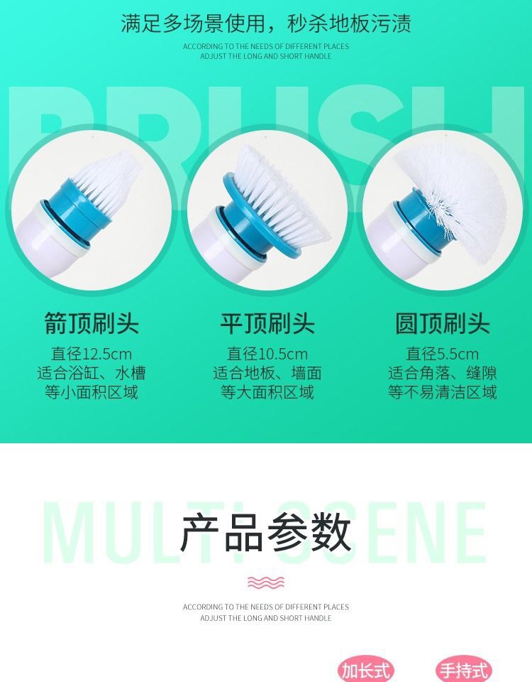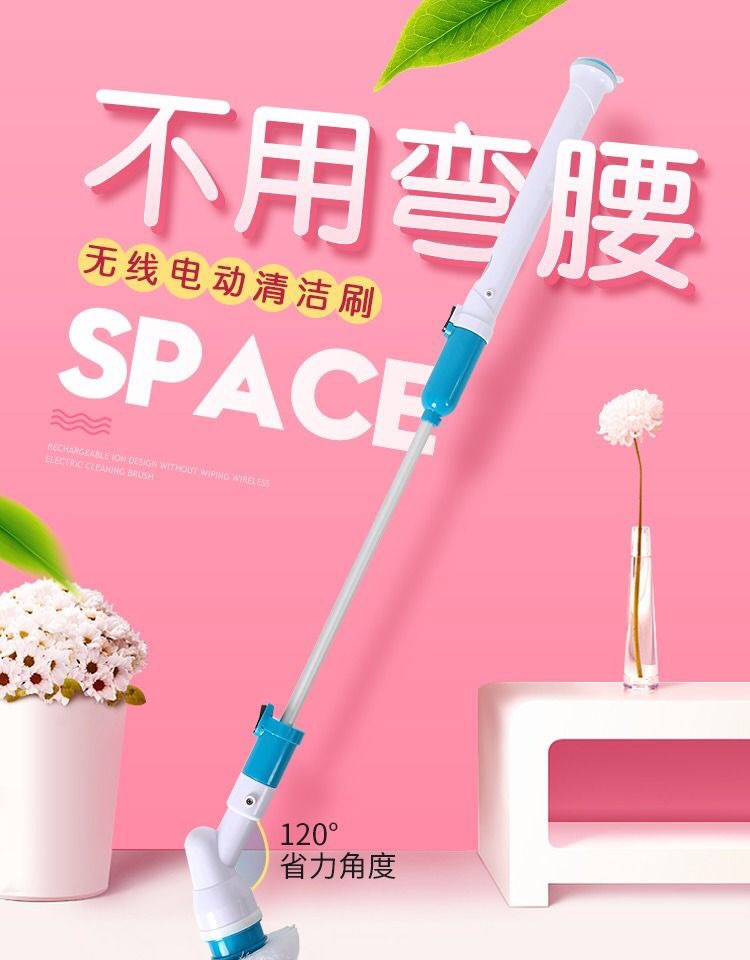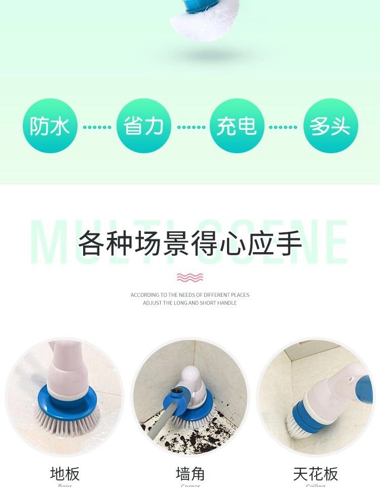 Cepillo de limpieza eléctrico, carga inalámbrica, mango largo, rotación automática multifuncional, cepillo de lavado de cerdas resistentes al agua telescópico