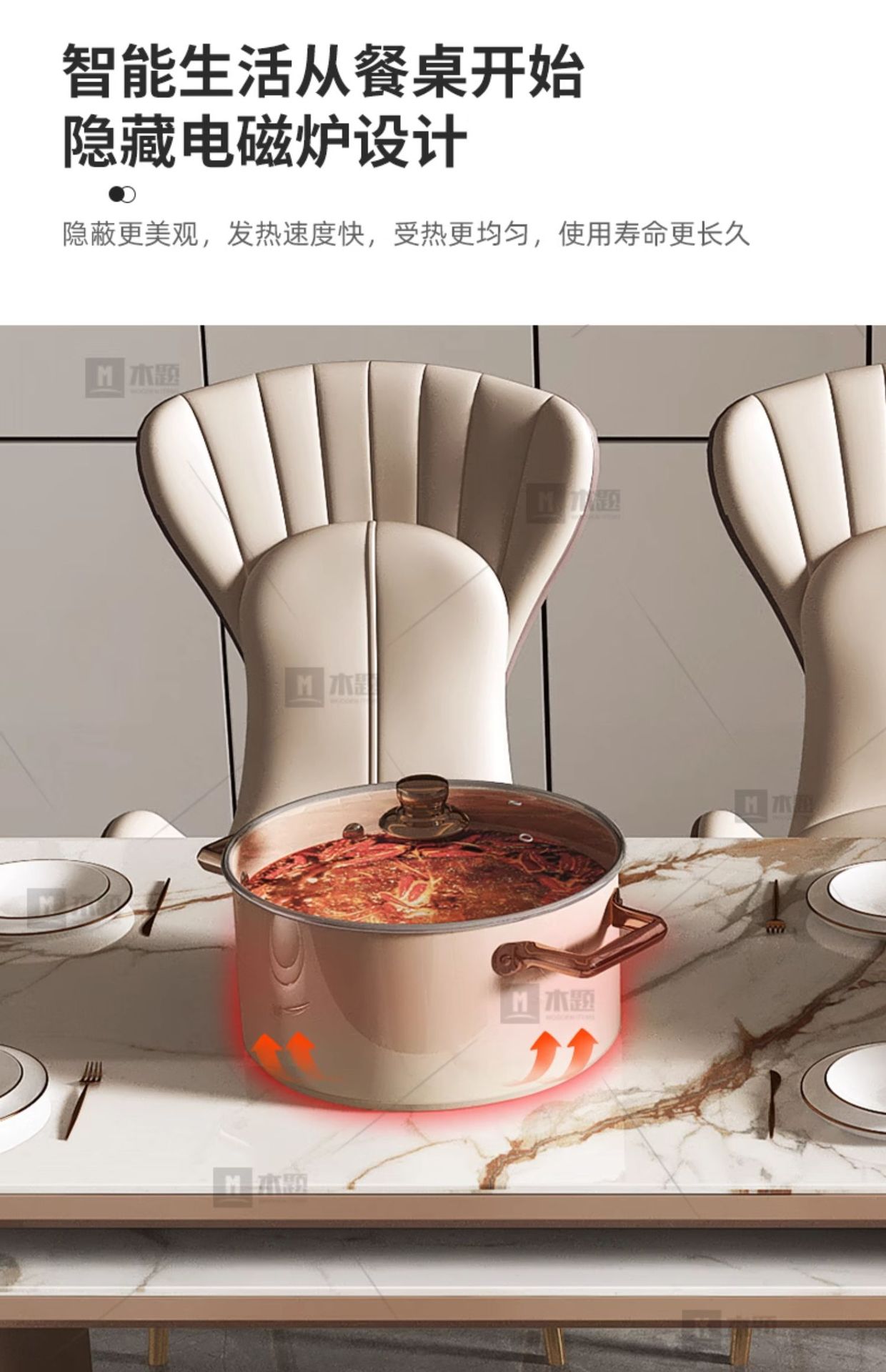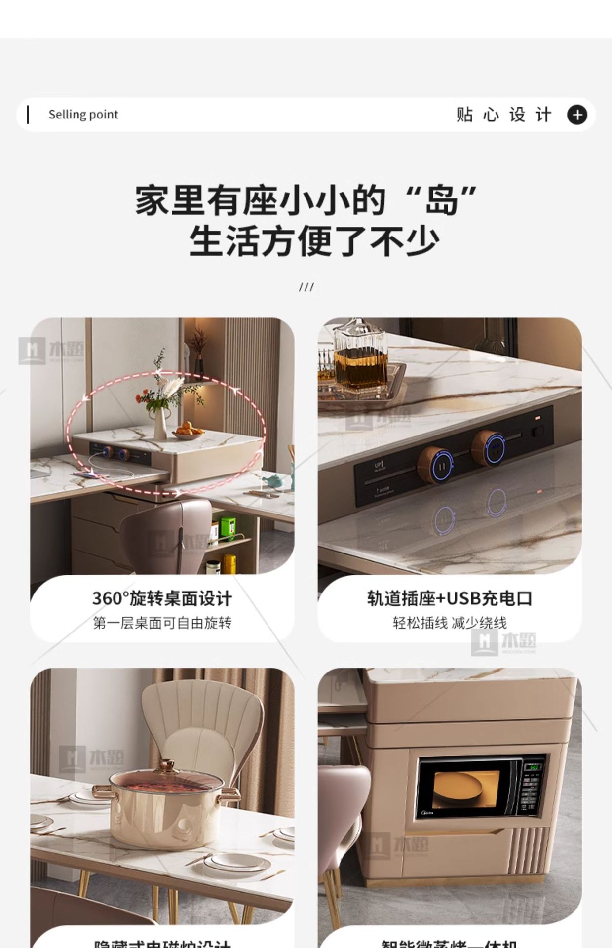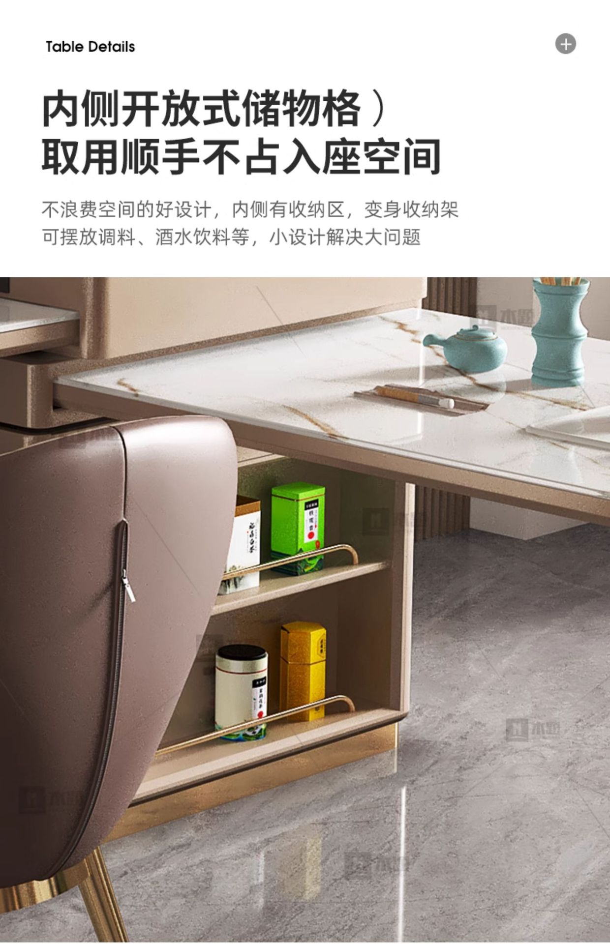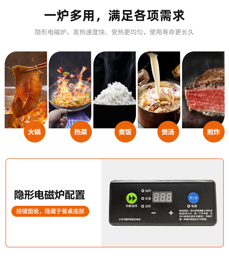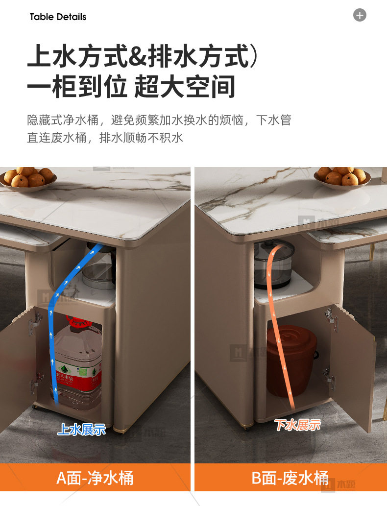 Mesa de mesa de isla de losa de lujo ligero, mesa de comedor, mesa de té giratoria retráctil integrada, mesa de té con cocina de inducción, barra de cocina, mesa de guía y mesa de comedor