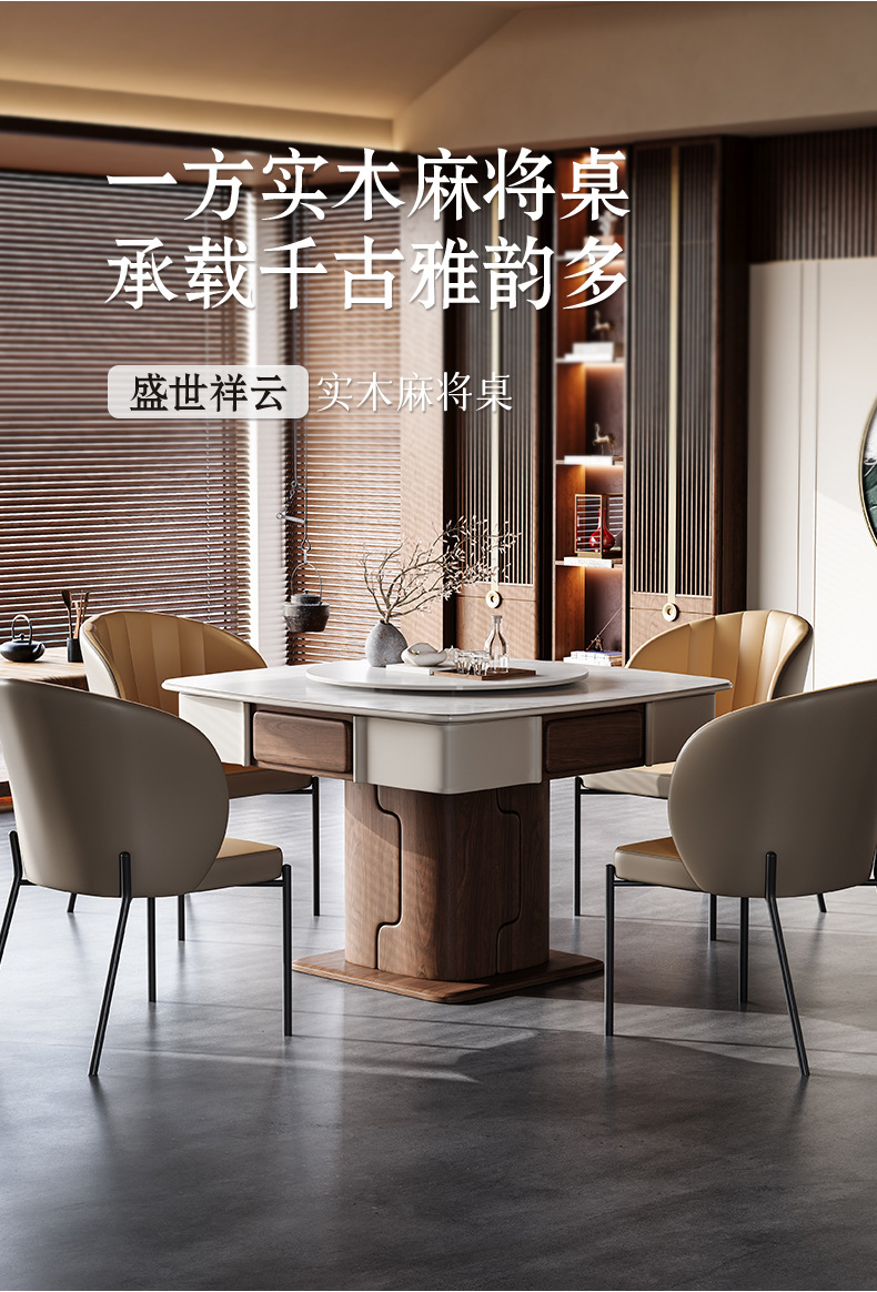 Nueva mesa de mahjong de madera maciza china, mesa de comedor, máquina de mahjong doméstica automática de doble uso, mesa de ajedrez y cartas de madera de goma, reunión familiar