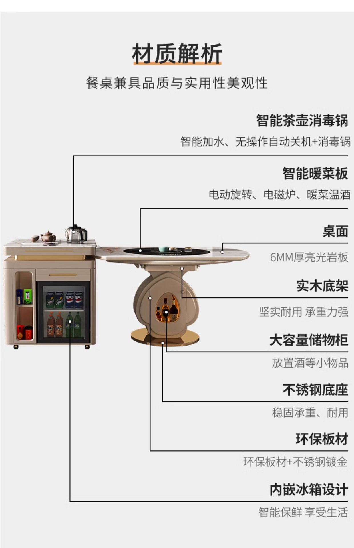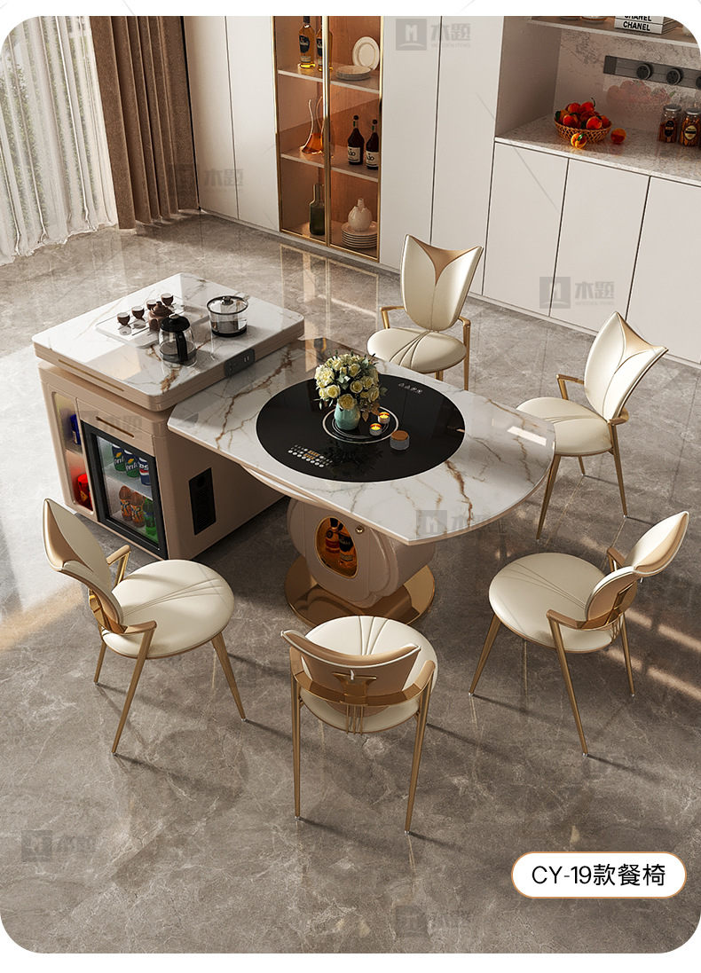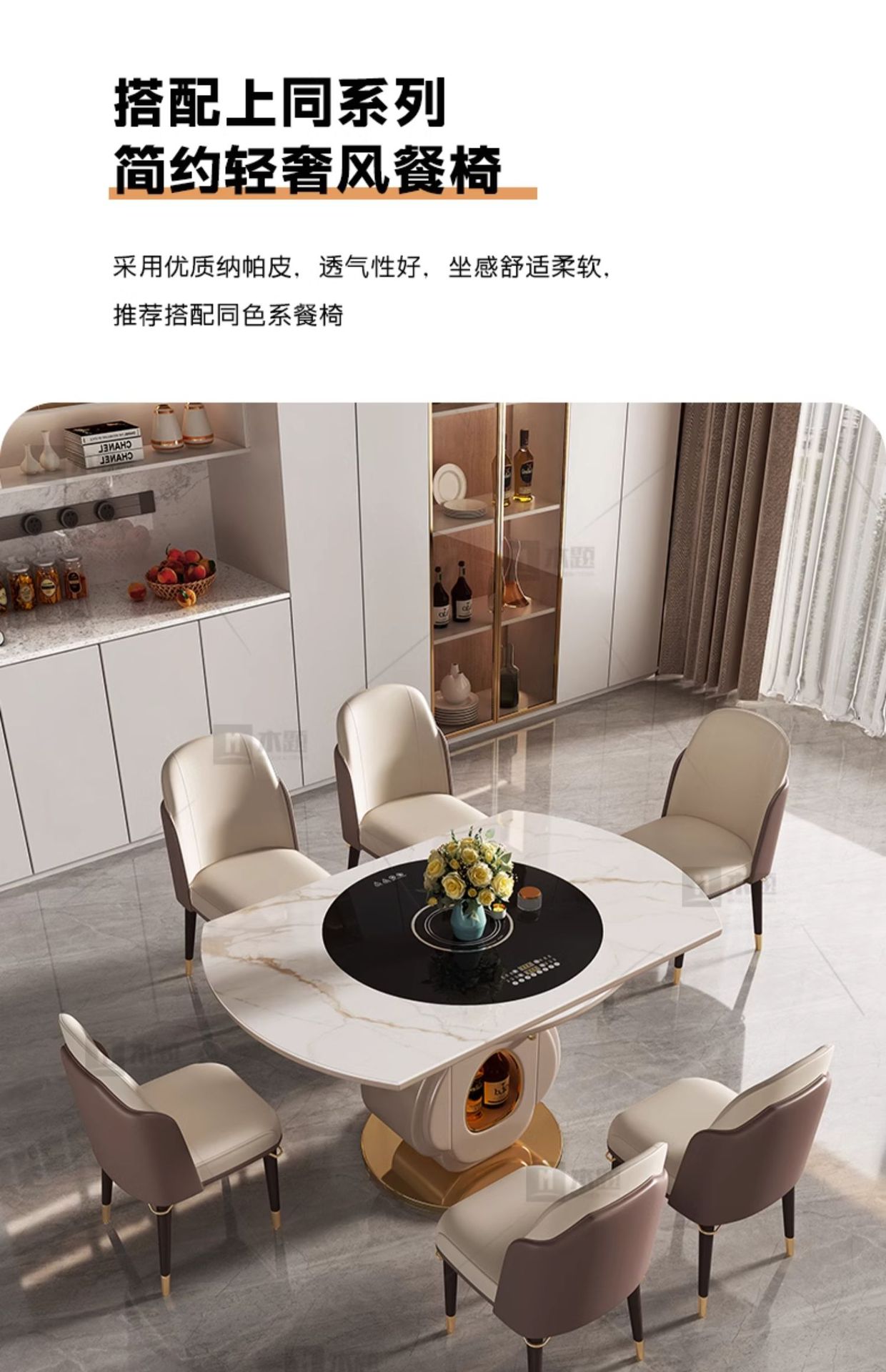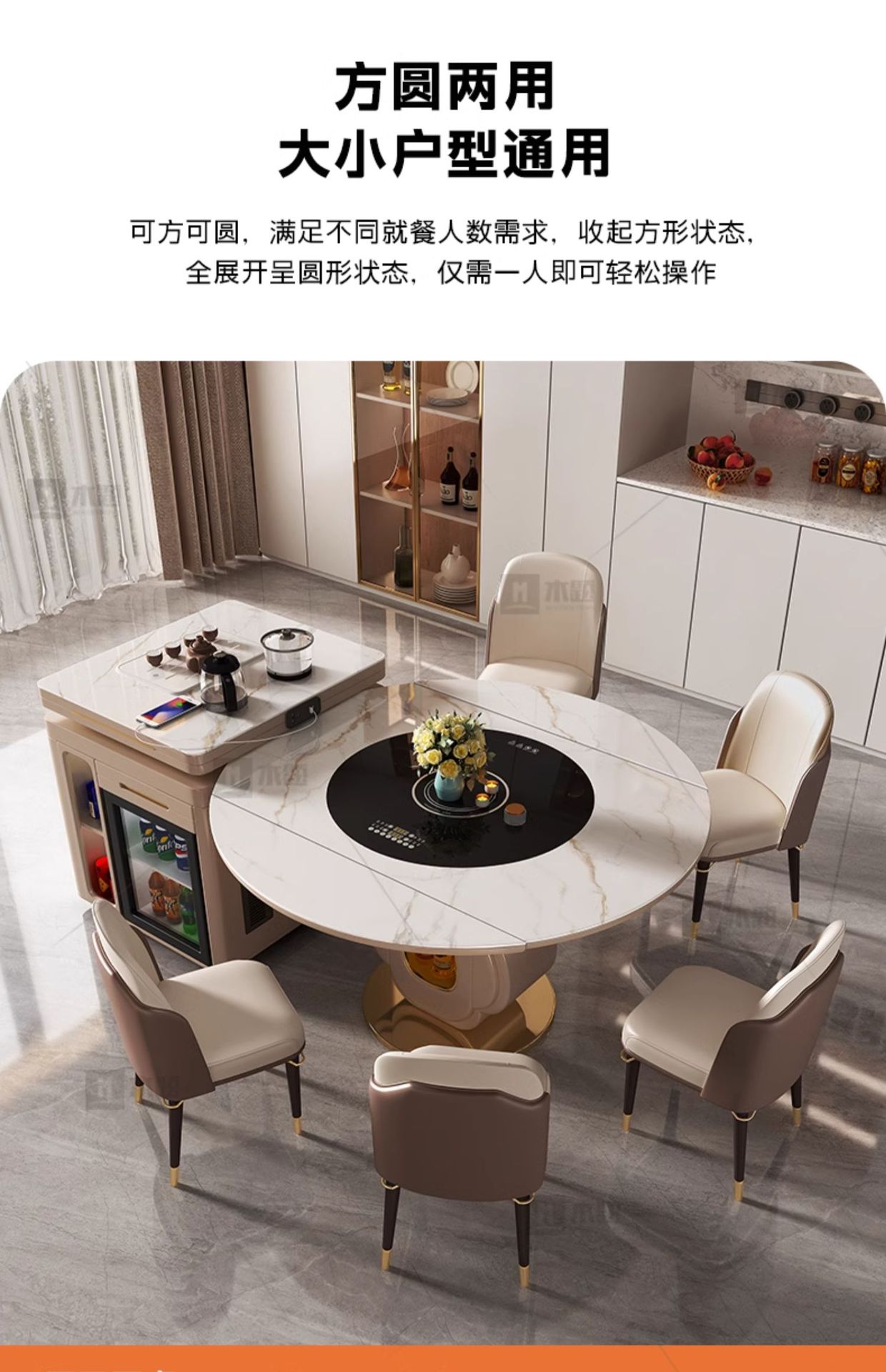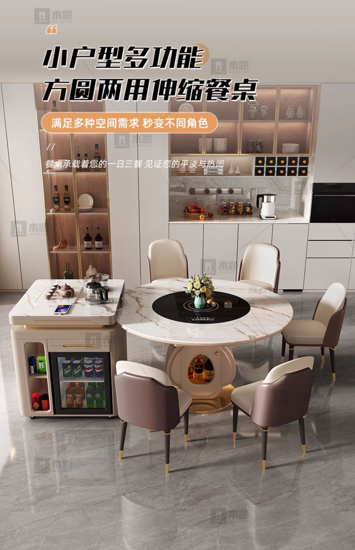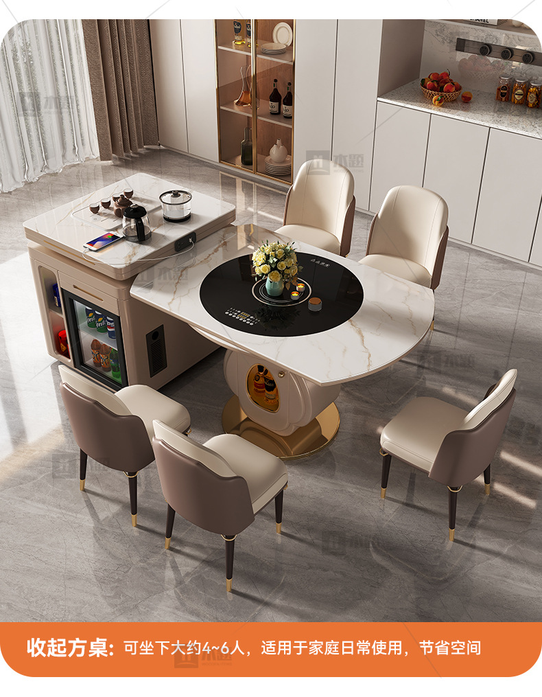 Mesa de mesa de isla de roca Mesa de comedor retráctil Mesa redonda para el hogar Mesa giratoria inteligente minimalista moderna Combinación de mesa y silla de té multifuncional de lujo ligero