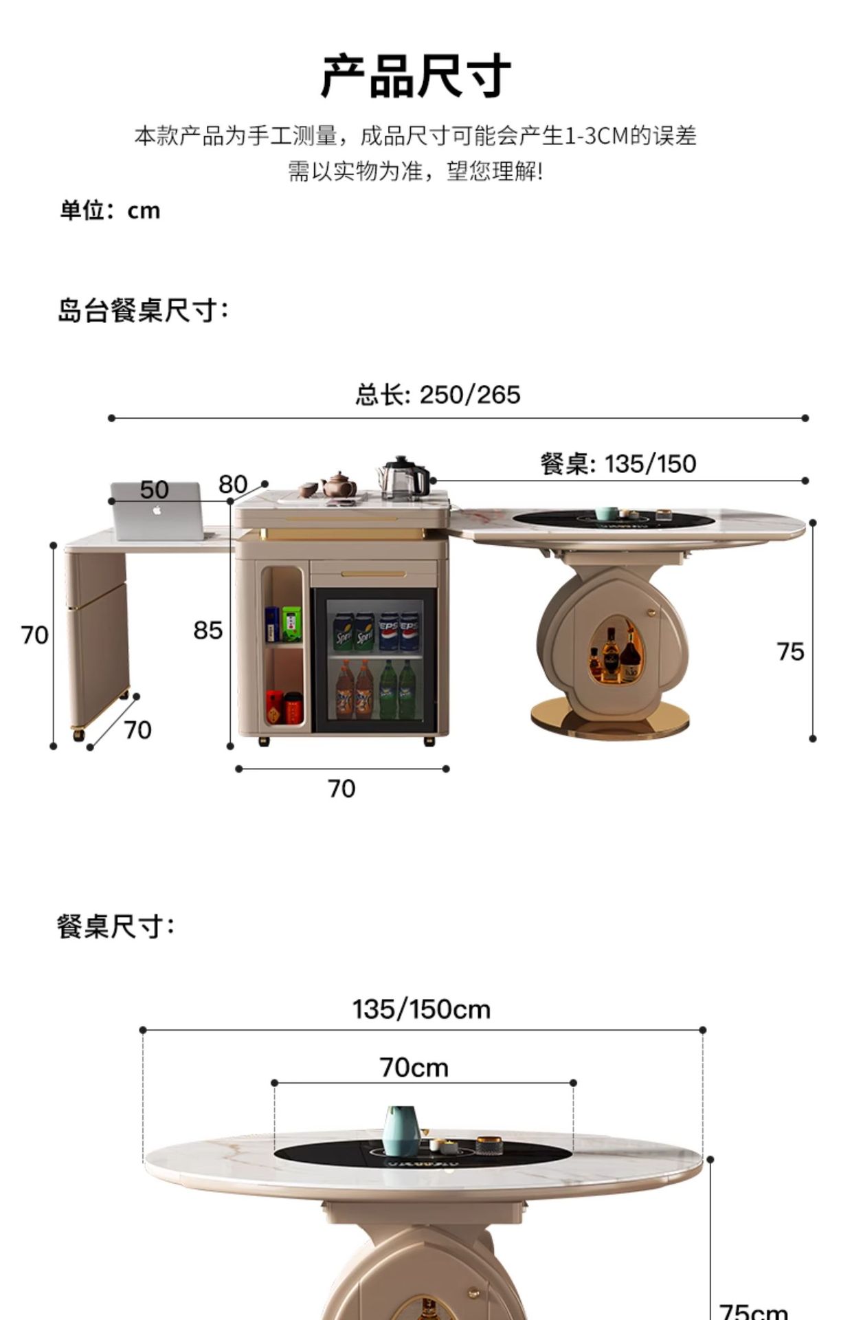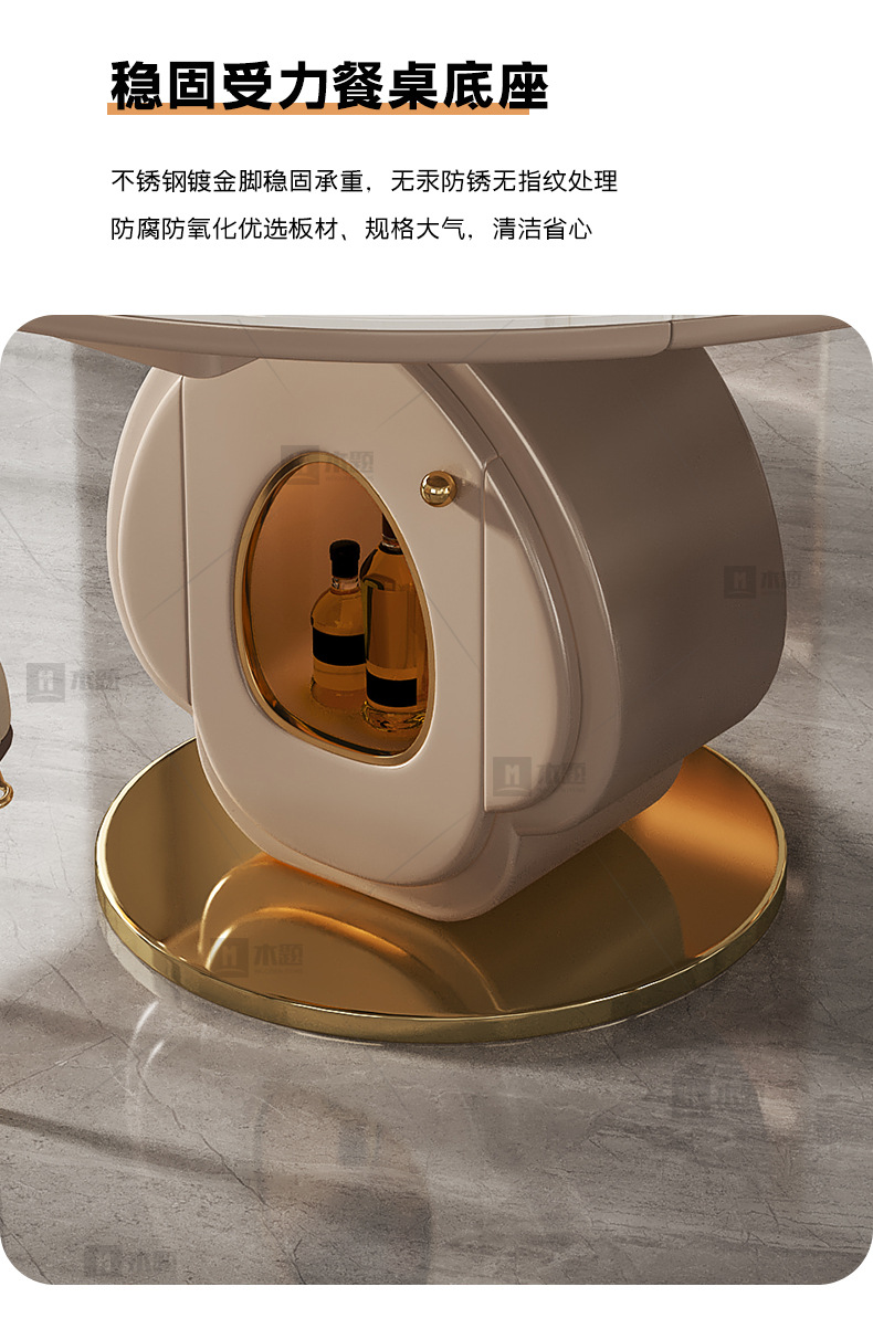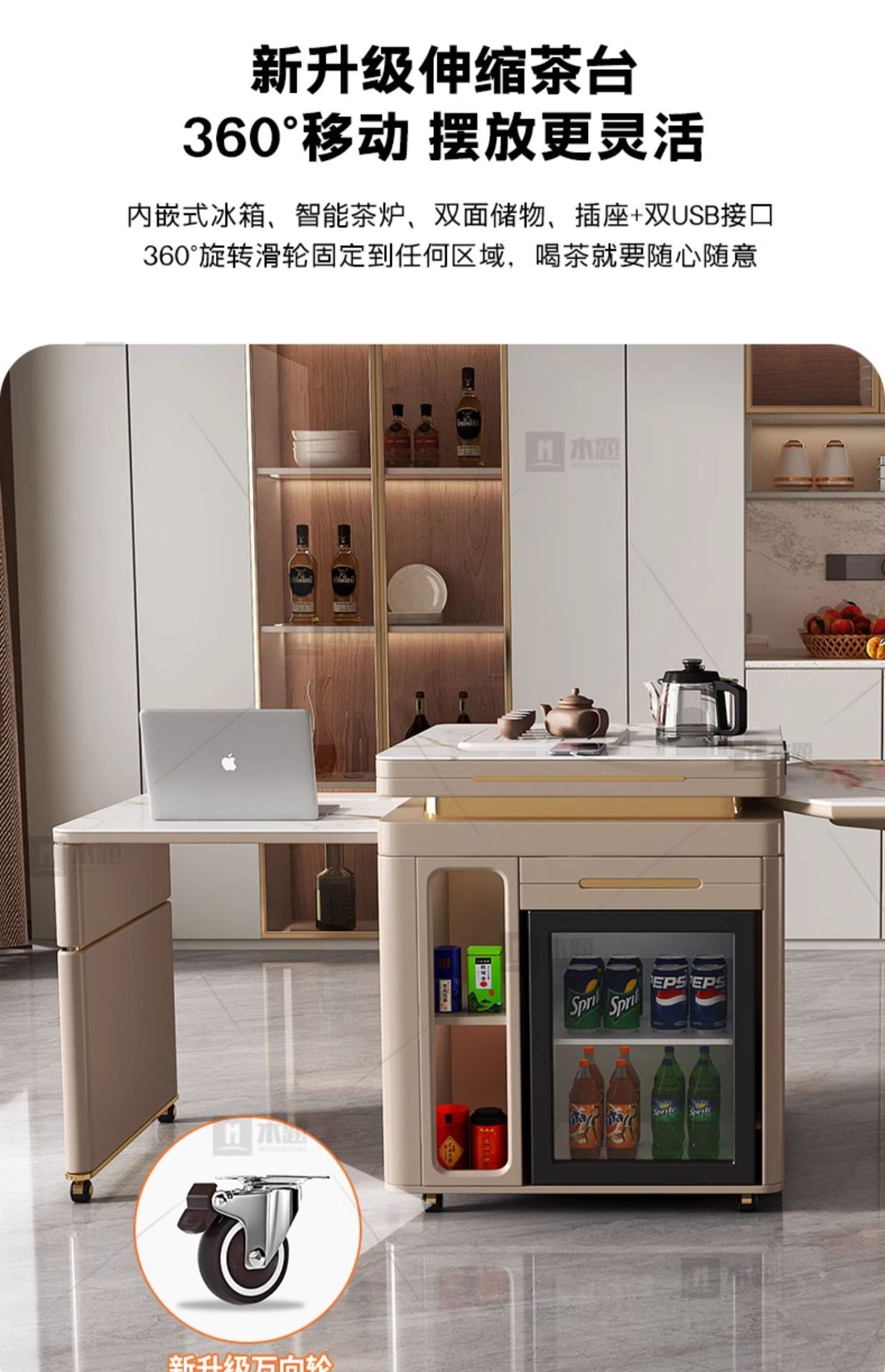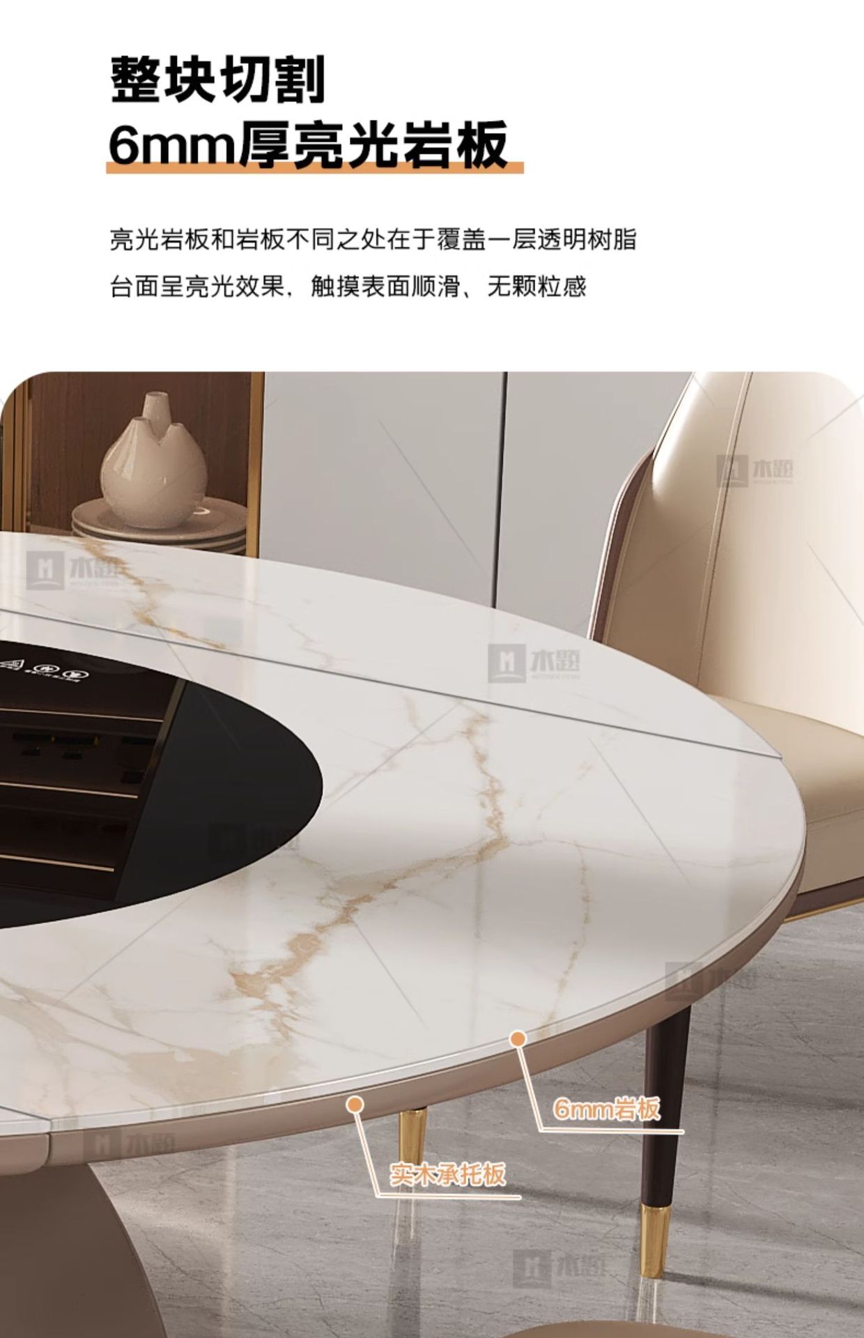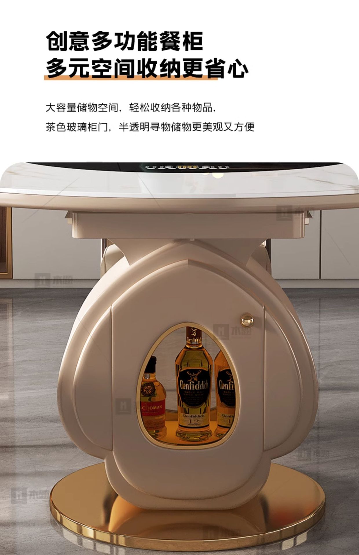 Mesa de mesa de isla de roca Mesa de comedor retráctil Mesa redonda para el hogar Mesa giratoria inteligente minimalista moderna Combinación de mesa y silla de té multifuncional de lujo ligero
