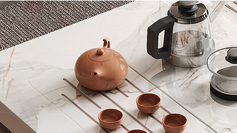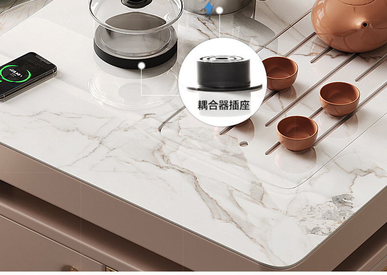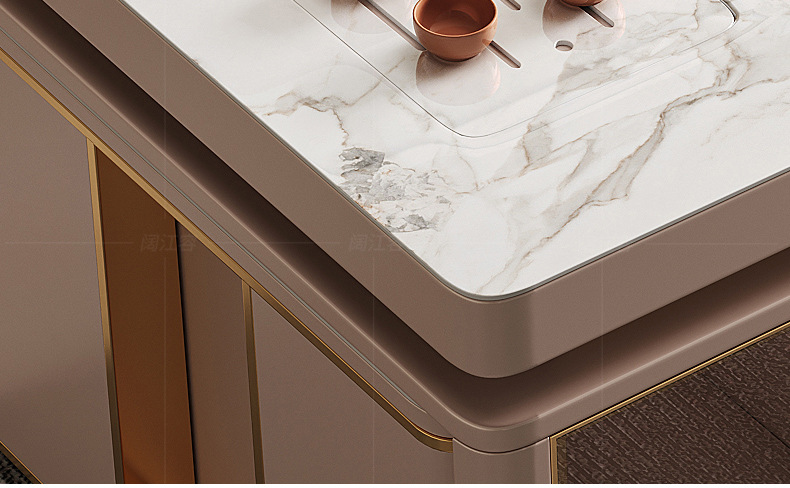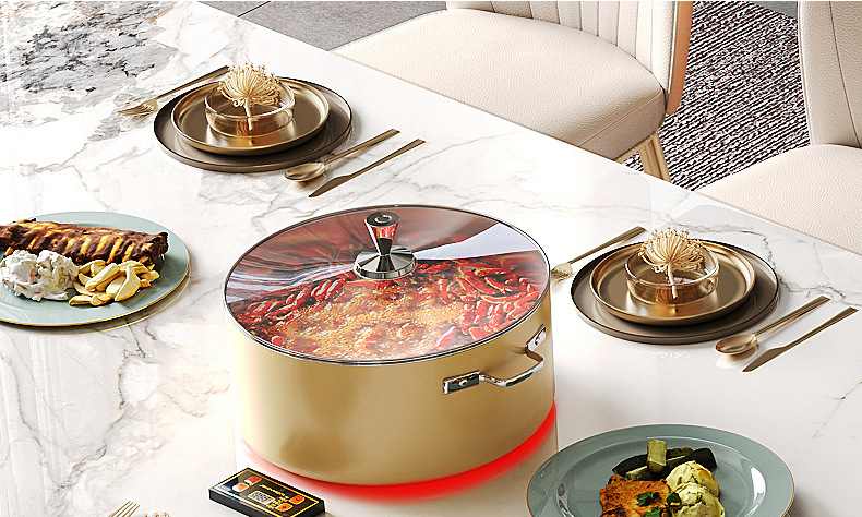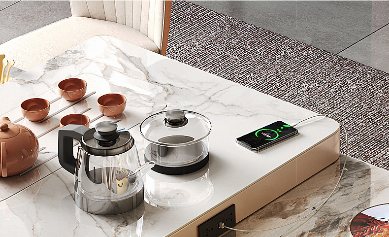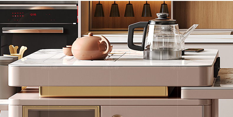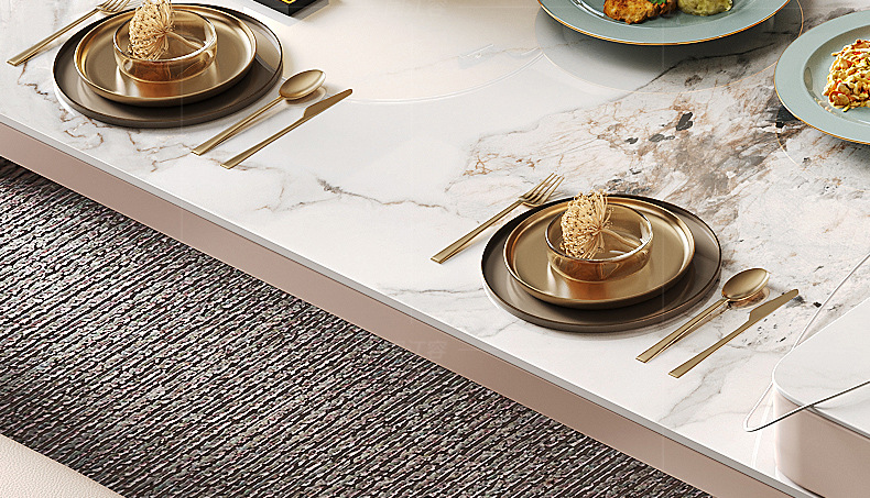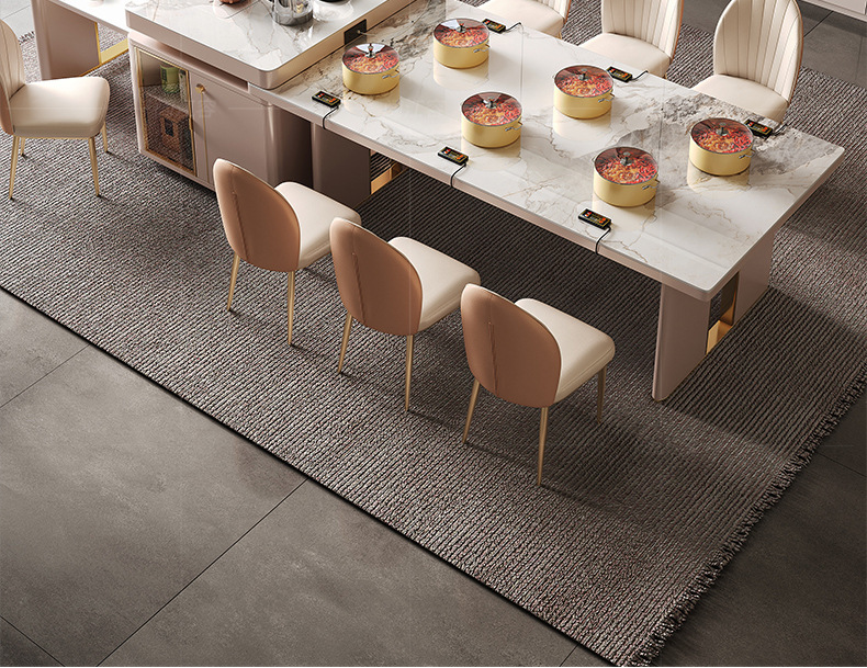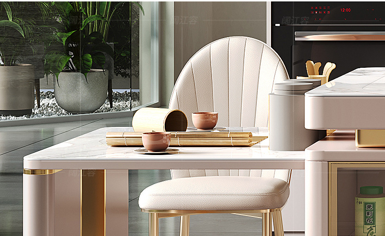 Mesa de comedor de mesa de mesa de isla integrada, losa de roca de lujo ligero, giratoria, retráctil, móvil, cocina de inducción doméstica moderna, combinación de mesa y silla de comedor