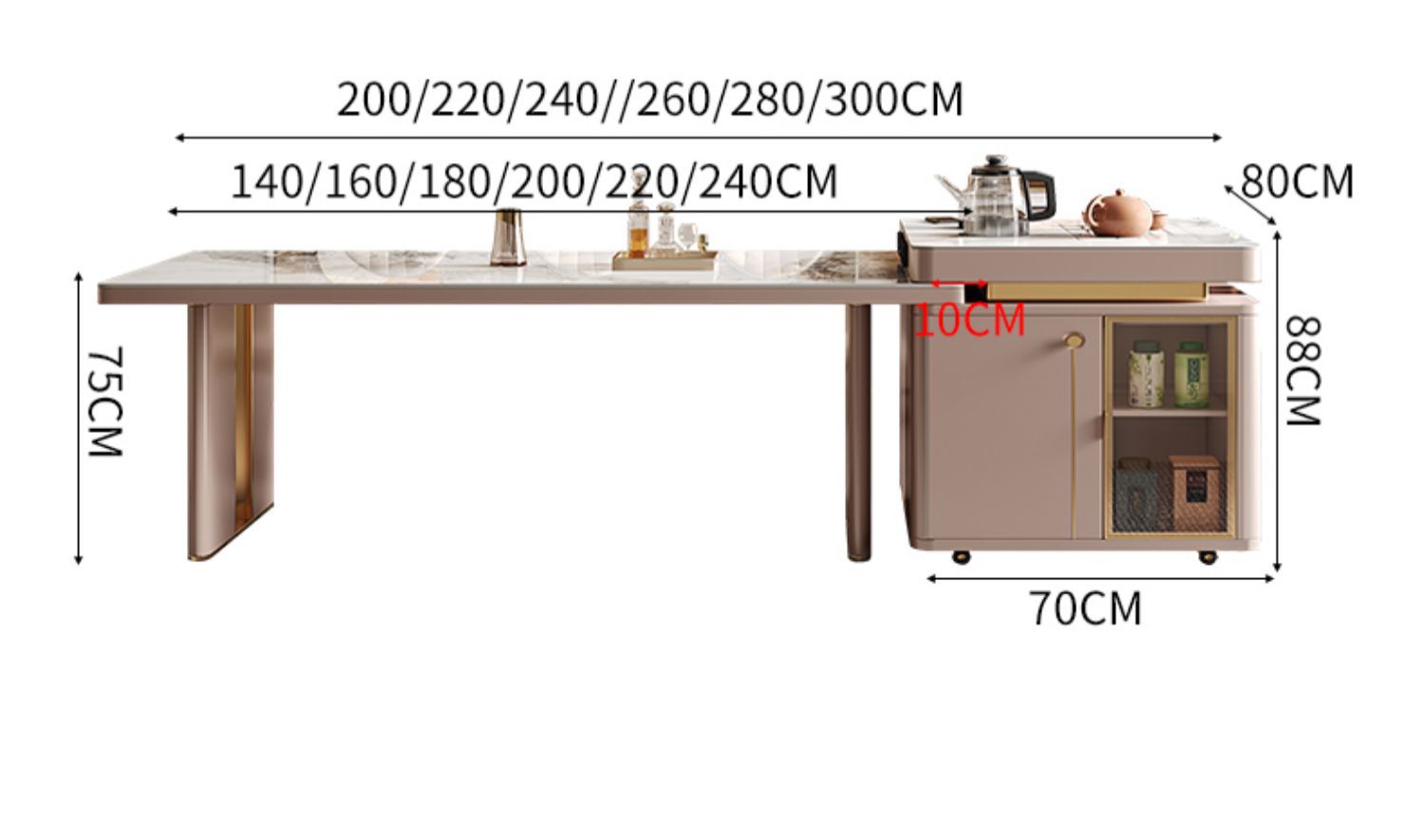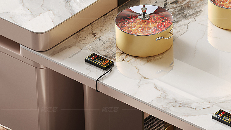 Isla de función de cocina de inducción oculta de mesa de comedor de 1,6 metros (longitud total de 2,8 metros)
