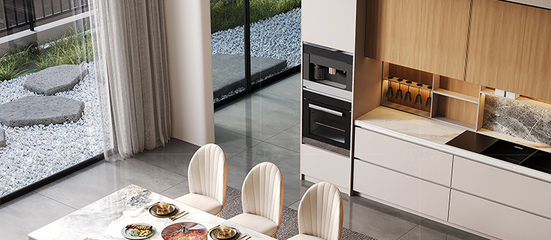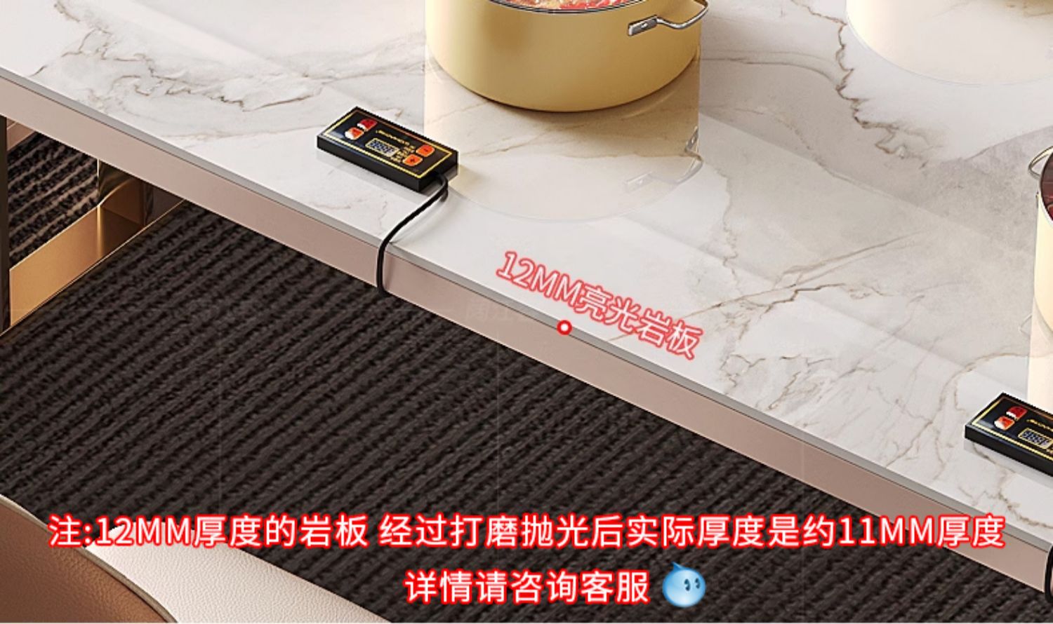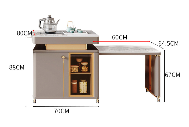 Mesa de comedor de 1,8 metros, isla de función de cocina de inducción oculta (longitud total 3 metros)