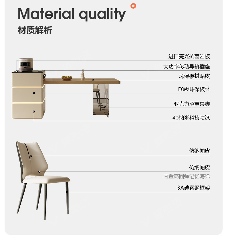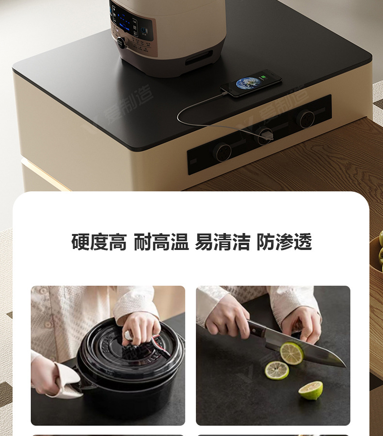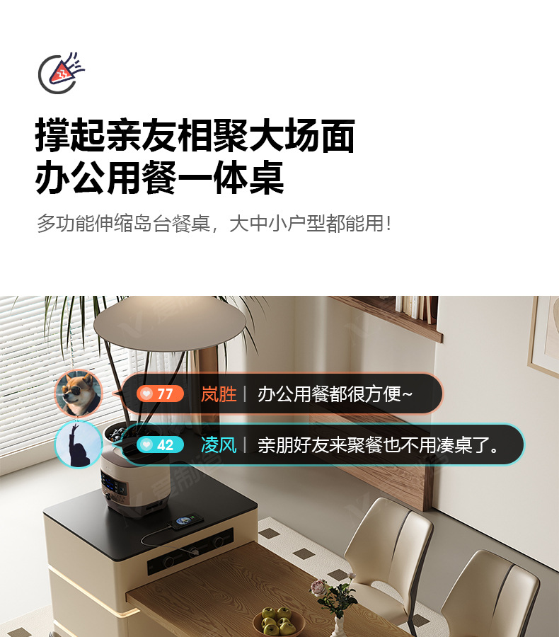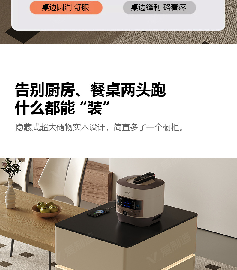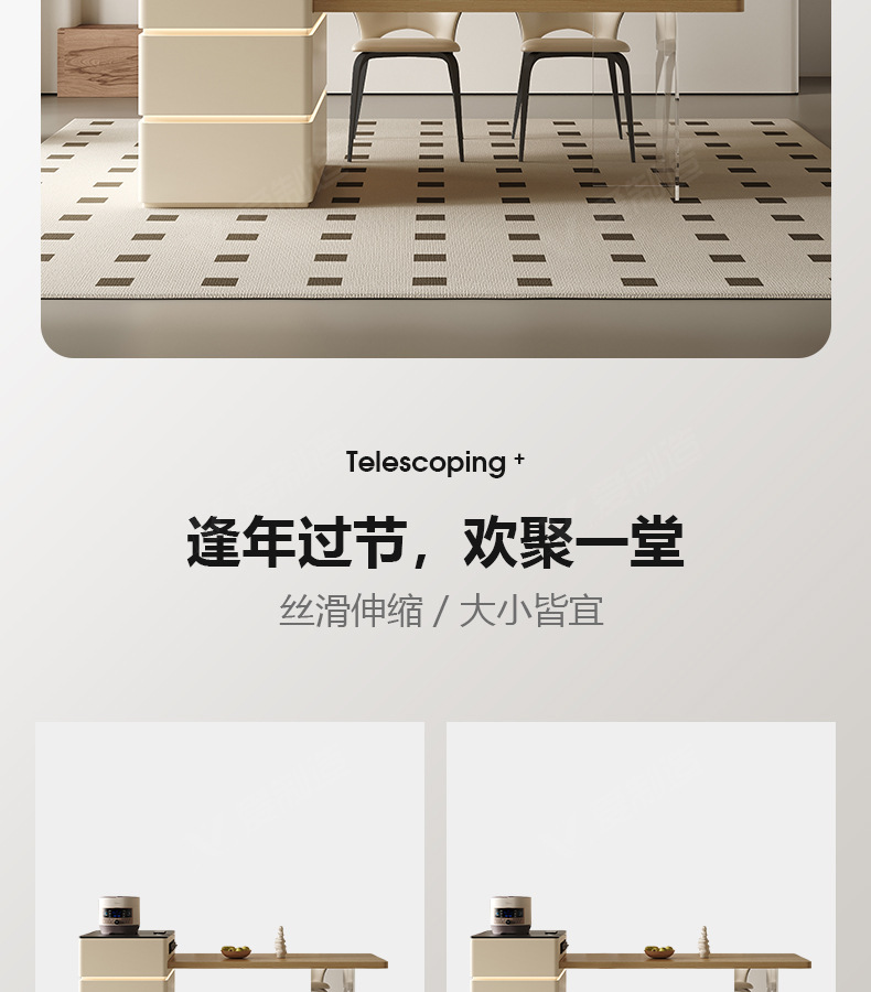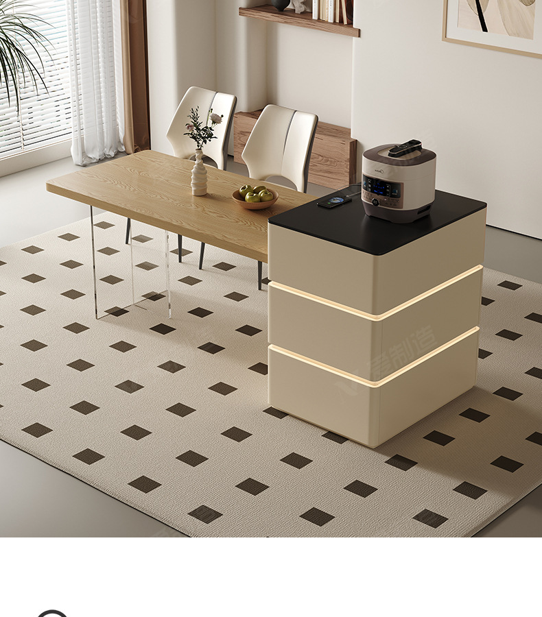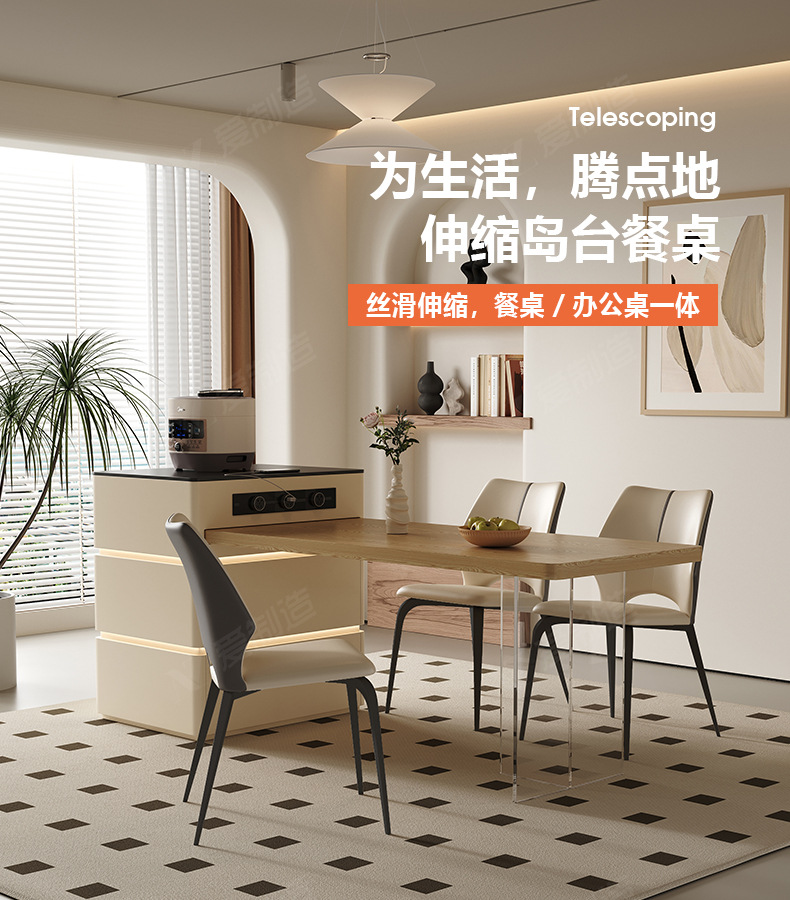 Mesa de mesa de isla de estilo crema medieval, cocina retráctil integrada, mesa de comedor y silla de tablero de roca de alta gama francesa para el hogar