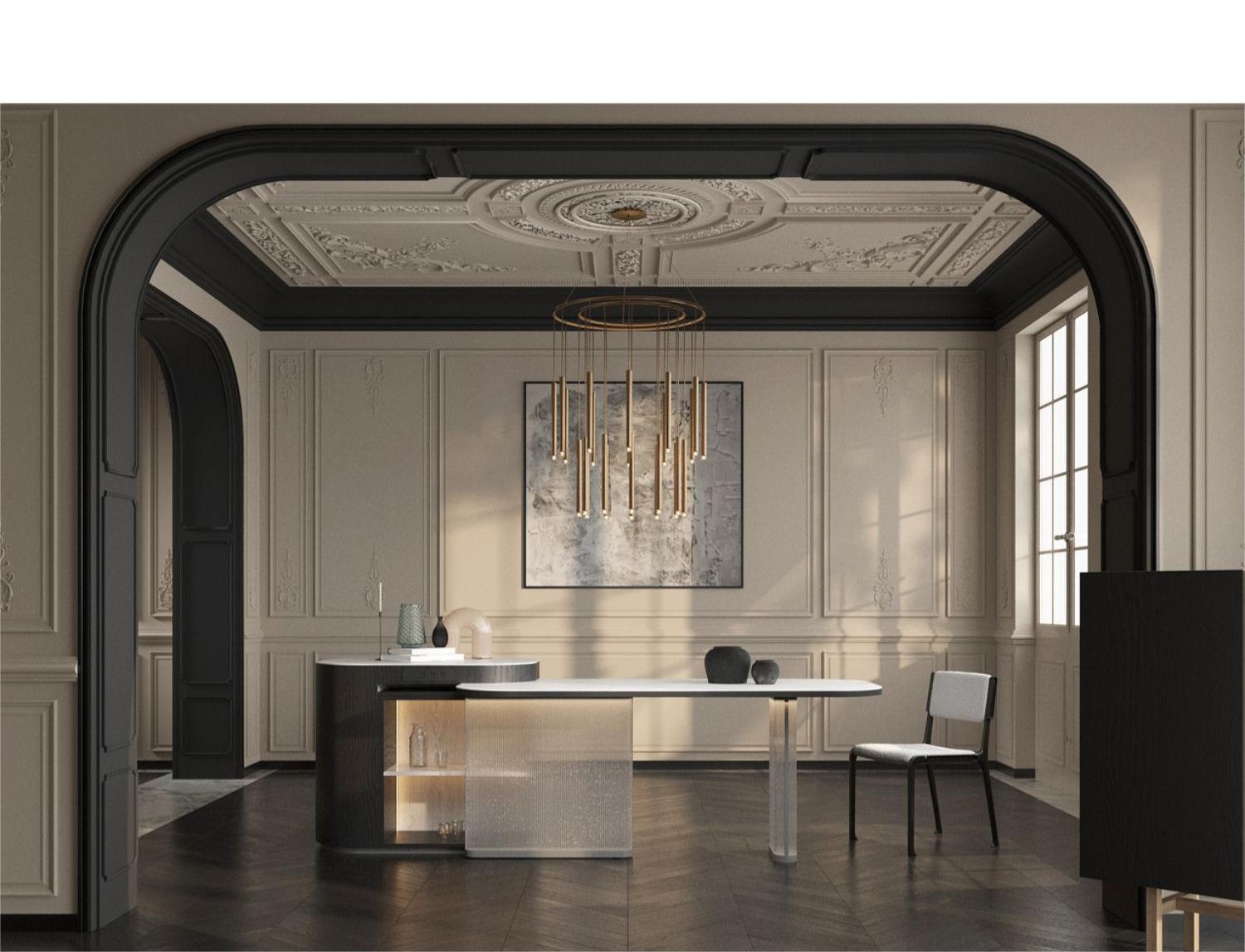 Mesa de estilo único de la isla de comidas Mesa de guía grande retráctil más mesa de comedor Hogar Restaurante francés medieval suspensión de alta gama caída