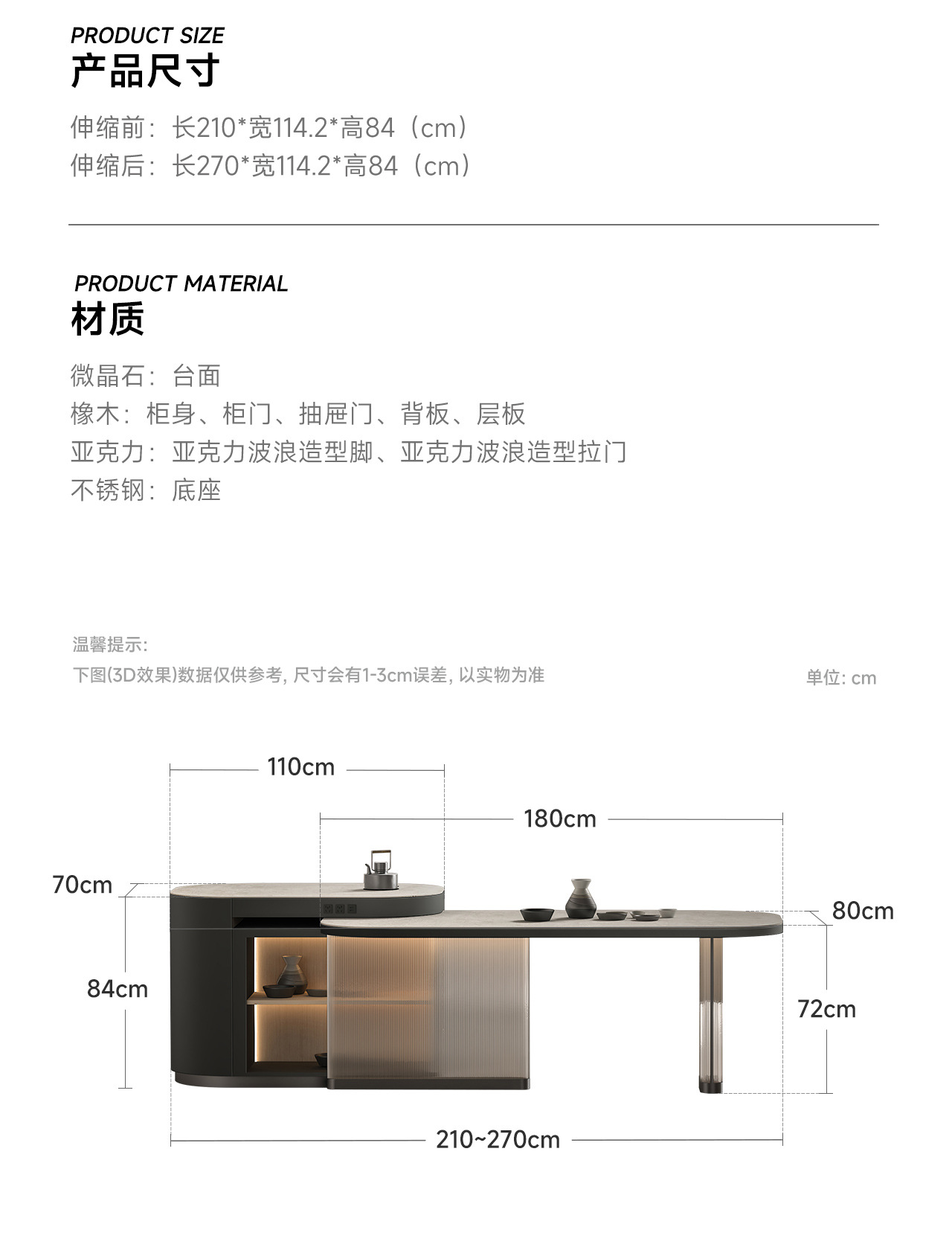 [Roble importado de piedra microcristalina] Isla retráctil