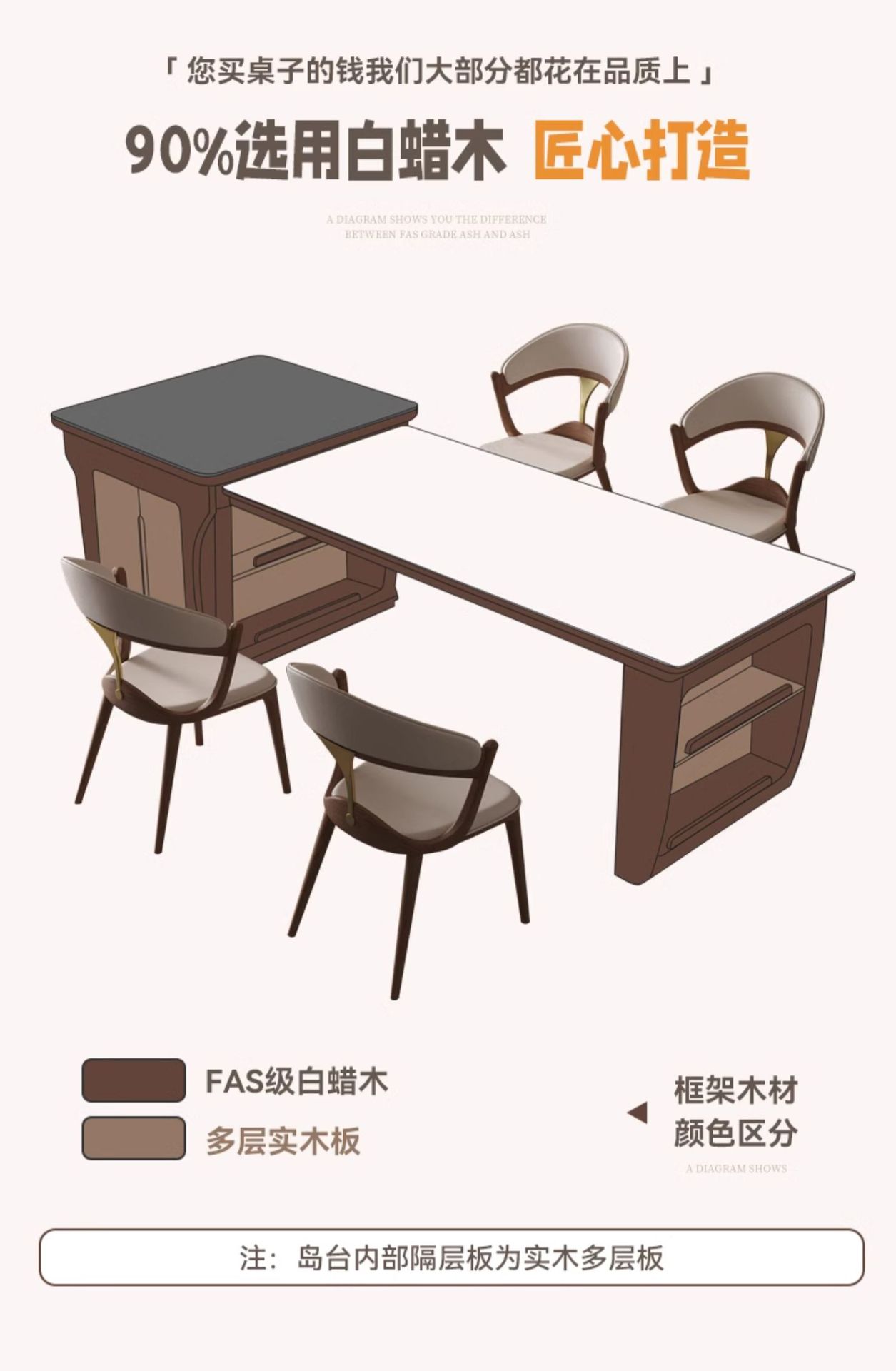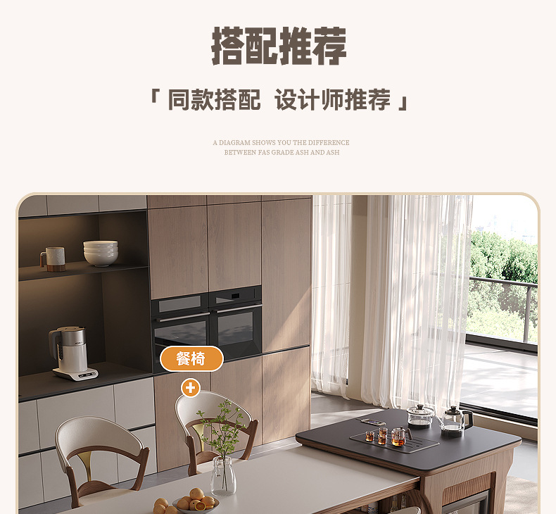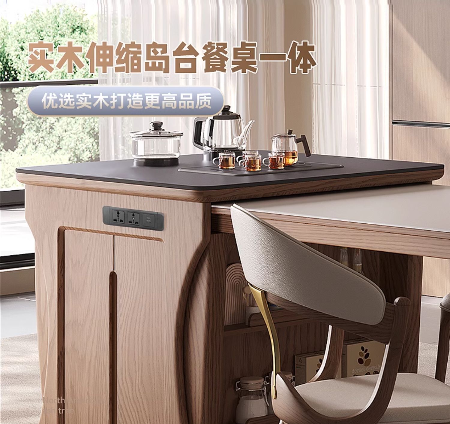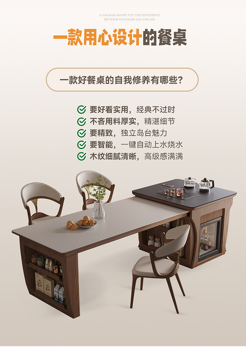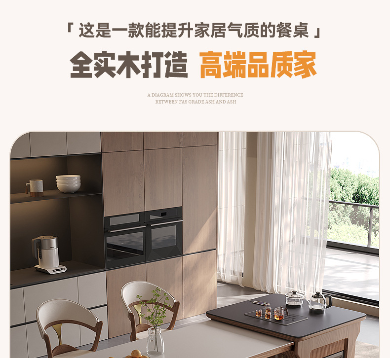 Mesa de mesa de isla de madera maciza mesa de comedor integrada para uso doméstico retráctil, plataforma de guía de alta gama moderna y simple