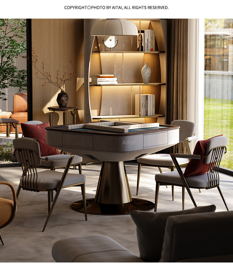 Mesa de mahjong de lujo ligero, villa de alta gama, nogal, mesa de mahjong eléctrica automática, máquina de mahjong de madera maciza multifuncional para el hogar