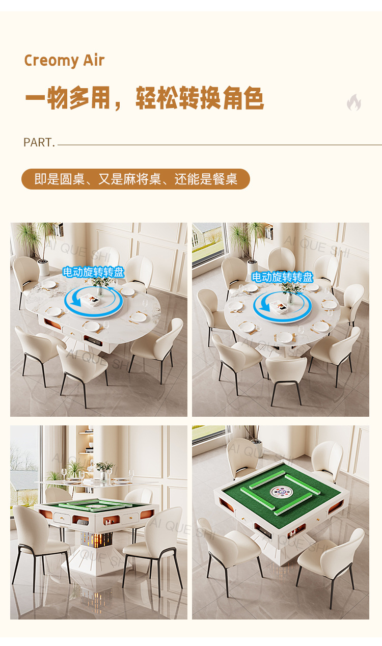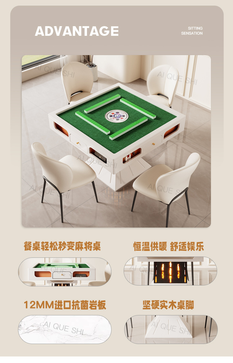Mesa de mahjong de placa de roca completamente automática, mesa de comedor, hogar integrado, multifuncional, moderno, simple y silencioso, plato giratorio eléctrico con fuego