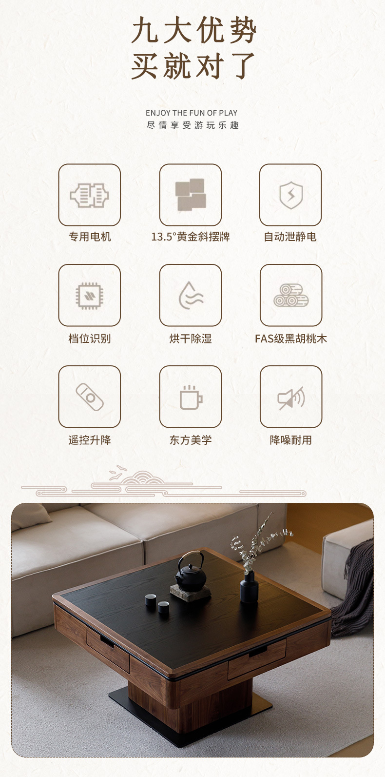 Mesa de centro de elevación multifuncional, mesa de mahjong, máquina de mahjong de madera maciza automática integrada, mesa de comedor, madera de nogal negro de América del Norte de doble uso