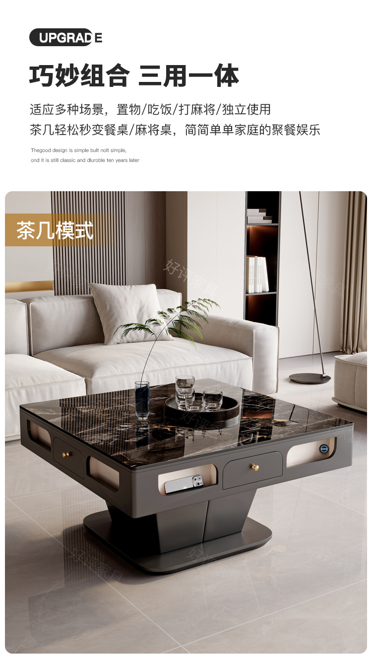 Mesa de mahjong elevadora, sala de estar multifuncional automática, hogar con cocina de inducción, mesa de centro de placa de roca, mesa de comedor de máquina de mahjong integrada