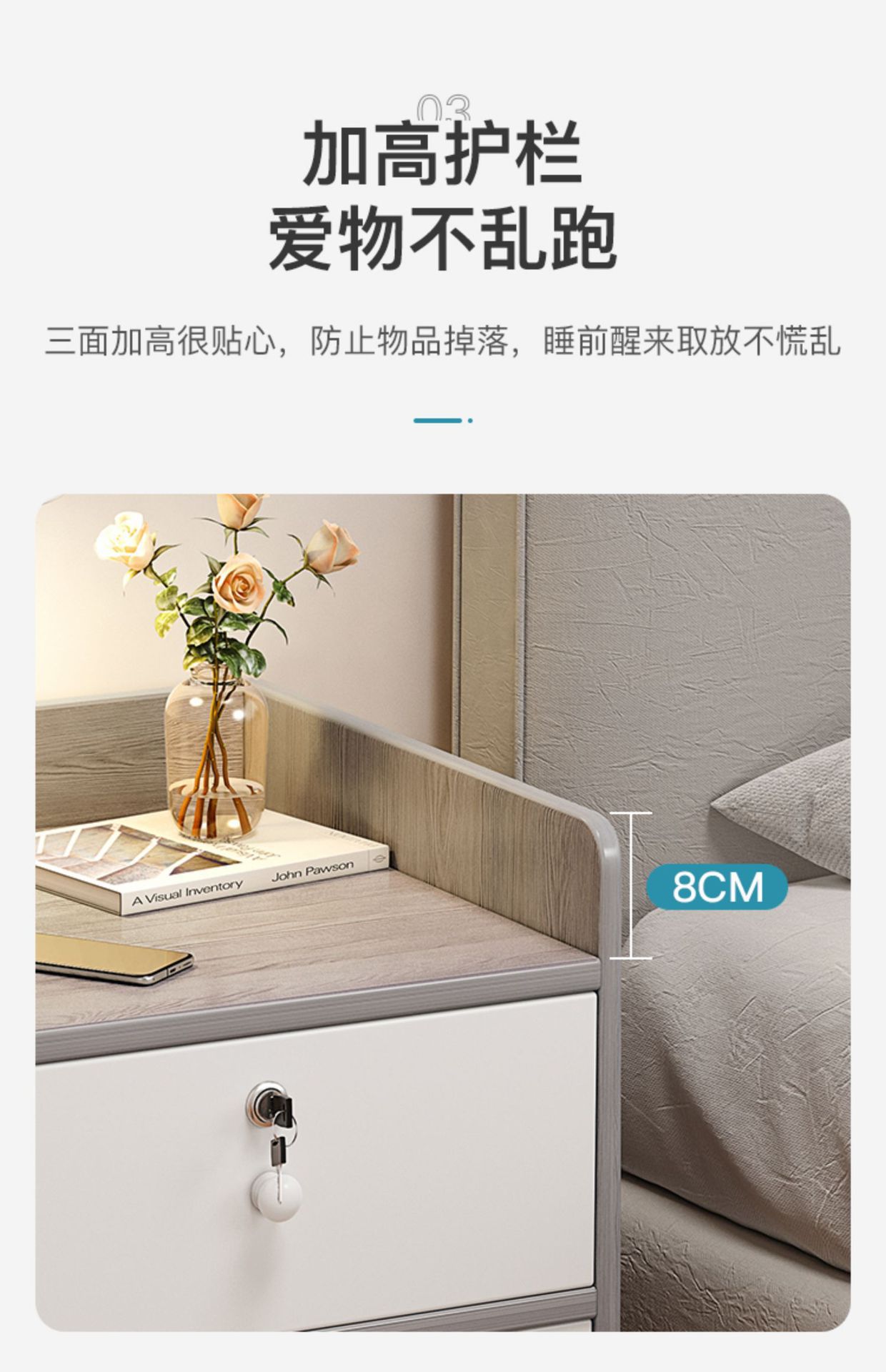 Mesita de noche, lujo ligero, sensación de alta gama, dormitorio minimalista moderno, pequeño armario junto a la cama, almacenamiento, doble bomba, mesita de noche con cerradura