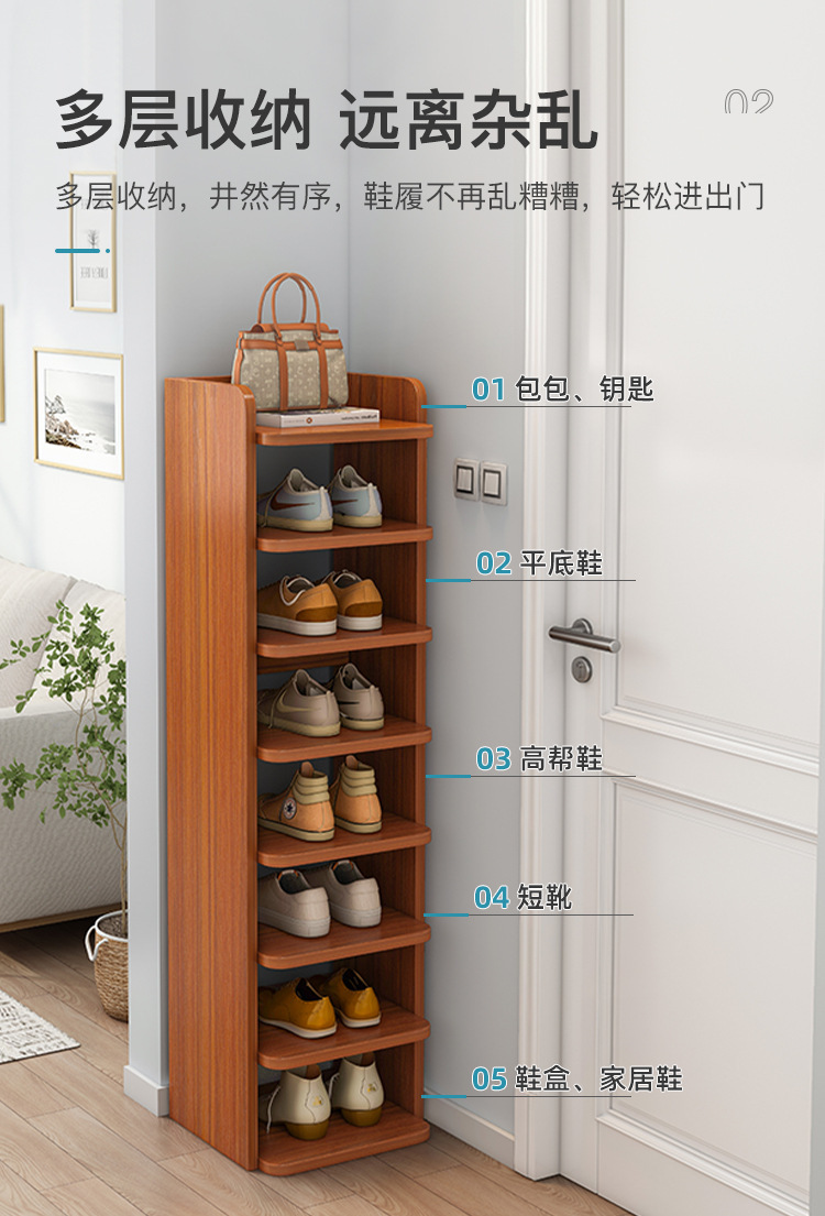 Zapatero simple, partición en capas en la puerta del hogar, fuerte y estable, artefacto de almacenamiento de múltiples capas simple, zapatero tridimensional largo y estrecho