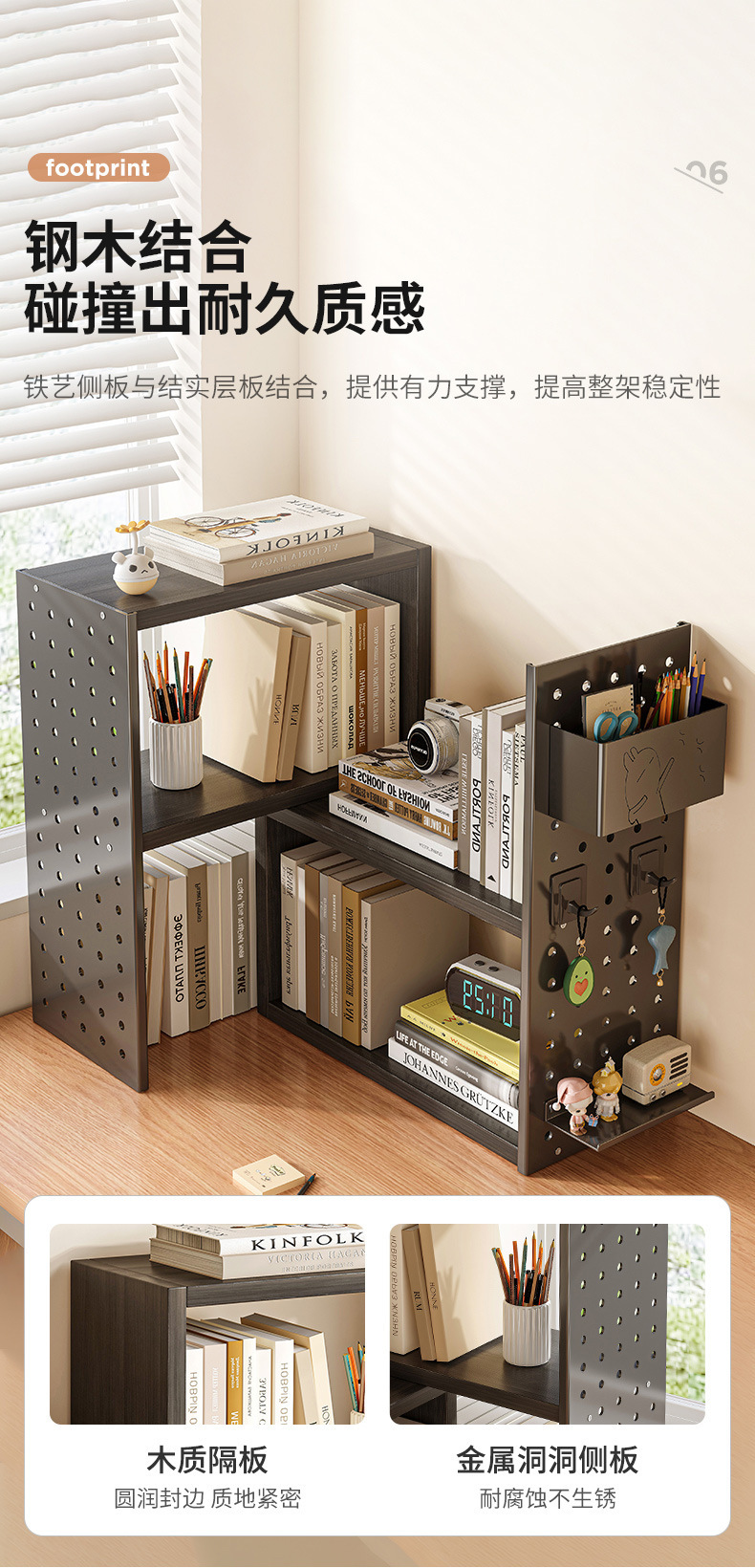 Estantería de escritorio Estante retráctil Tablero de agujero vertical Estante de almacenamiento de escritorio Estante dividido simple para el hogar de los estudiantes