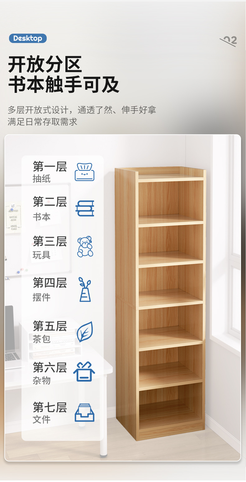 Estante de estantería de piso a techo Sala de estar doméstica de varios pisos Almacenamiento y almacenamiento Gabinete estrecho Estantería para niños Estantería de dormitorio Estantería contra la pared