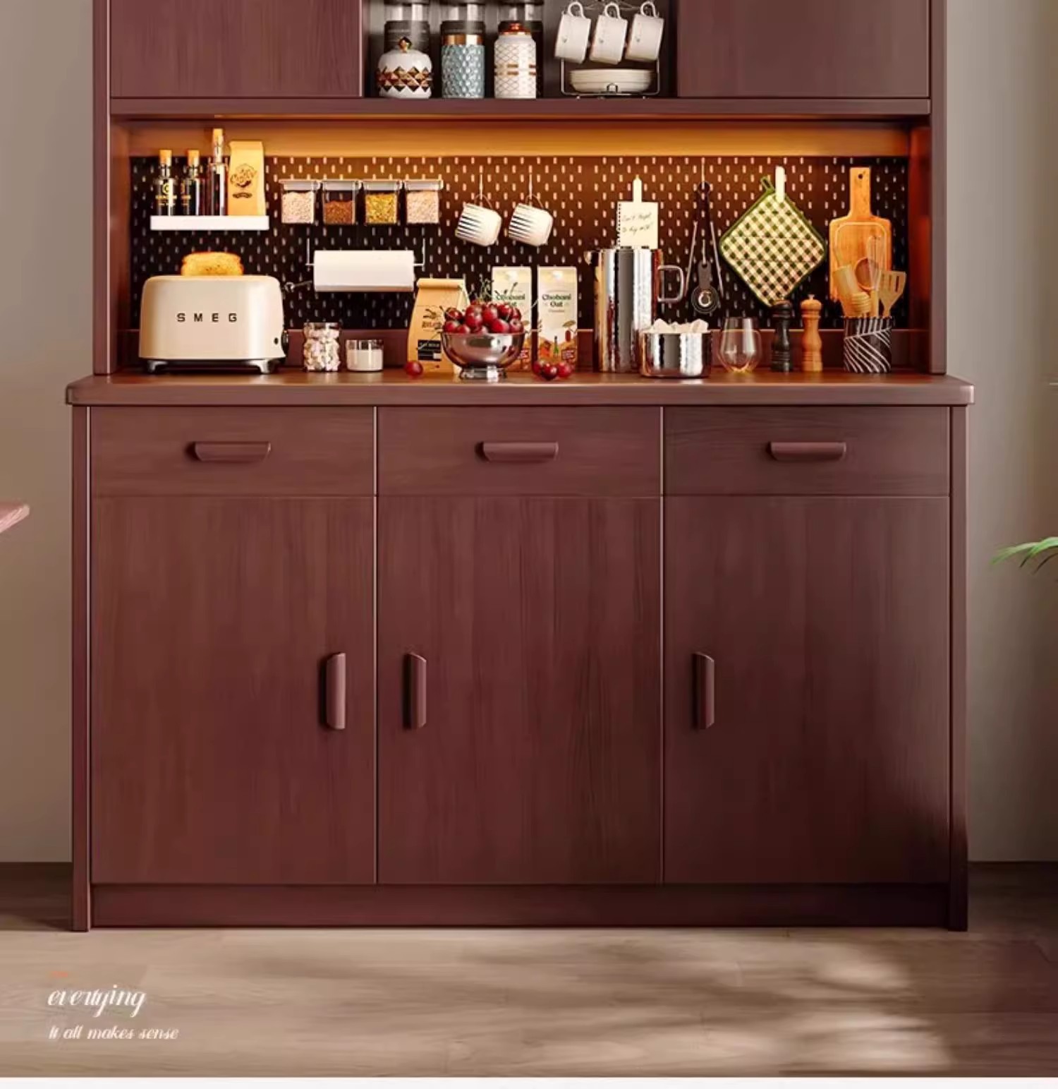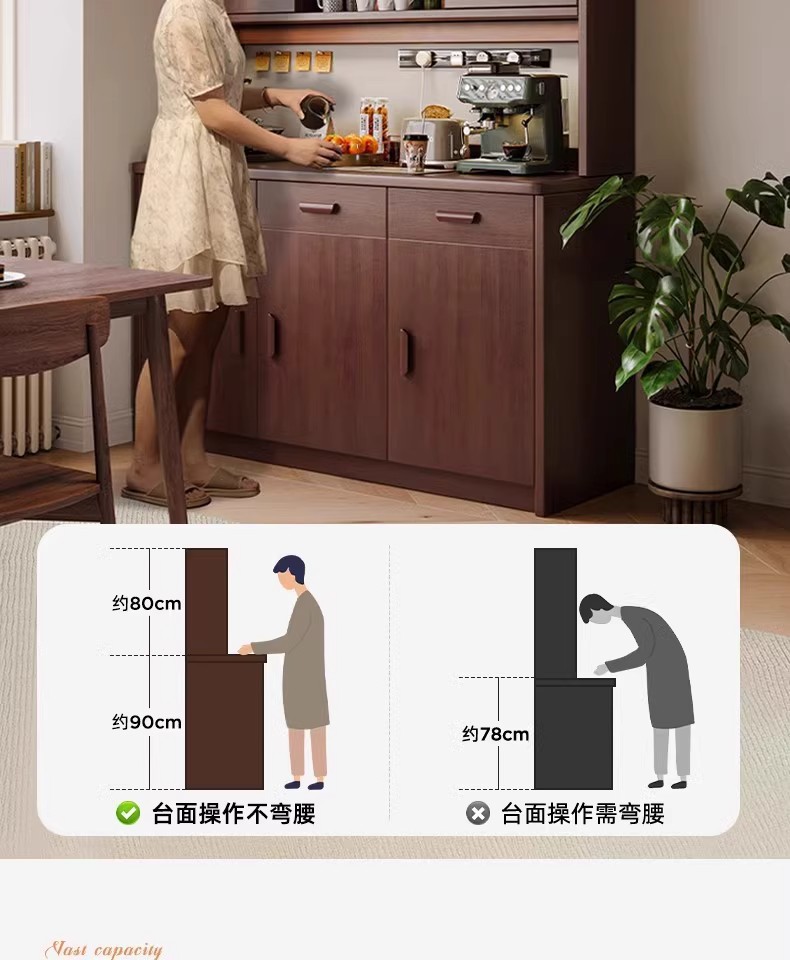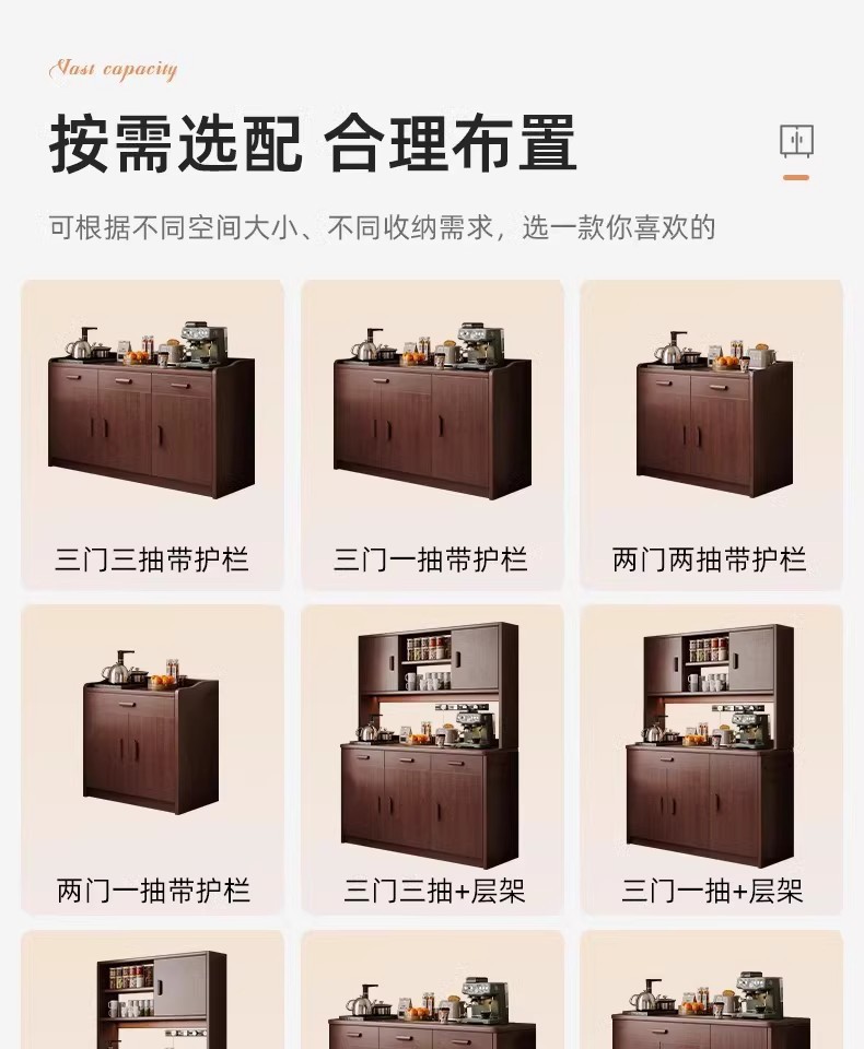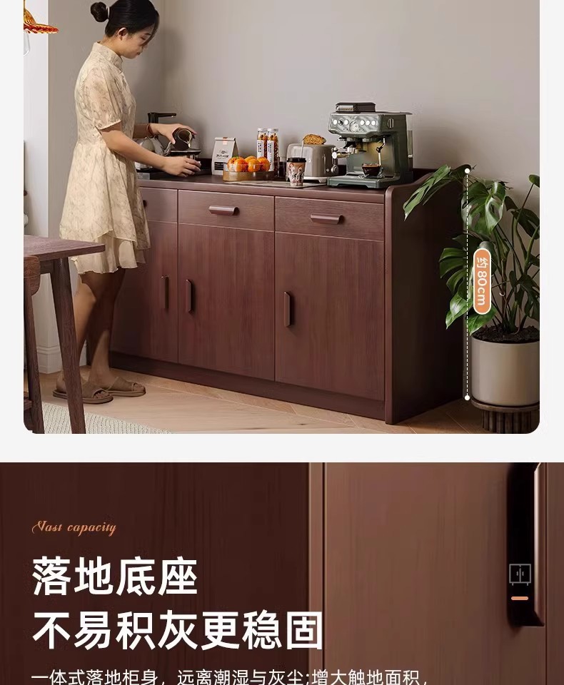 Gabinete lateral de madera maciza contra la pared Gabinete de vino integrado Gabinete de té Gabinete de cocina Gabinete de almacenamiento de sala de estar Gabinete de almacenamiento Gabinete de almacenamiento
