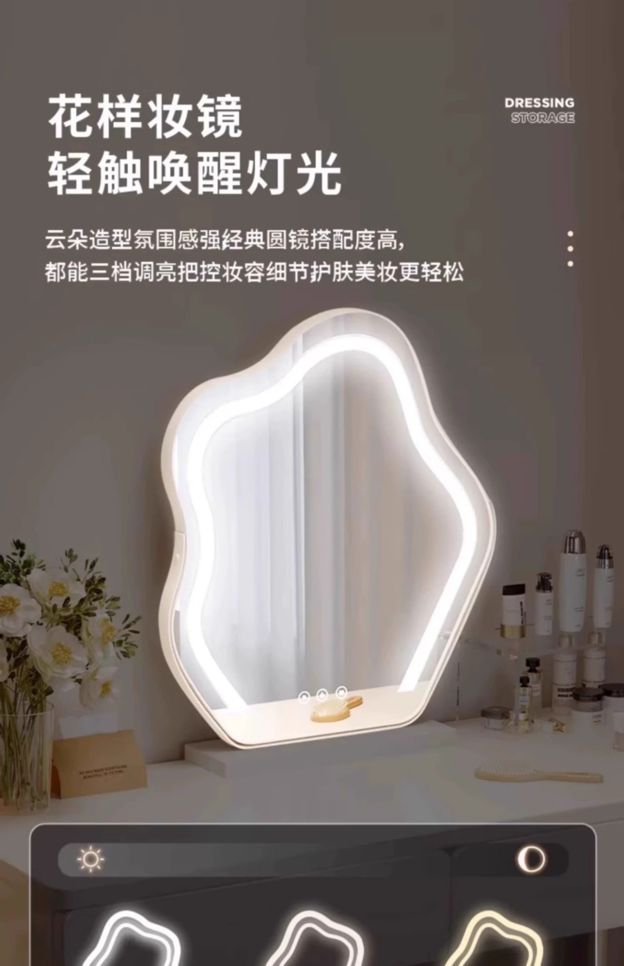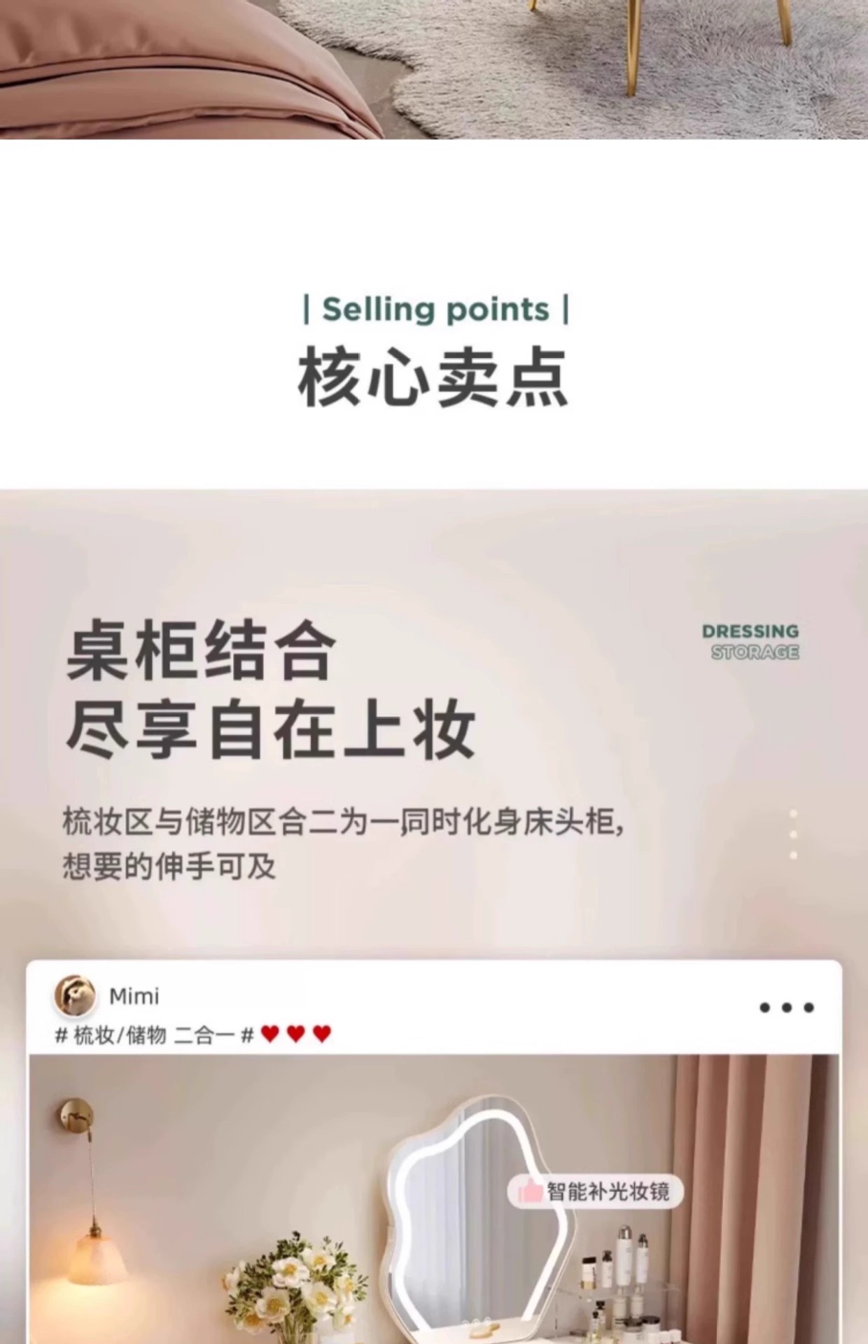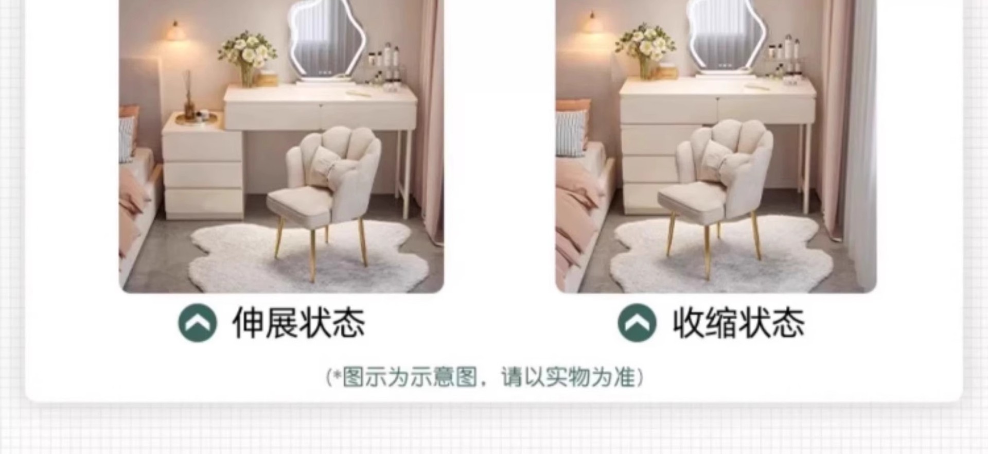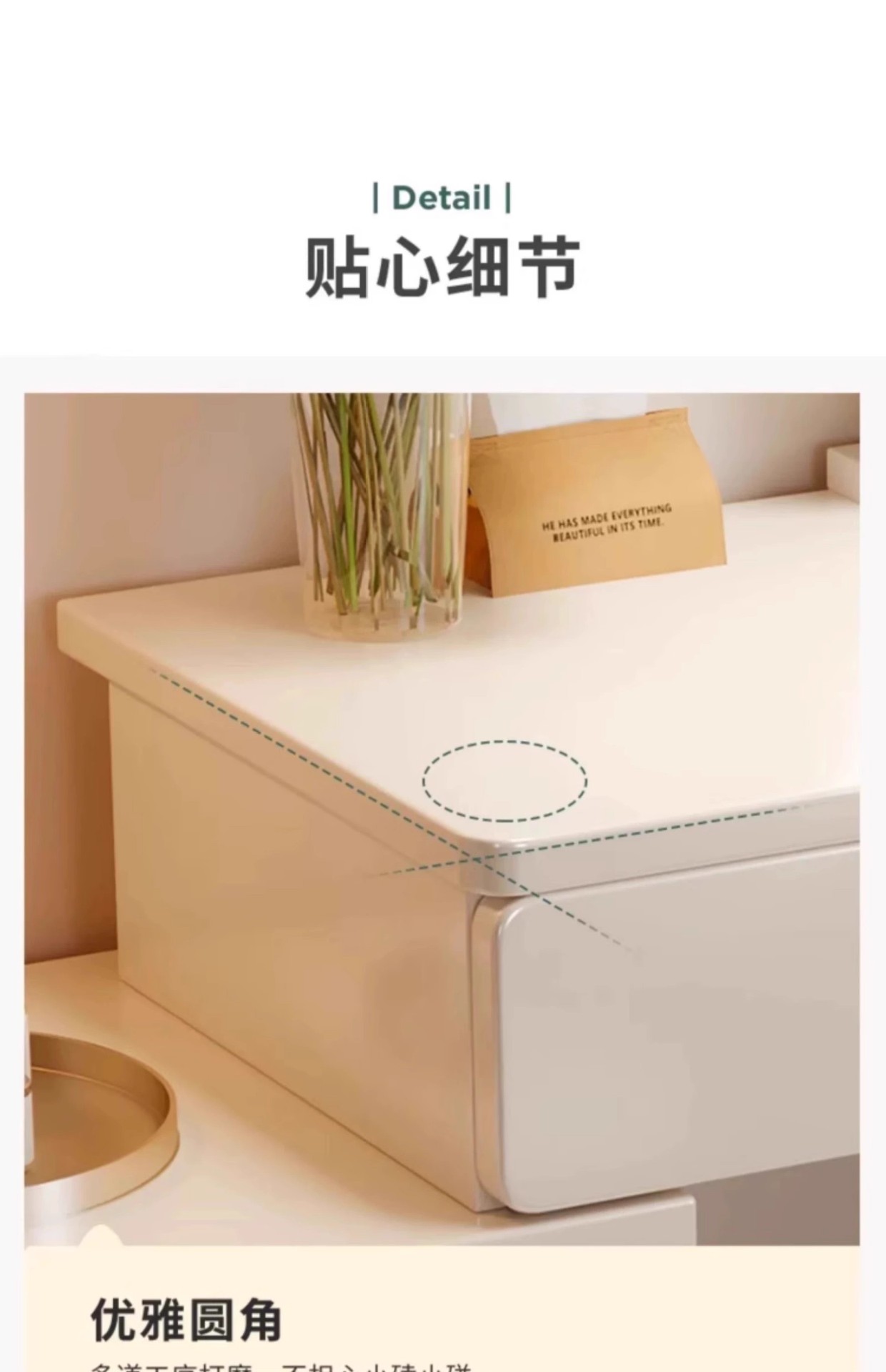 Tocador de estilo crema de madera maciza, gabinete integrado, mesa de maquillaje, dormitorio de apartamento pequeño, tocador minimalista moderno, lujo ligero de alta gama