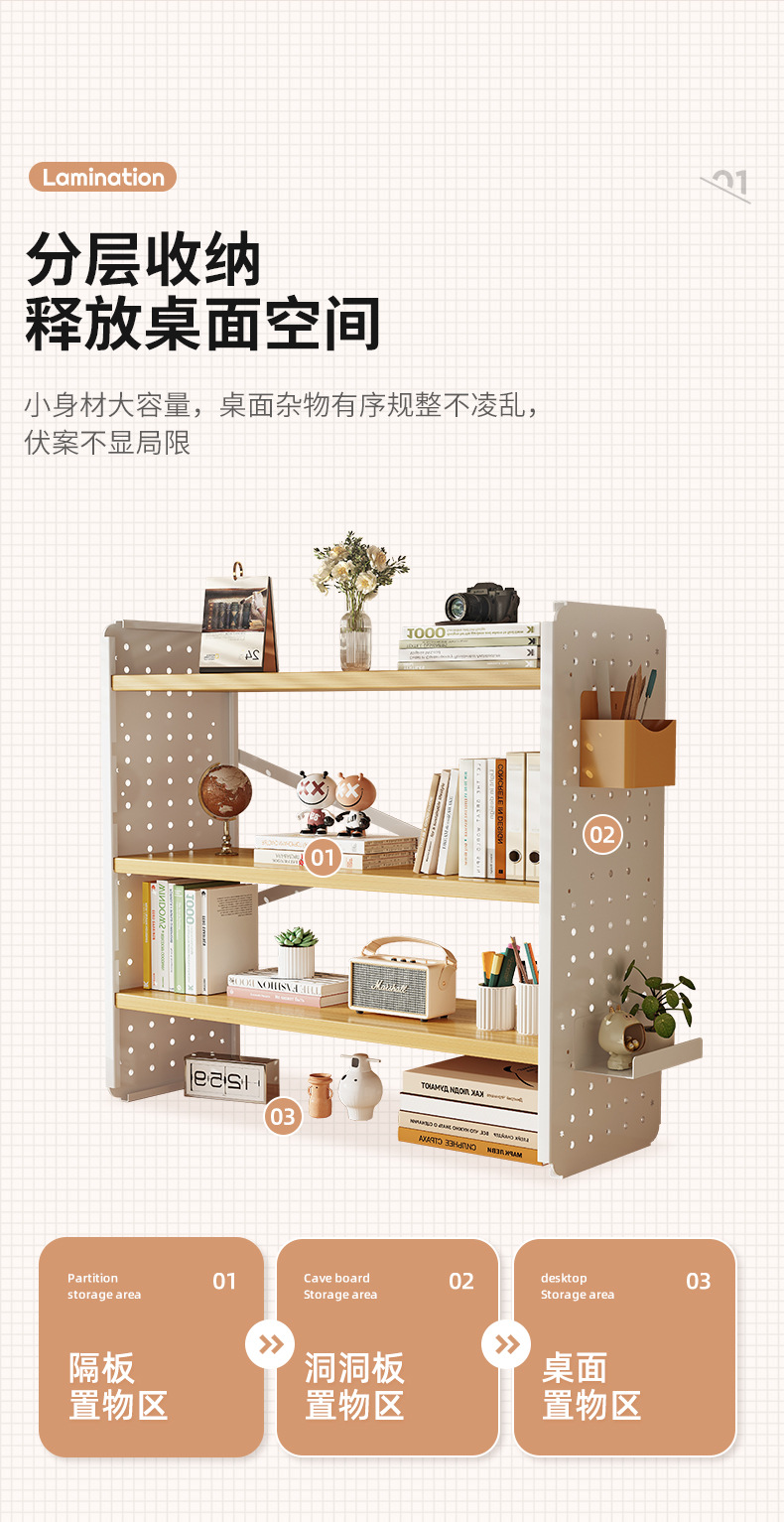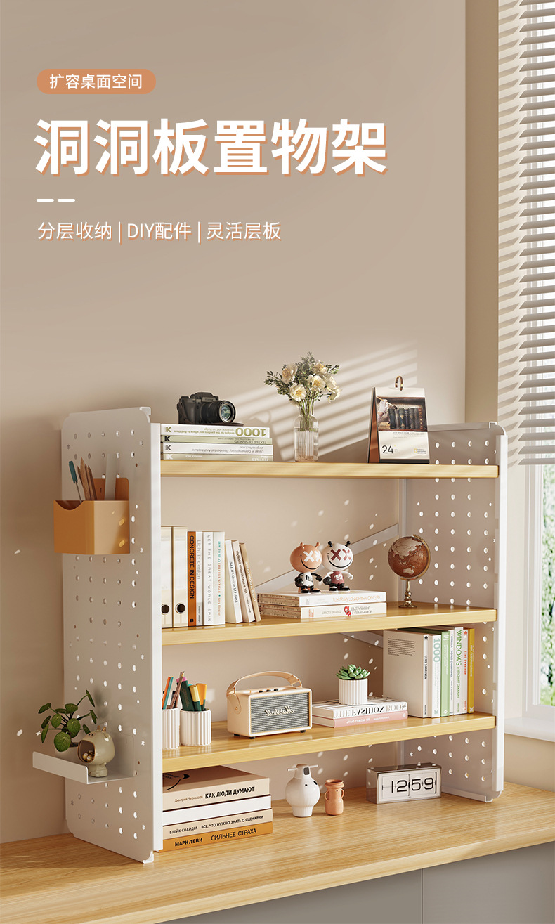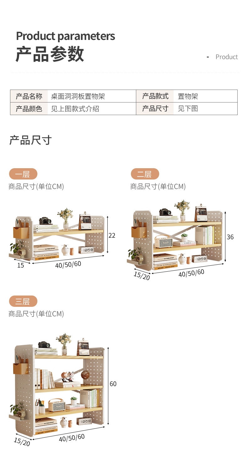 Estante de escritorio Estante de escritorio Estante de escritorio Tablero de agujero Escritorio de aprendizaje para el hogar Estante de exhibición de almacenamiento de estación de oficina multicapa