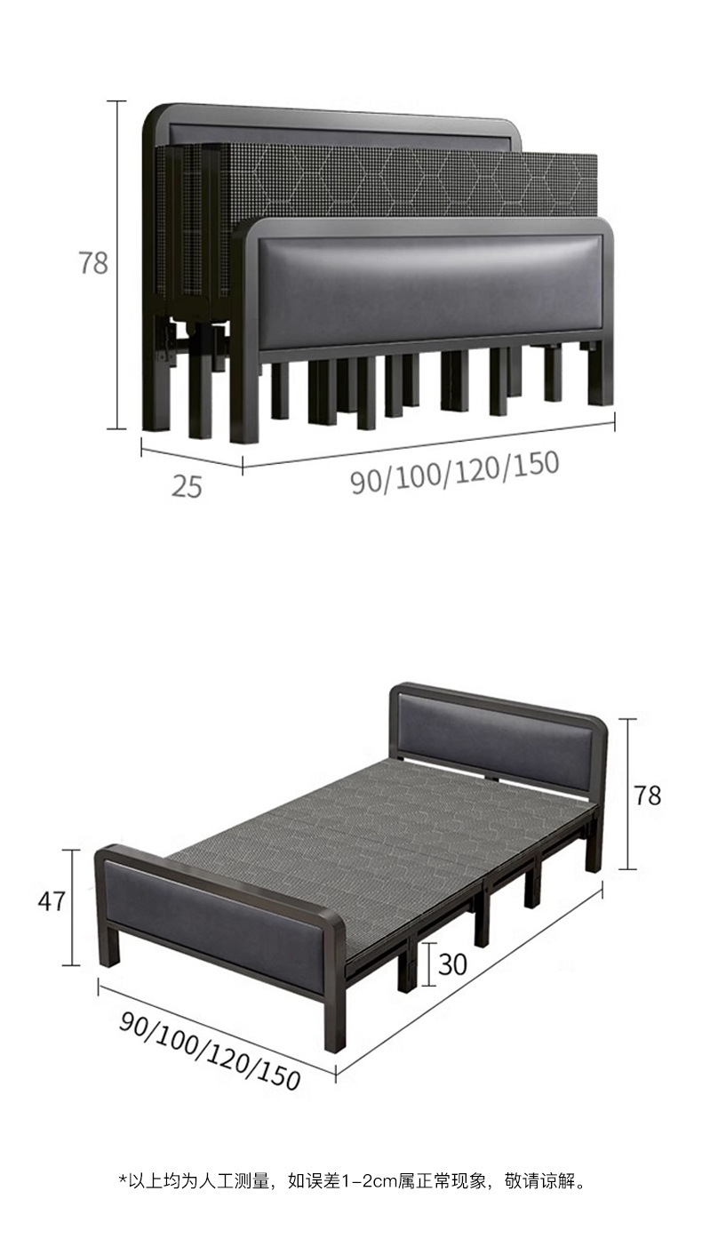 Cama plegable Casa individual Cama simple Dormitorio Almuerzo Cama pequeña Oficina Siesta artefacto Casa de alquiler Cama de hierro para adultos