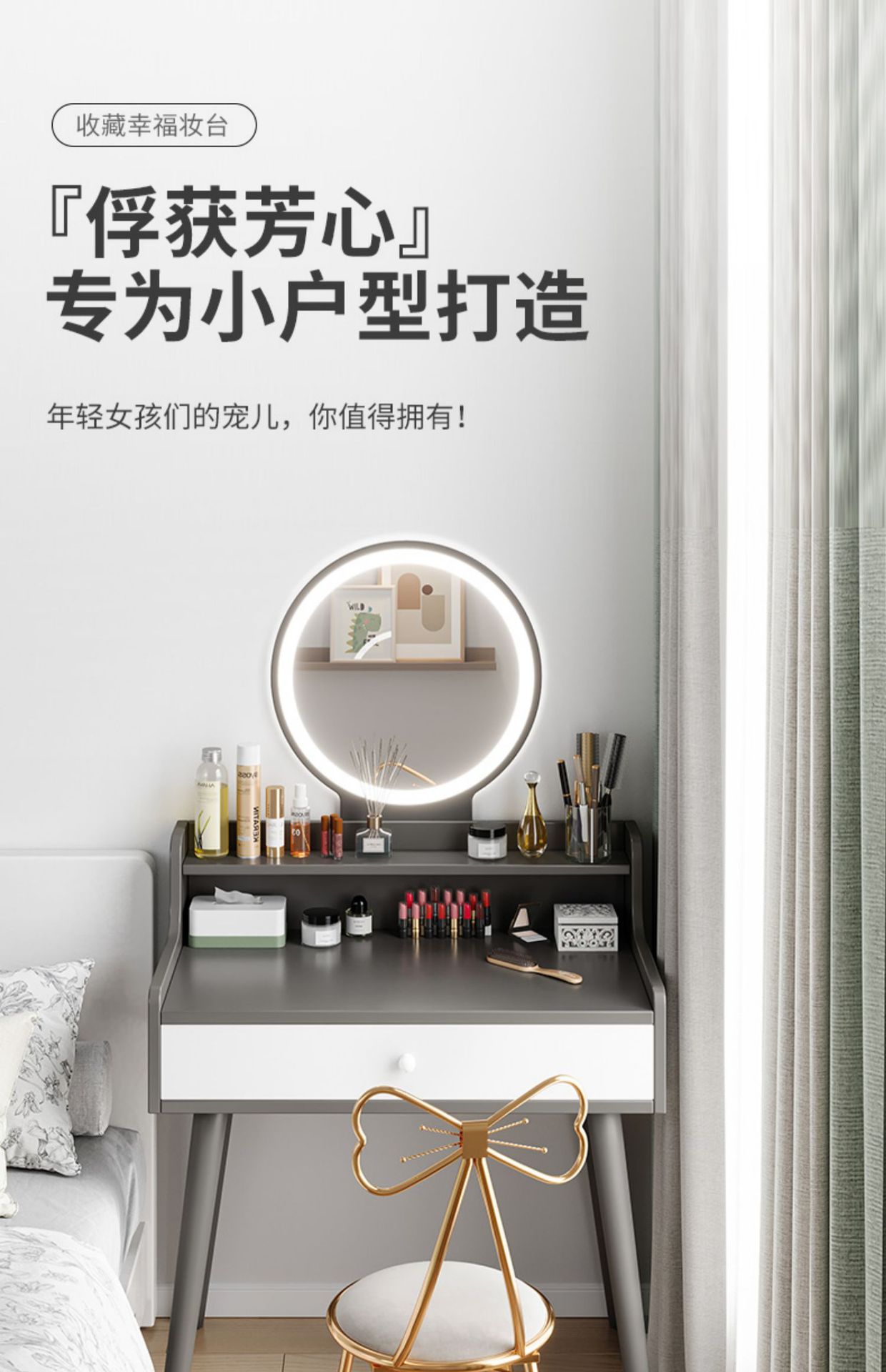 Red simple, tocador pequeño, tocador pequeño, dormitorio, mini mesa de maquillaje para apartamentos pequeños modernos y sencillos