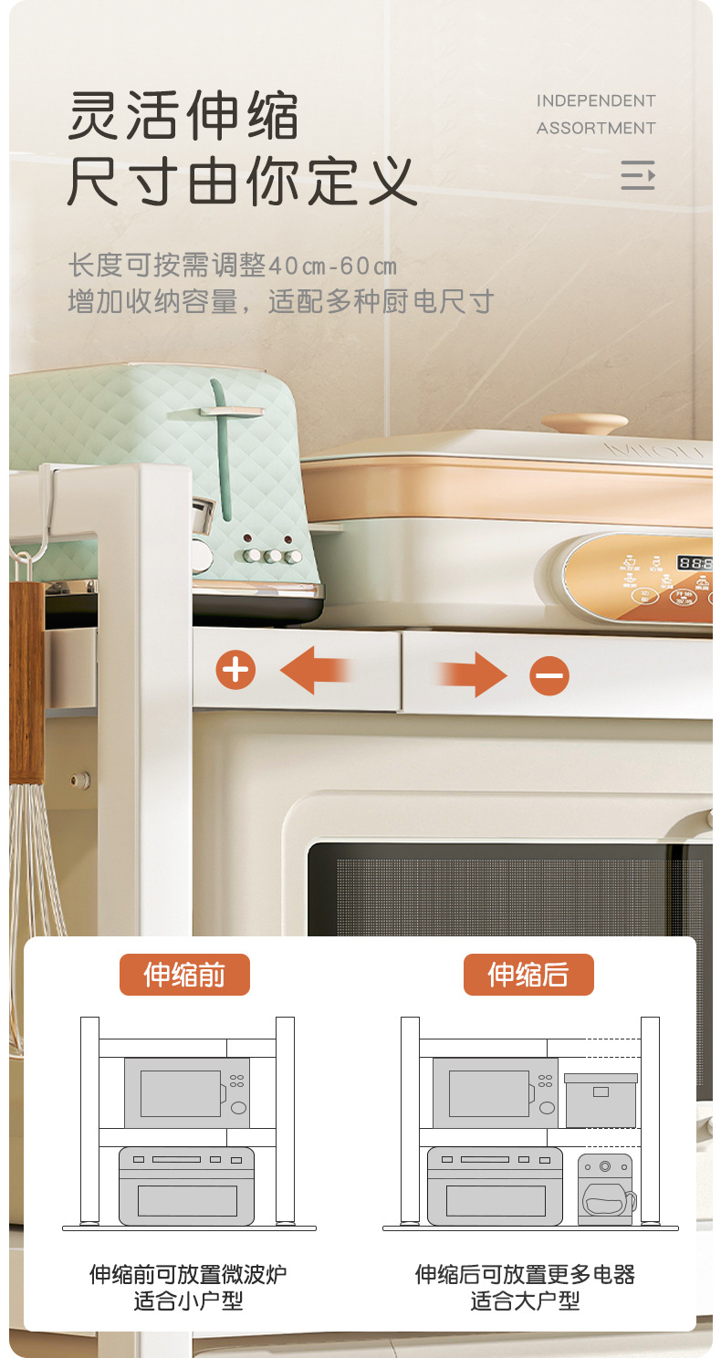Encimera para el hogar, soporte para olla arrocera, estante para horno microondas multifuncional de cocina retráctil, estante para almacenamiento para horno
