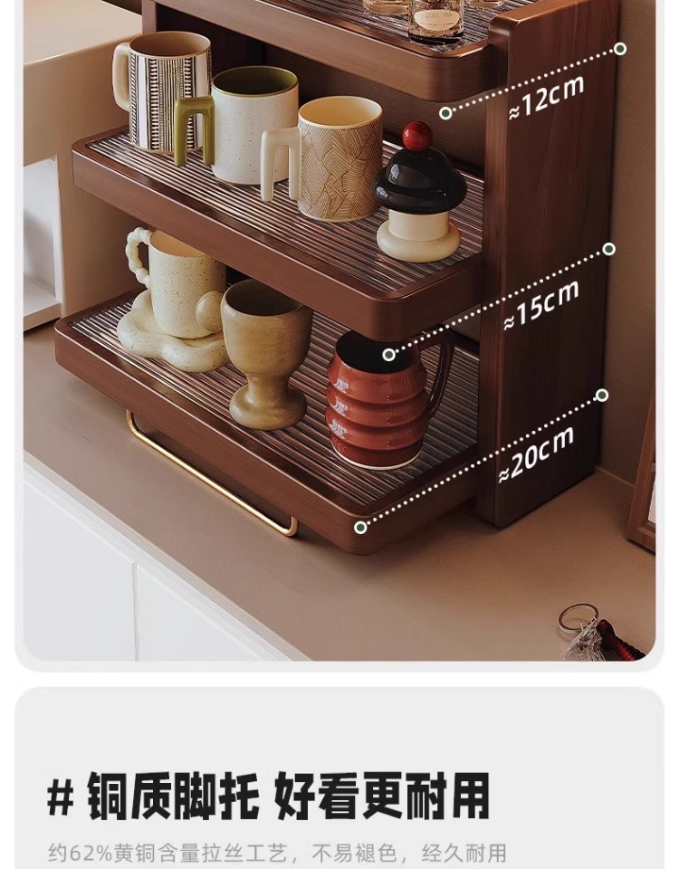 Soporte de almacenamiento de nogal negro Soporte para tazas de madera maciza Soporte para tazas de agua de escritorio Máquina de café Soporte para almacenamiento de tazas Gabinete de exhibición