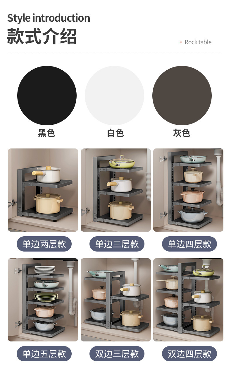 Estante de cocina Estante de almacenamiento de utensilios de cocina Estante de olla multifuncional de piso para el hogar Estante de olla en capas del gabinete del fregadero