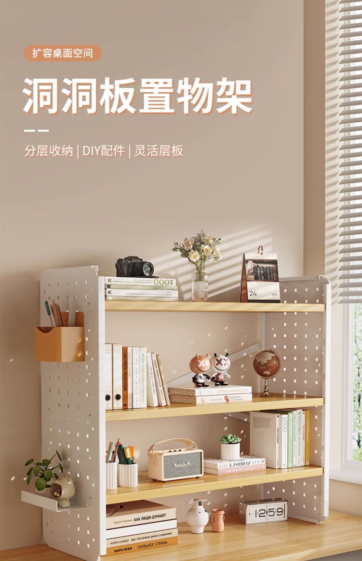 Estante de escritorio Estante de escritorio Estante de escritorio Tablero de agujero Escritorio de aprendizaje para el hogar Estante de exhibición de almacenamiento de estación de oficina multicapa