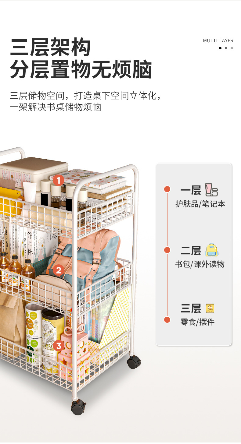 Estante debajo del escritorio Estantería pequeña junto al escritorio Estantería de piso con ruedas extraíbles Estantería de dormitorio de estudiantes