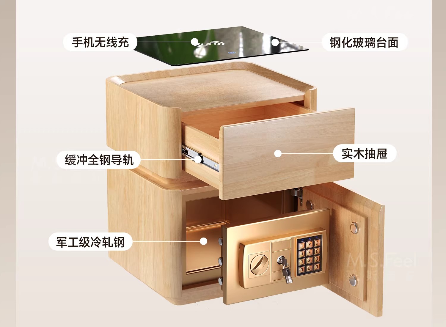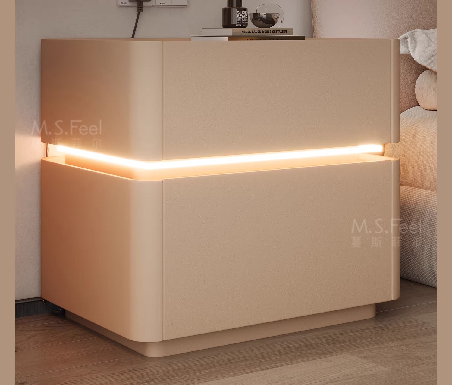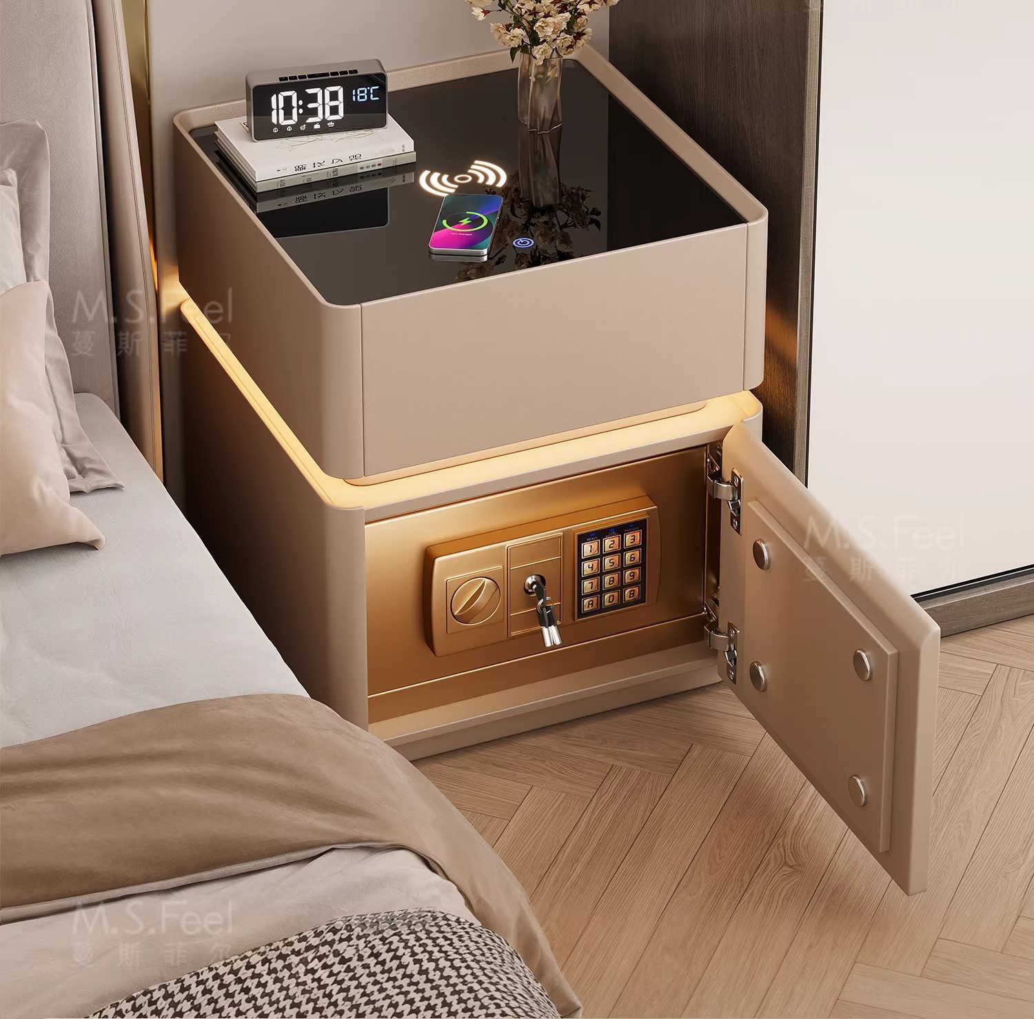 Mesita de noche inteligente caja fuerte todo en uno lujo ligero sensación de alta gama Dormitorio doméstico 2024 nueva caja fuerte multifuncional pequeña