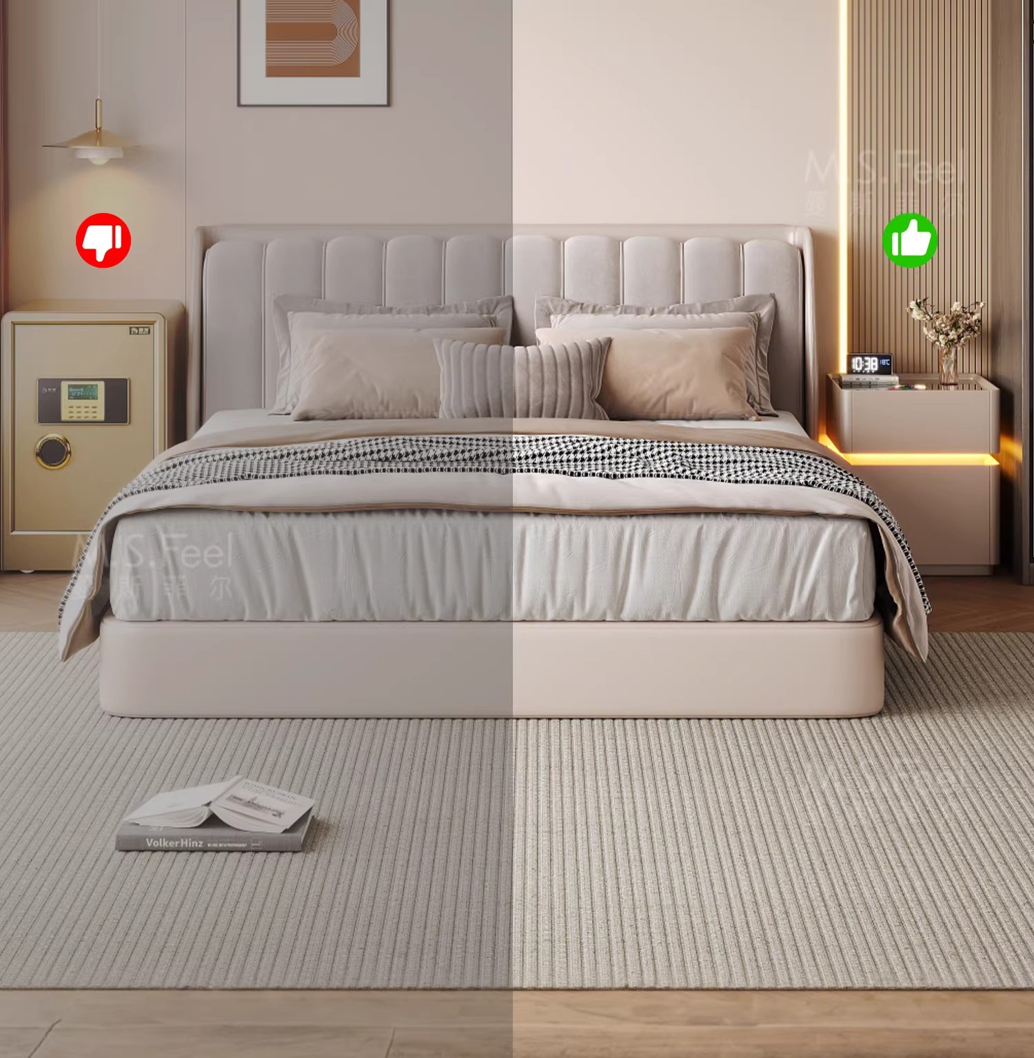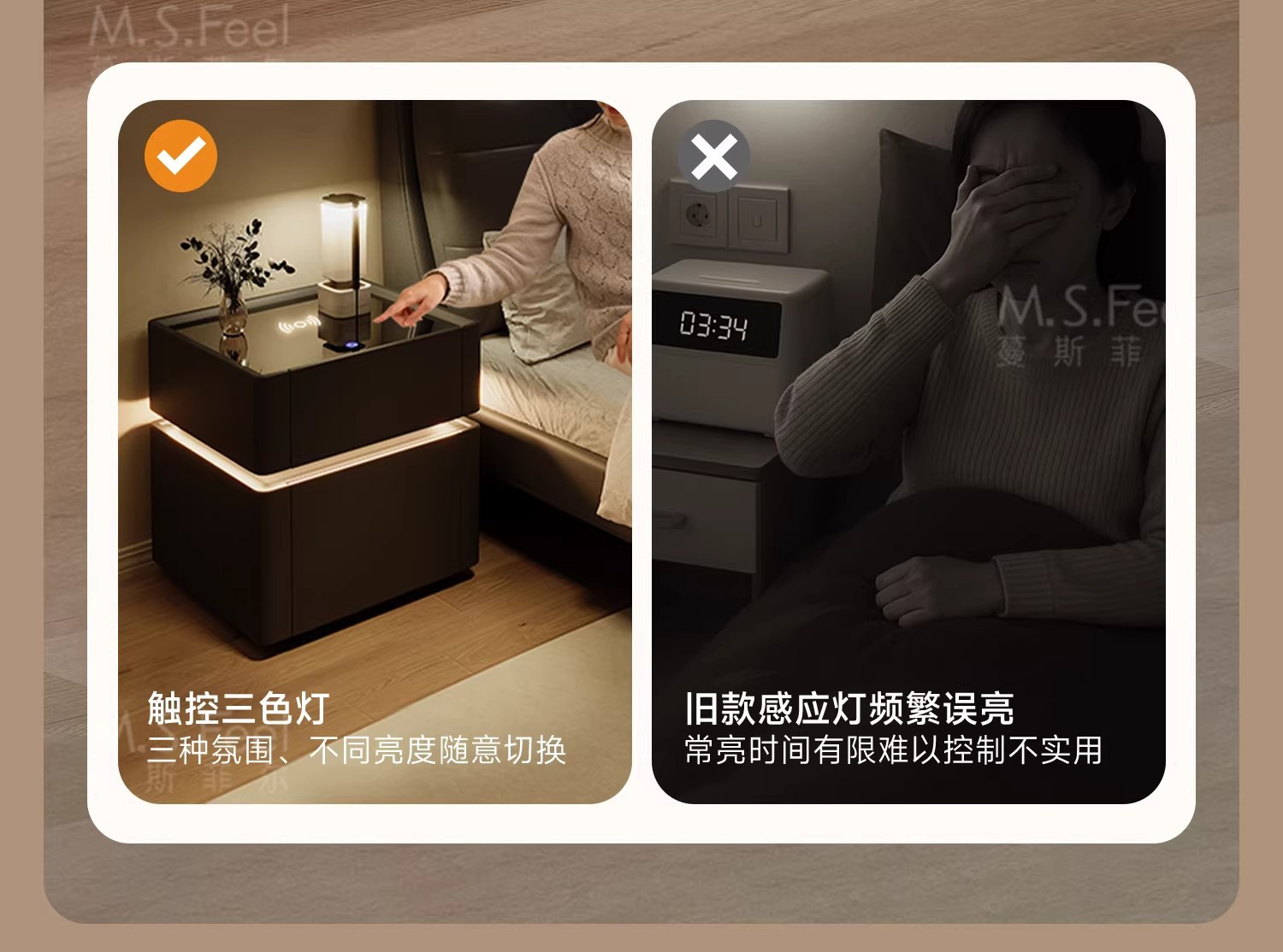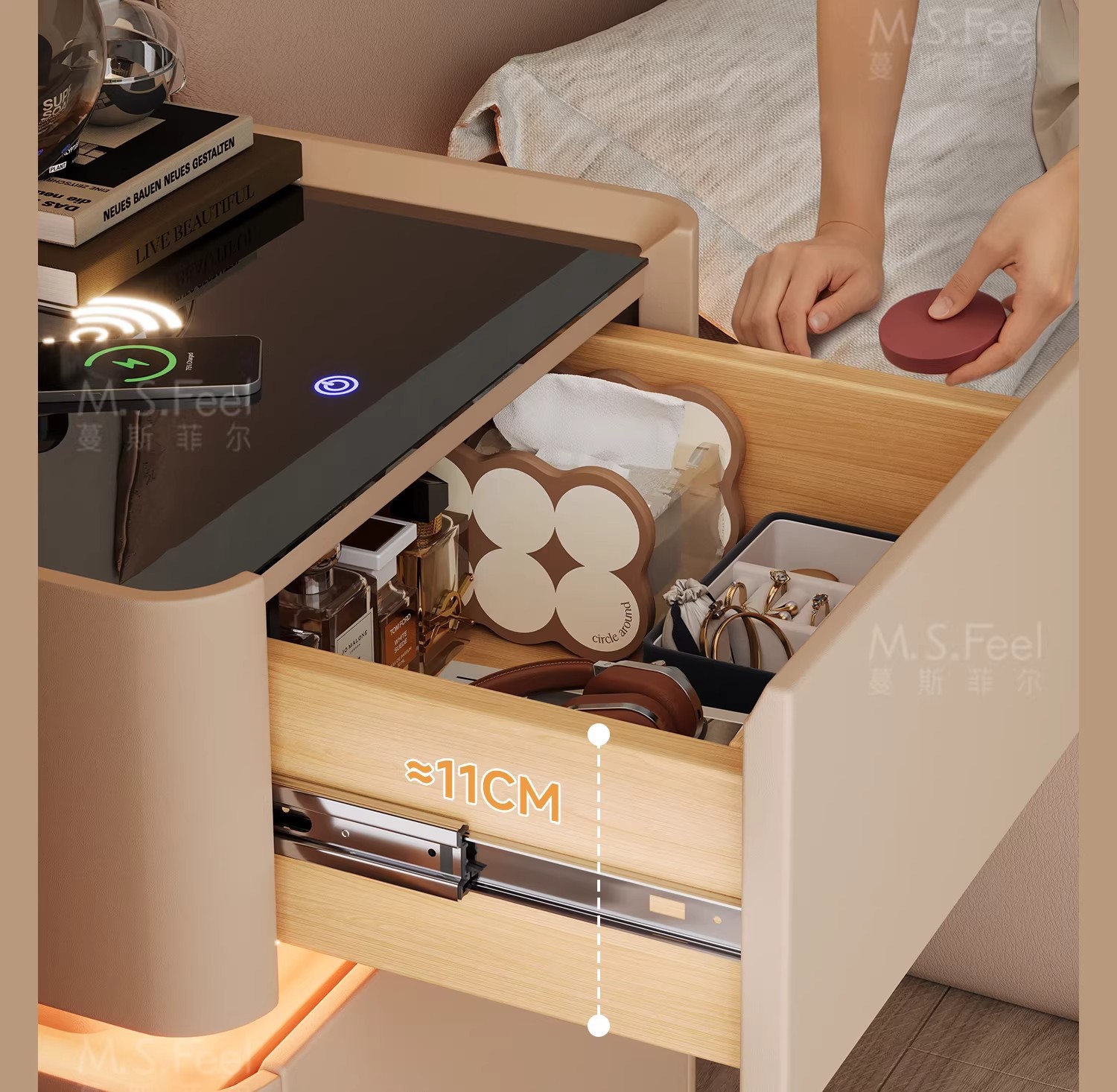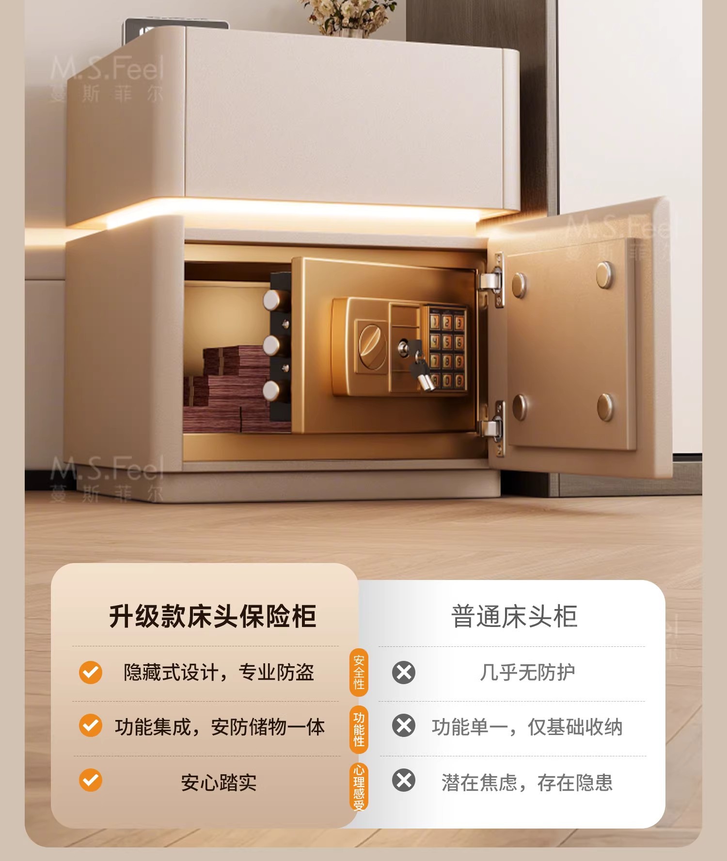 Mesita de noche inteligente caja fuerte todo en uno lujo ligero sensación de alta gama Dormitorio doméstico 2024 nueva caja fuerte multifuncional pequeña