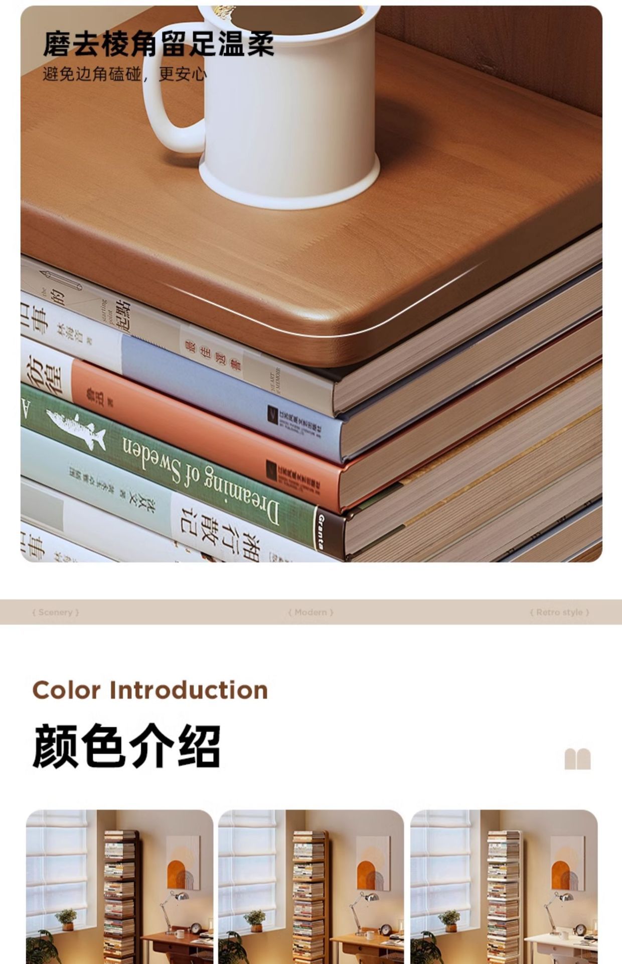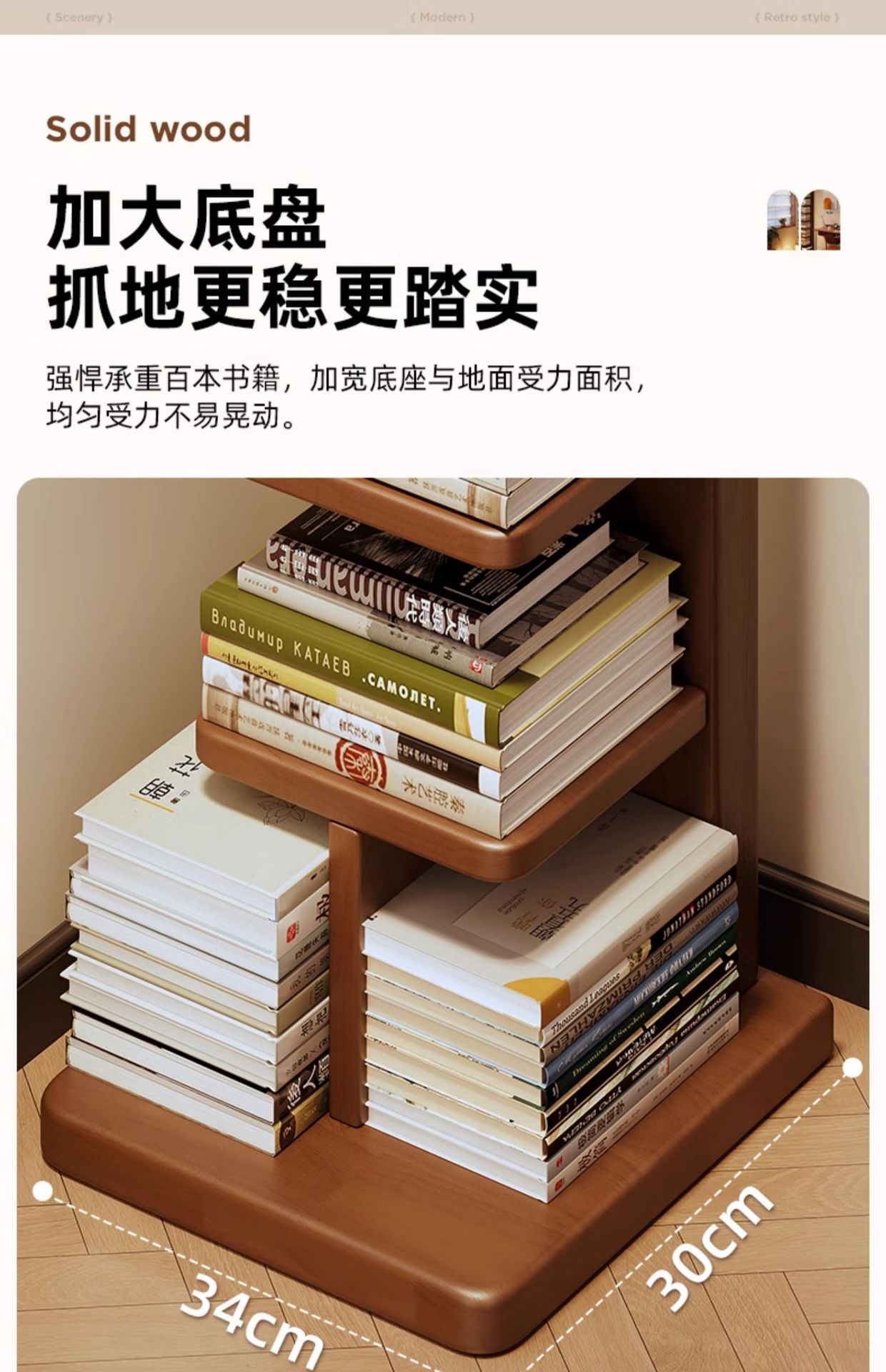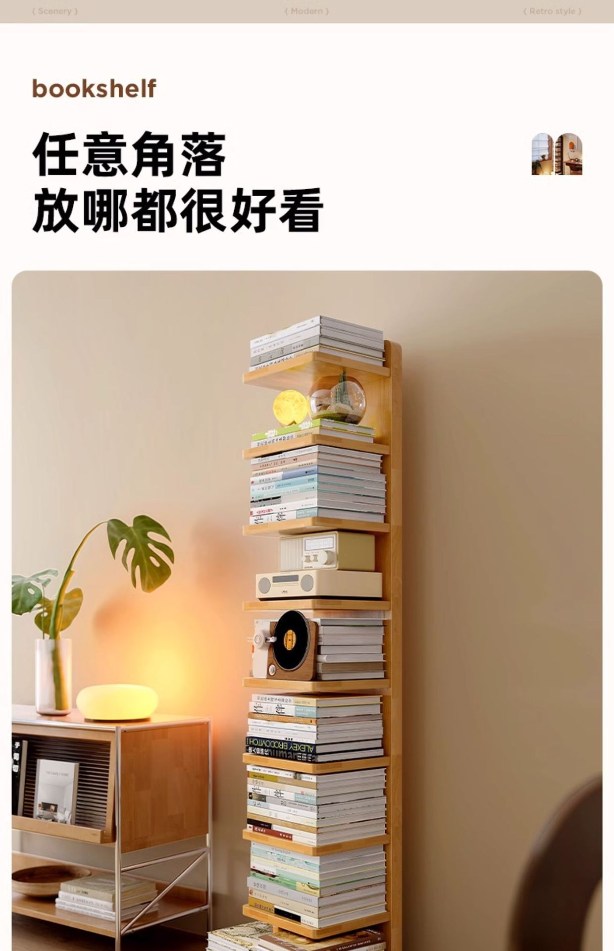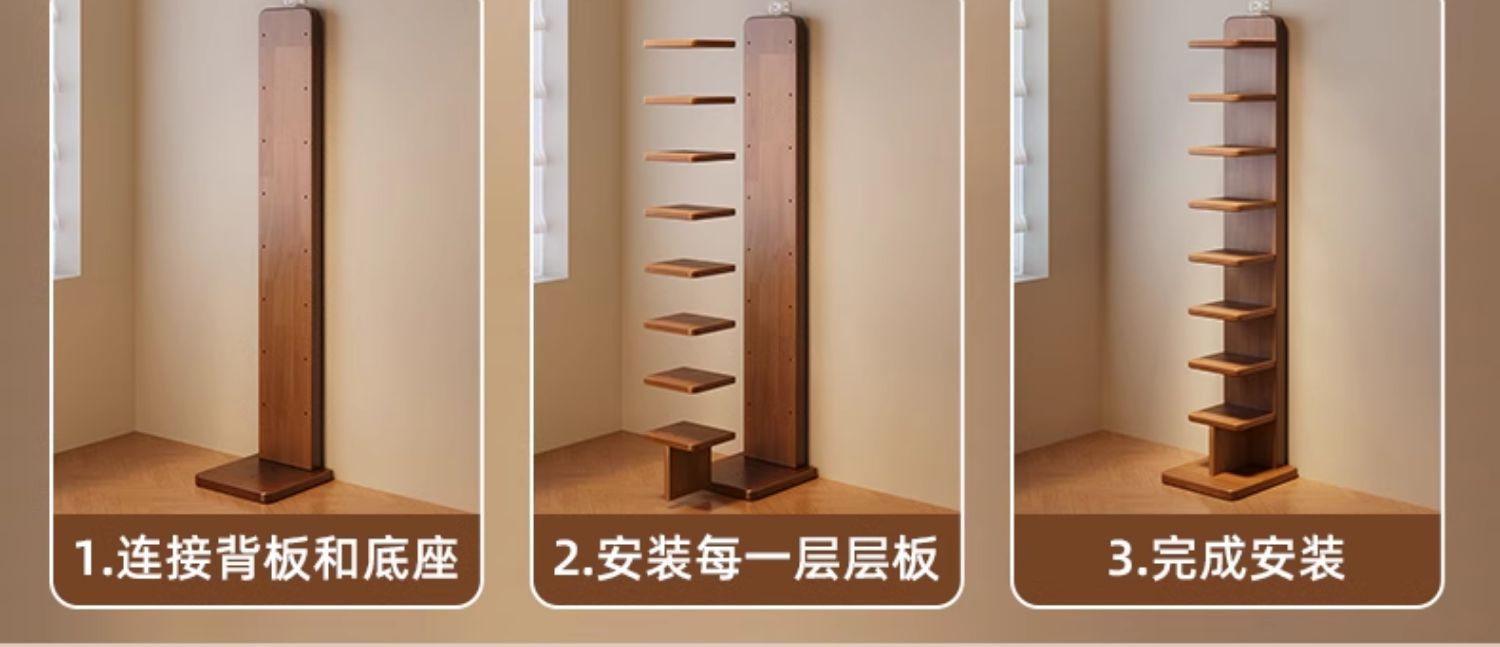 Estantería invisible de madera maciza y madera de caucho Estante de piso Estante de almacenamiento vertical de esquina multicapa Estante para libros estrechos