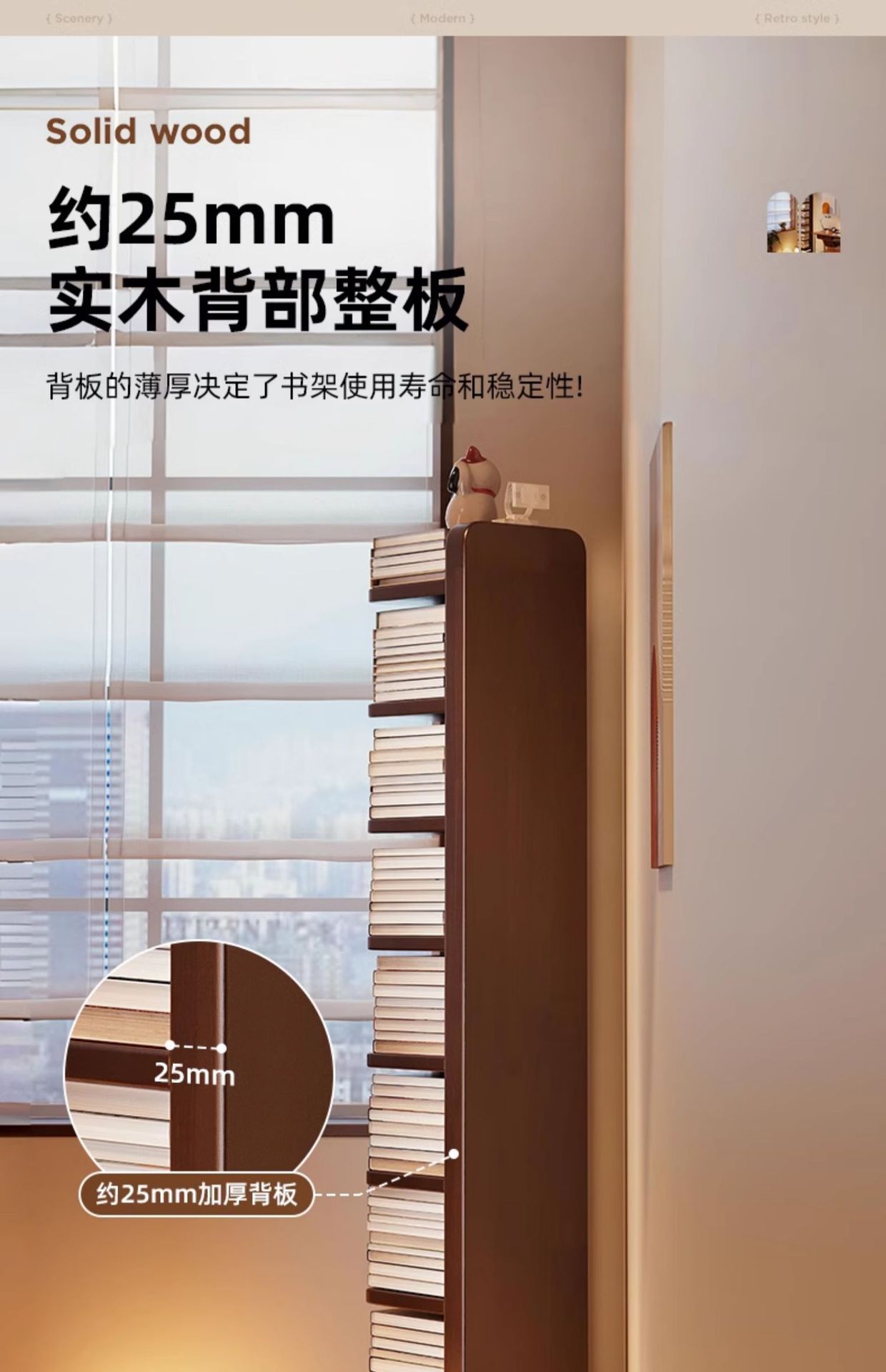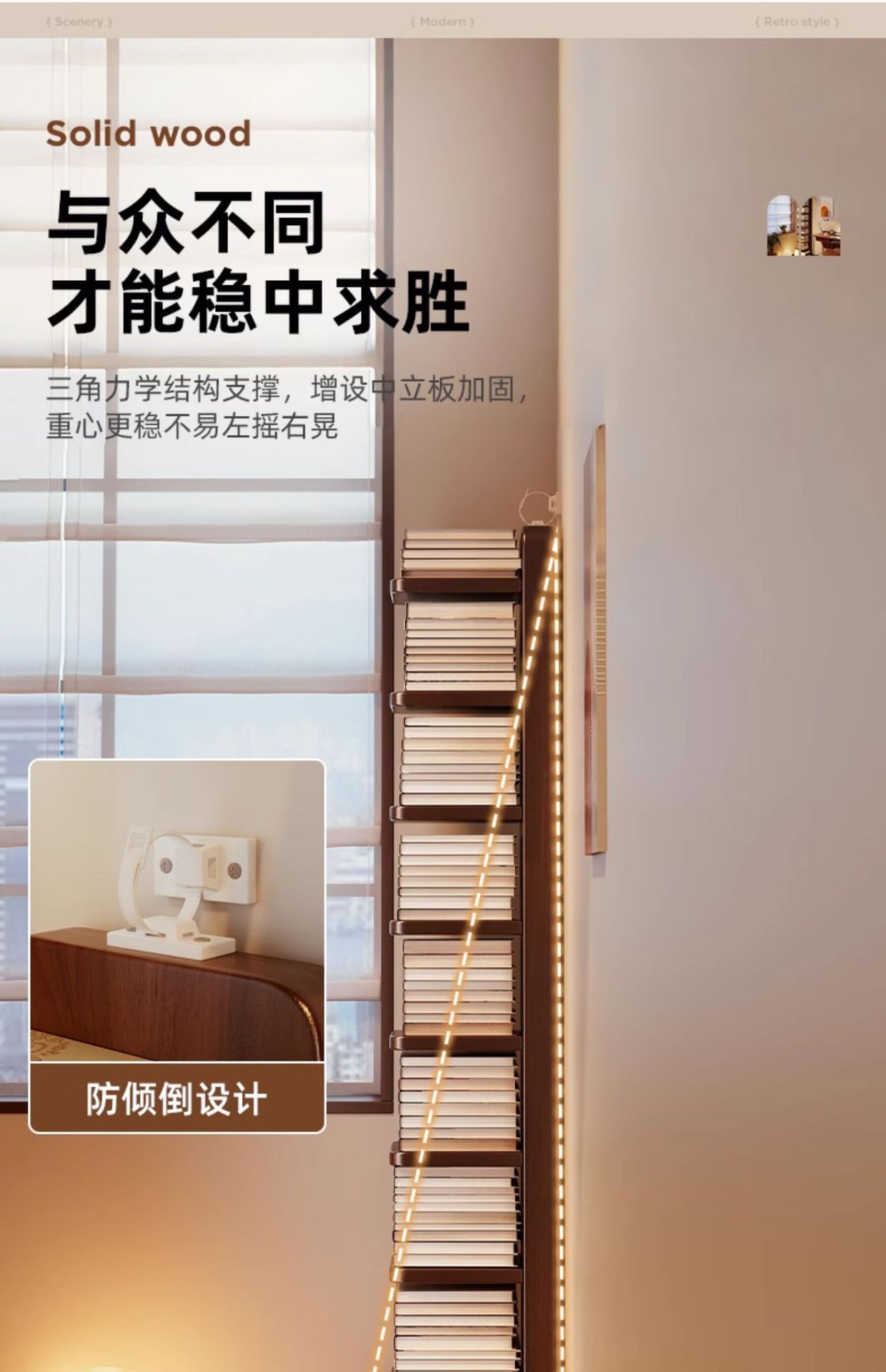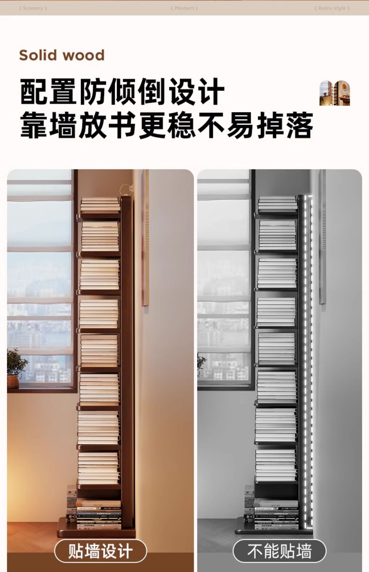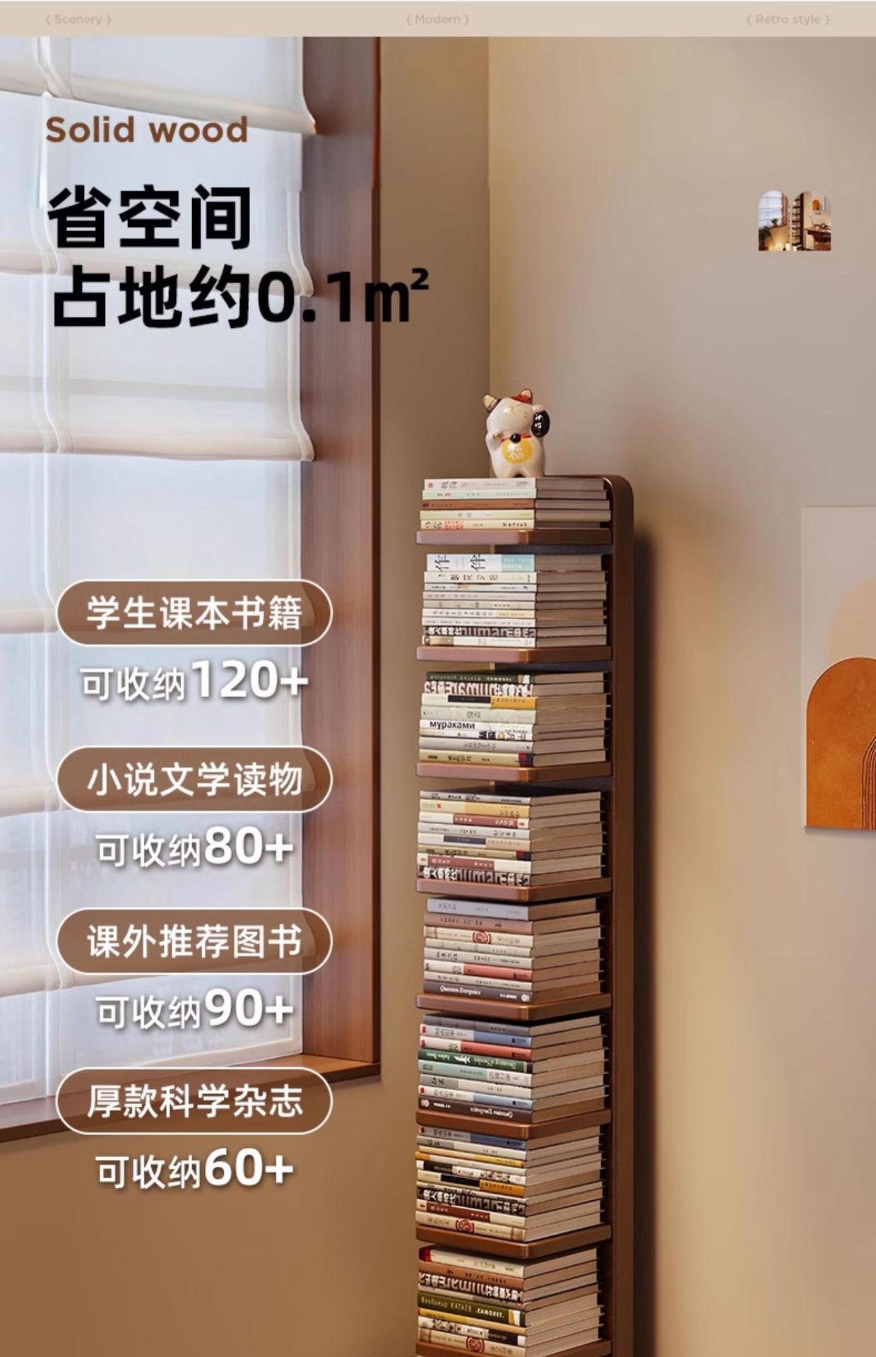 Estantería invisible de madera maciza y madera de caucho Estante de piso Estante de almacenamiento vertical de esquina multicapa Estante para libros estrechos