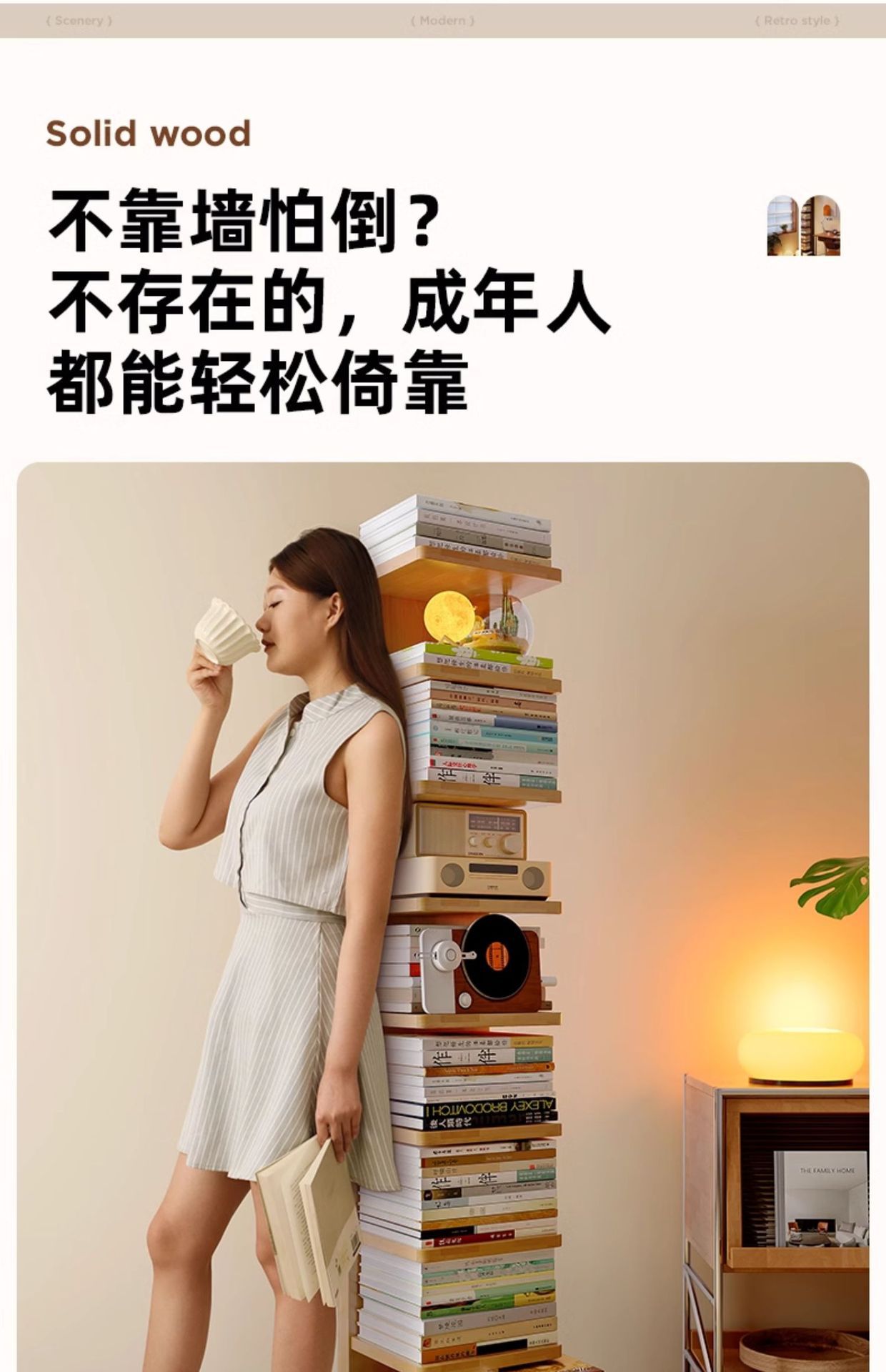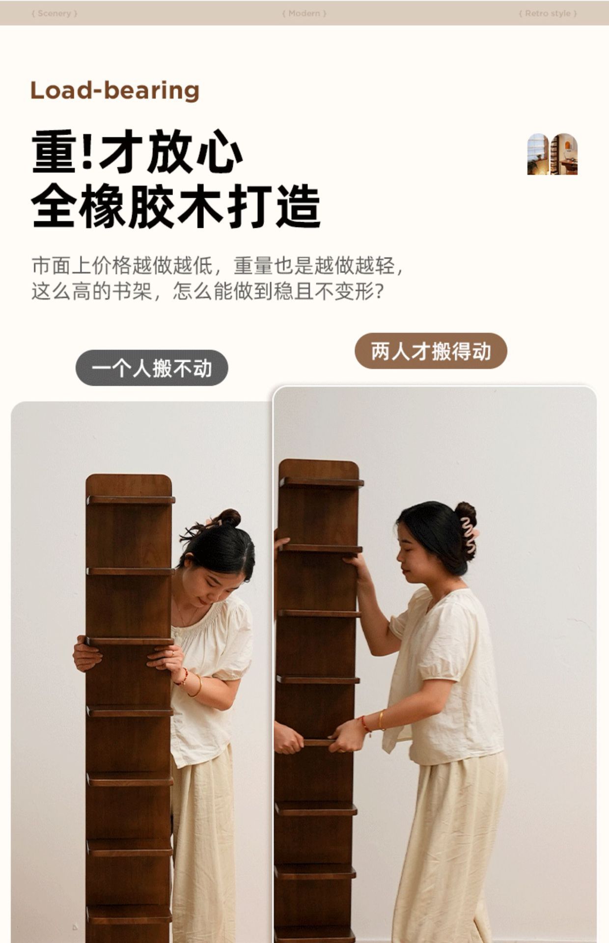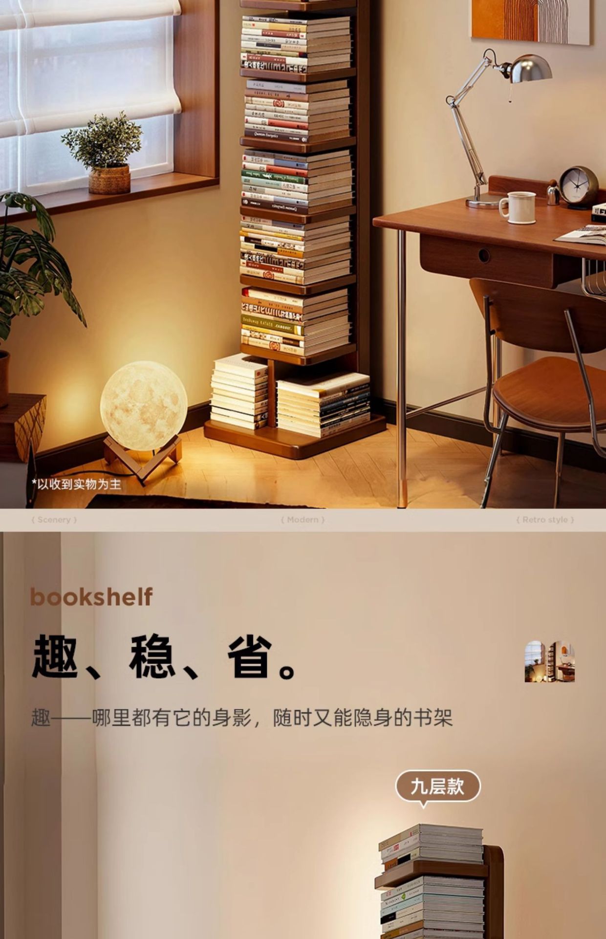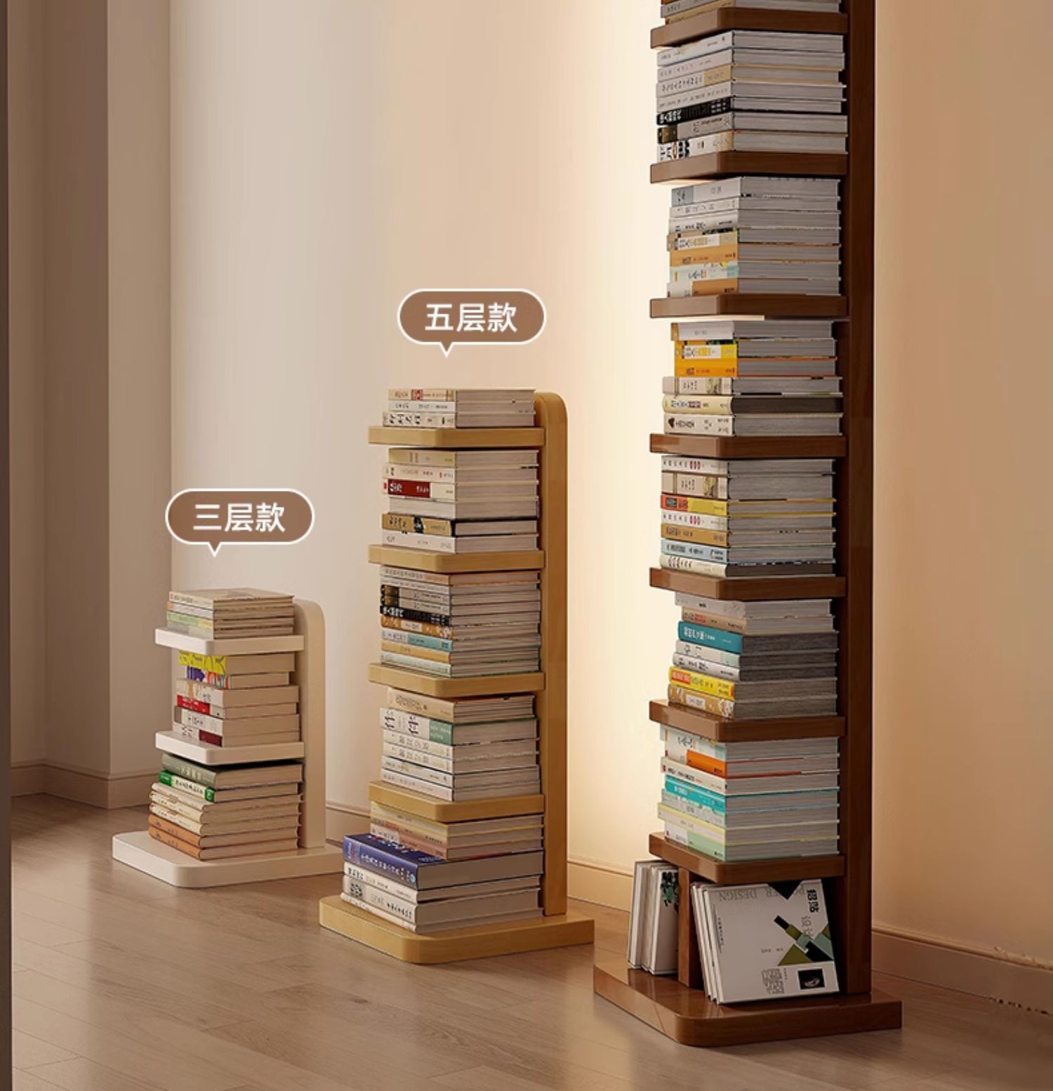 Estantería invisible de madera maciza y madera de caucho Estante de piso Estante de almacenamiento vertical de esquina multicapa Estante para libros estrechos