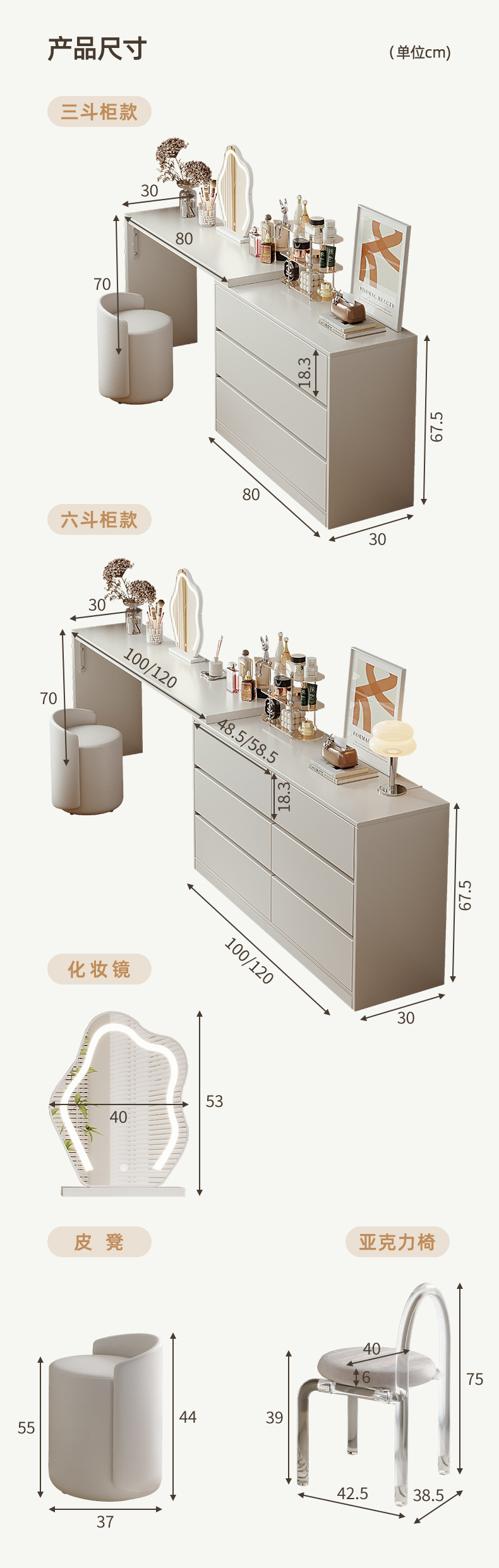 | Colores | [40cm de ancho] mesa de 80cm 80cm tres cajones,[40cm de ancho] 100cm mesa 100cm seis cajones,[40cm de ancho] mesa de 120cm 120cm seis cajones,[40cm de ancho] [Taburete con respaldo de espejo de nube] Mesa de 80cm de tres cajones de 80cm,[40cm de ancho] [Taburete con respaldo de espejo de nube] Mesa de 100cm Gabinete de seis cajones de 100cm,[40cm de ancho] [Taburete con respaldo de espejo de nube] Mesa de 120cm Gabinete de seis cajones de 120cm |